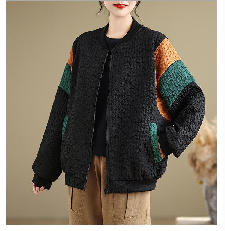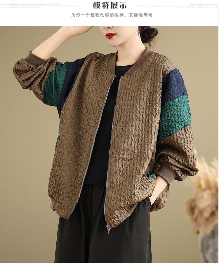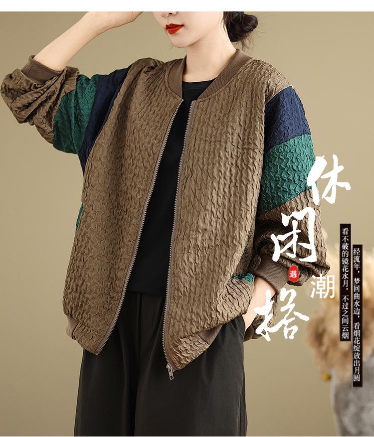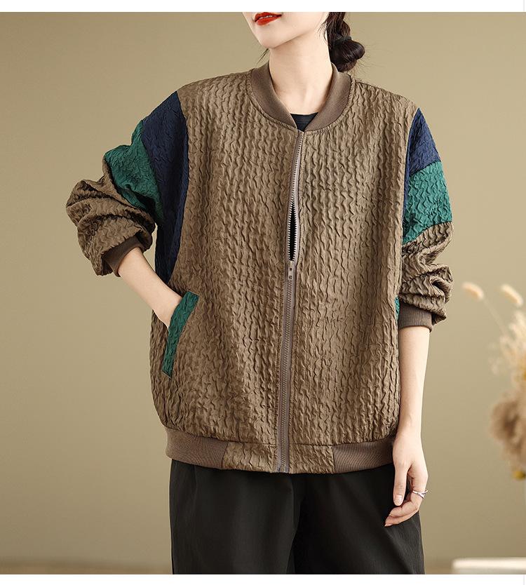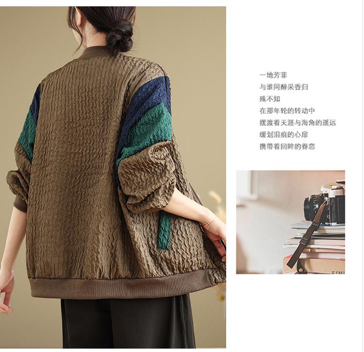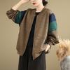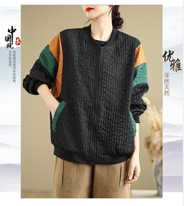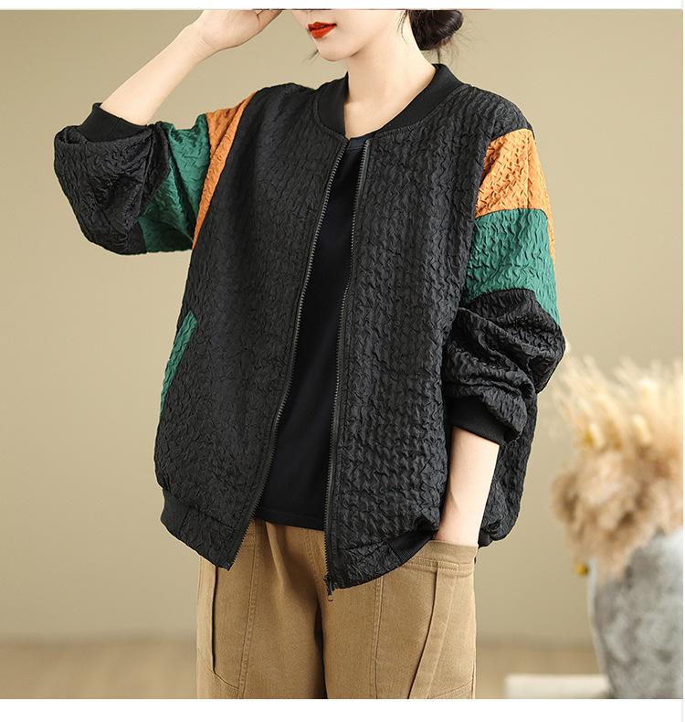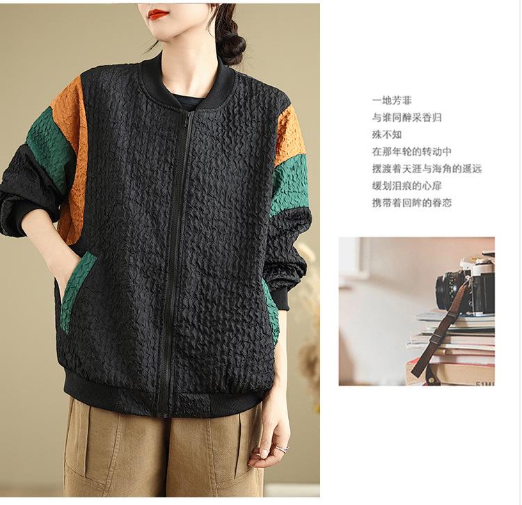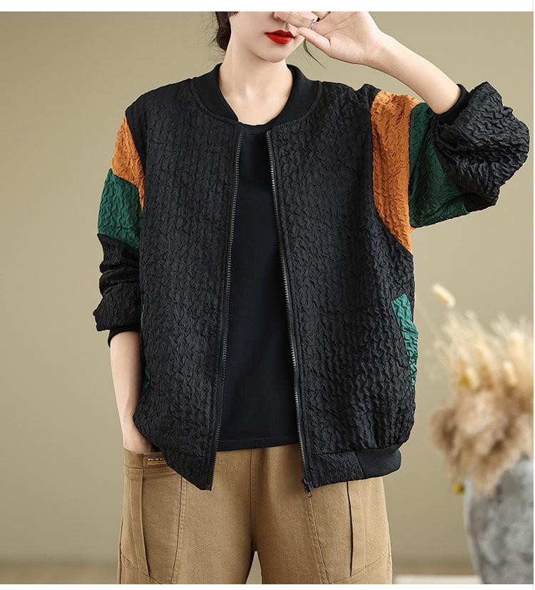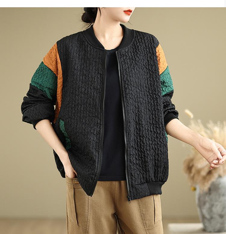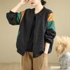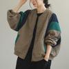 Foto Real Chaqueta Holgada Artística Combinable Otoño Nueva Costura Color Contraste Talla Extra Casual Combinable Top de Manga Larga Chaqueta
