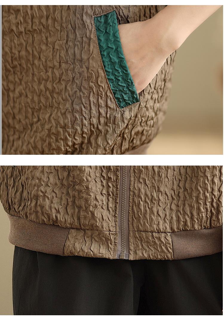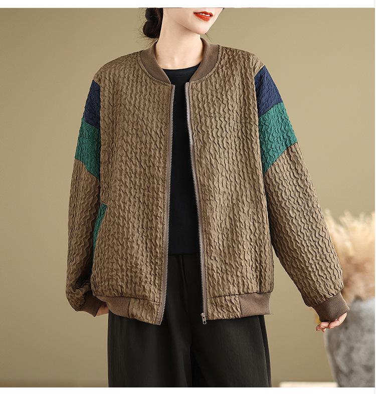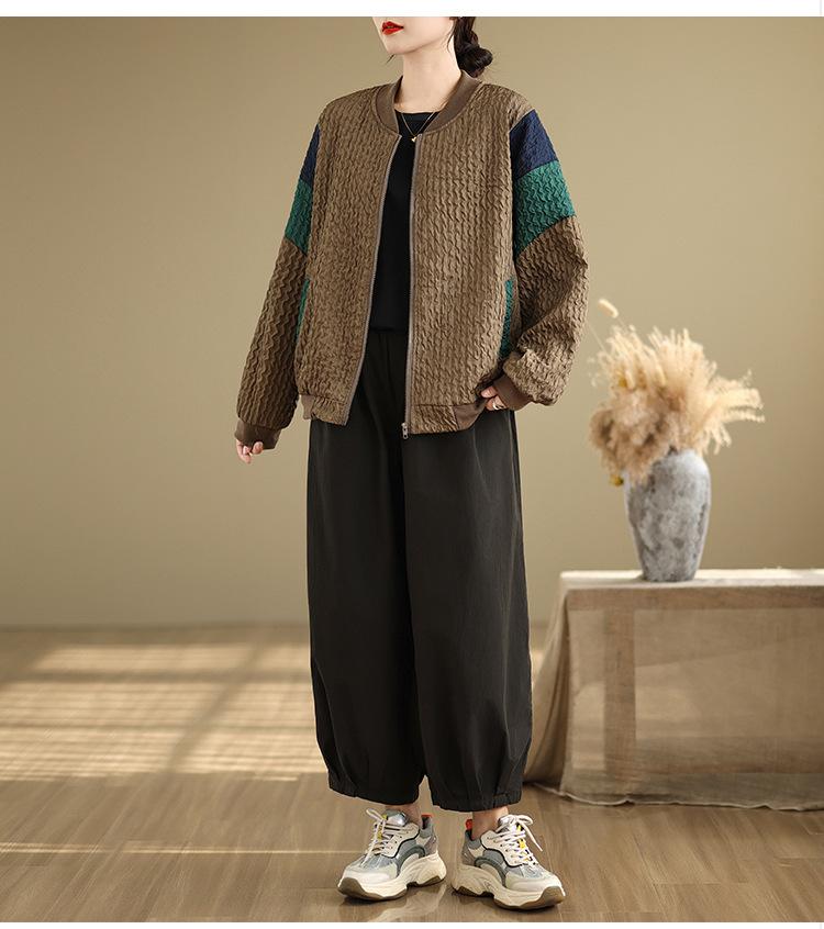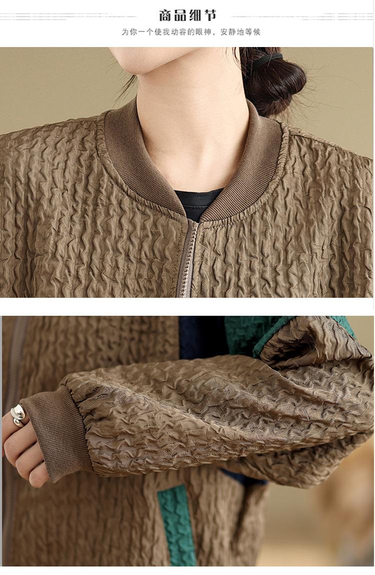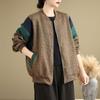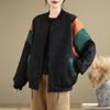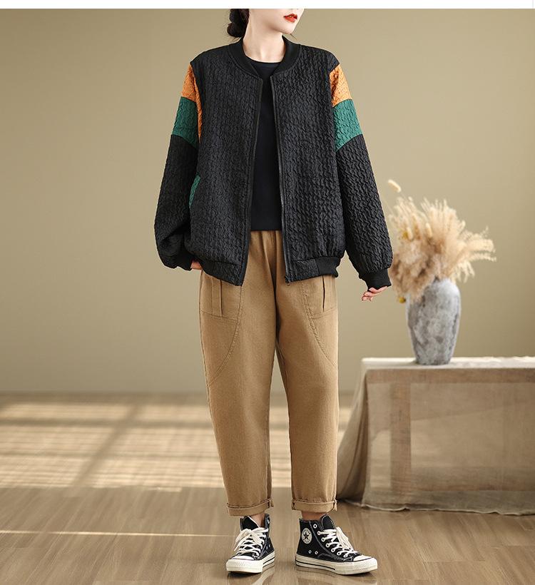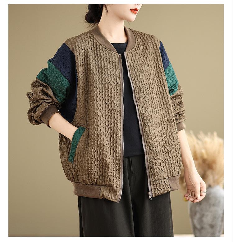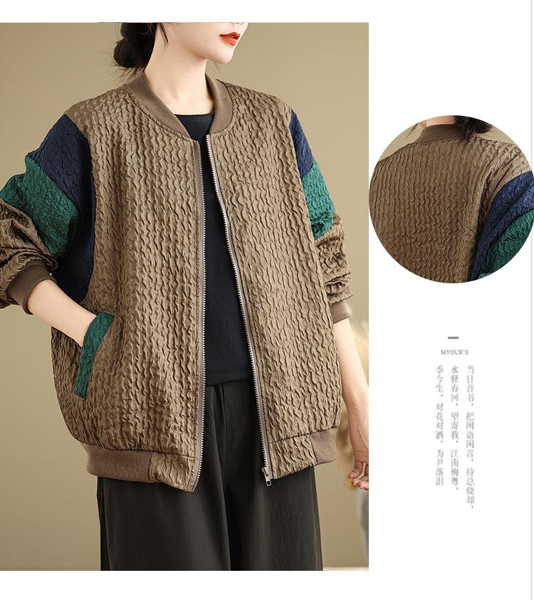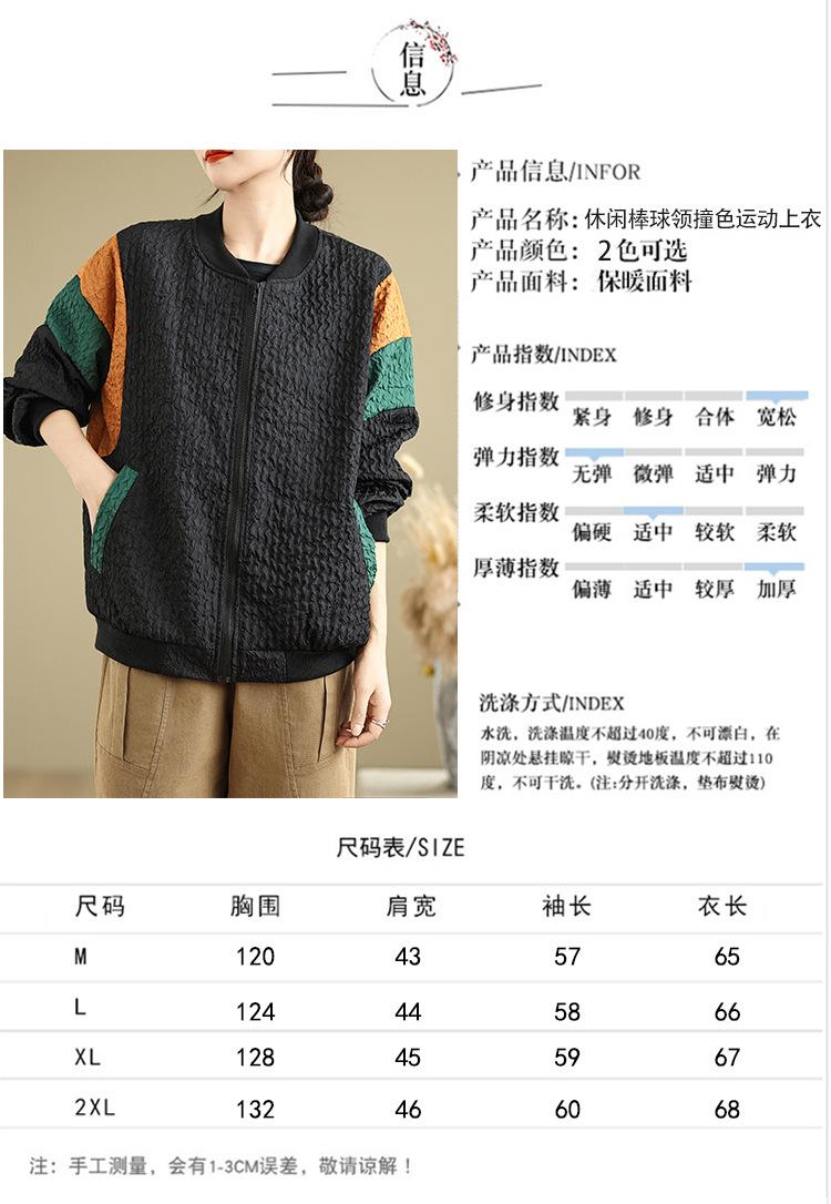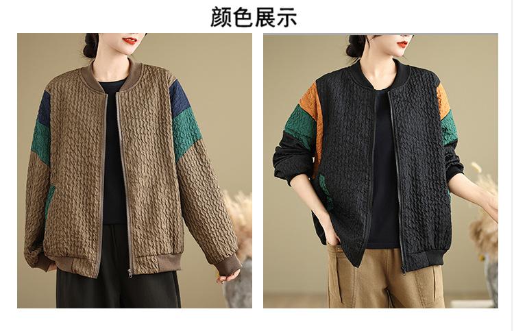 Foto Real Chaqueta Holgada Artística Combinable Otoño Nueva Costura Color Contraste Talla Extra Casual Combinable Top de Manga Larga Chaqueta