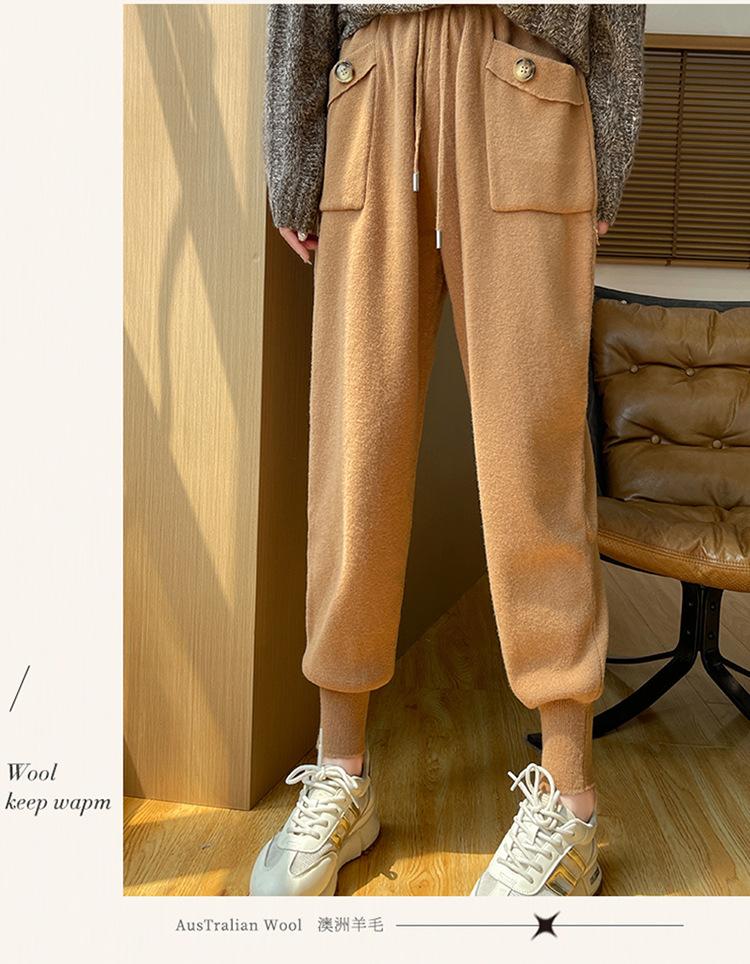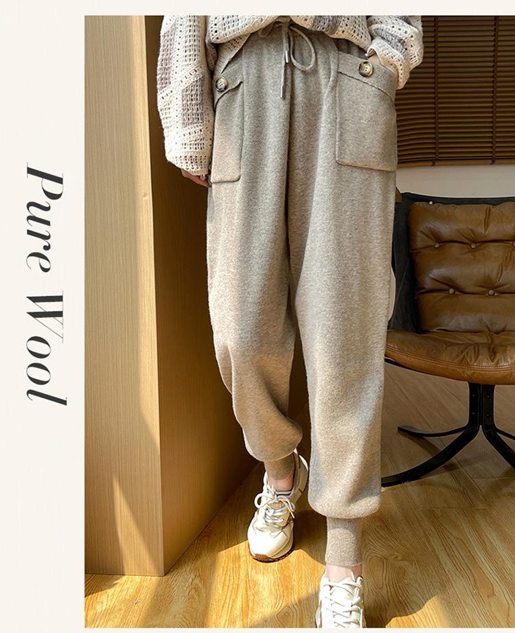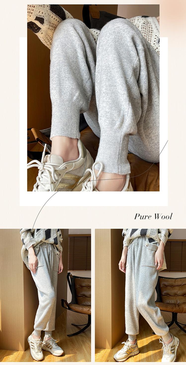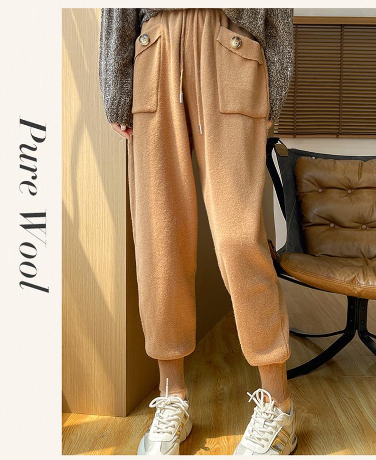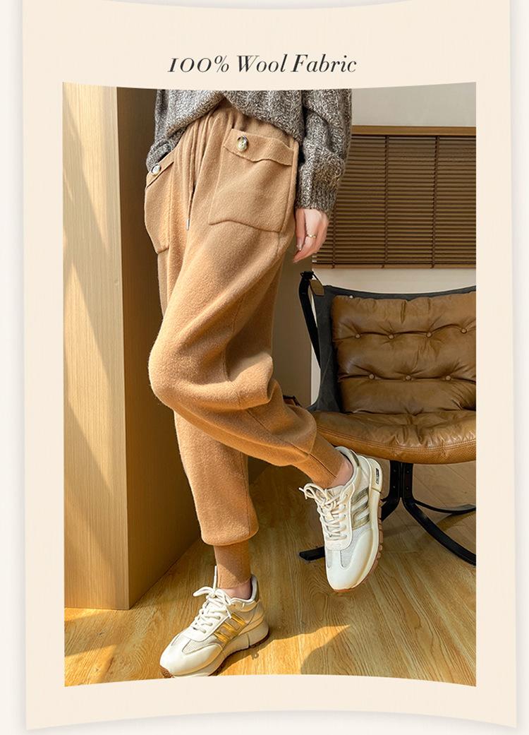 Pantalones Harlan de lana de color liso para otoño e invierno, pantalones casuales holgados de talla grande para mujer, pantalones de cintura alta de invierno 2024