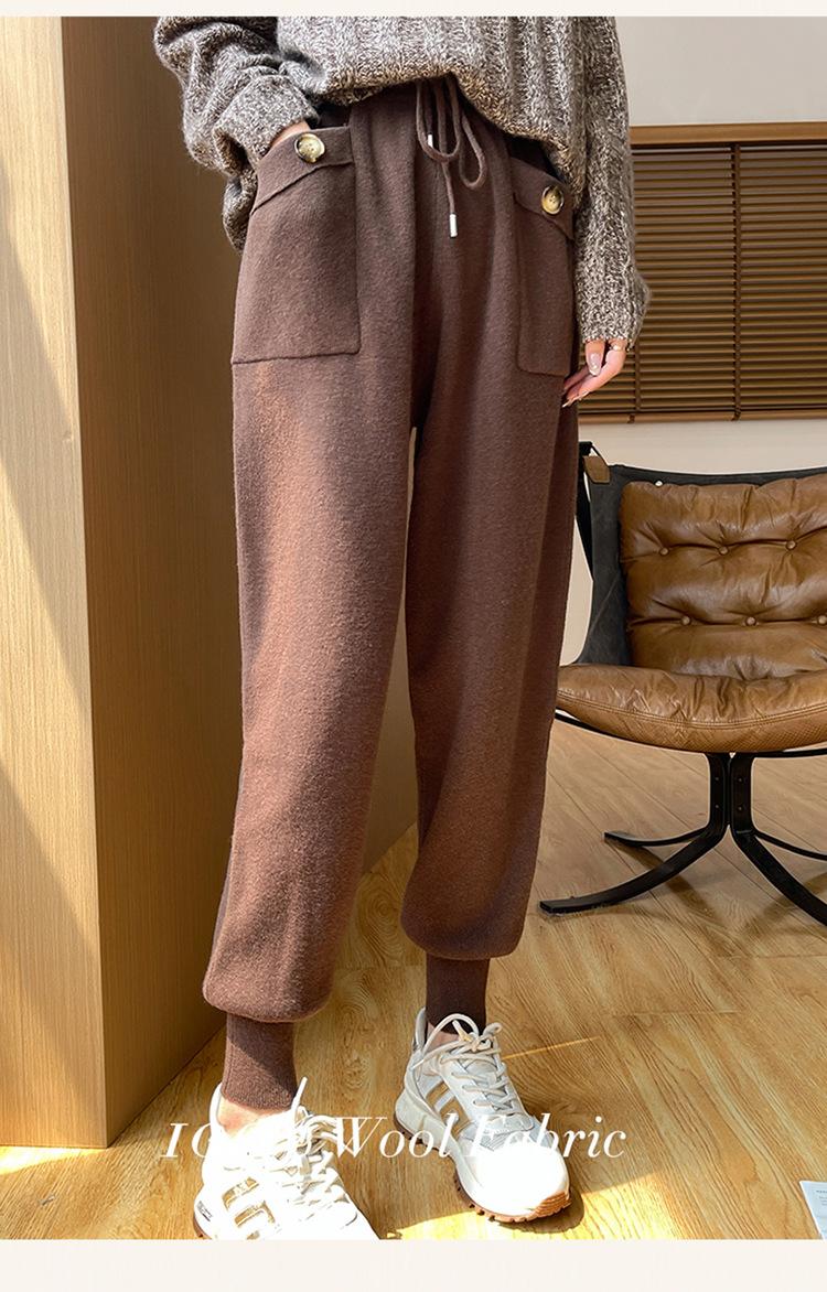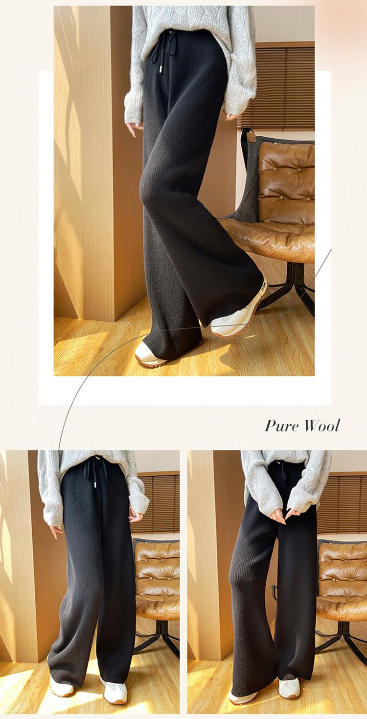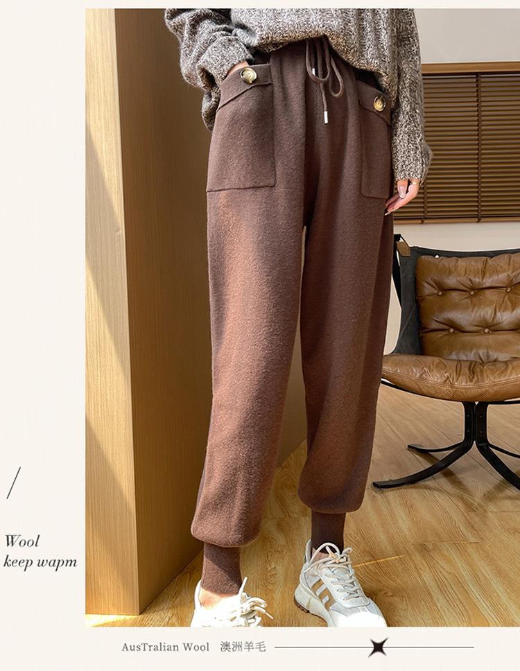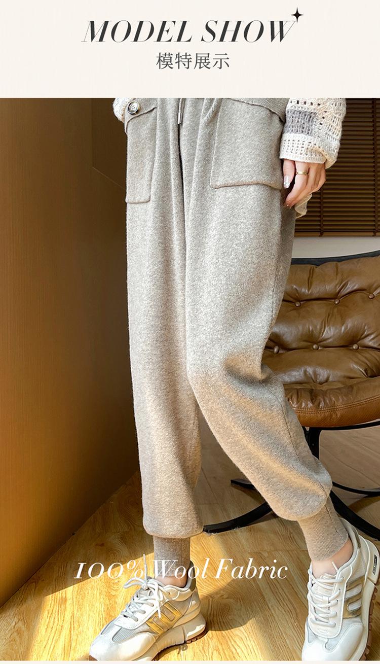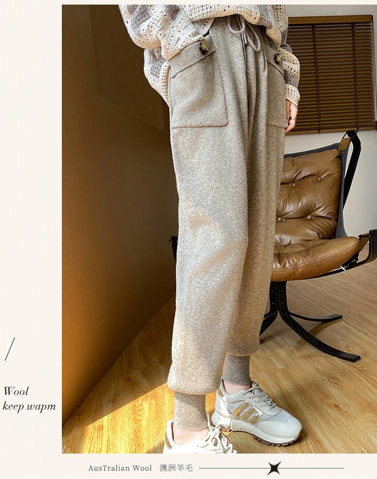 Pantalones Harlan de lana de color liso para otoño e invierno, pantalones casuales holgados de talla grande para mujer, pantalones de cintura alta de invierno 2024
