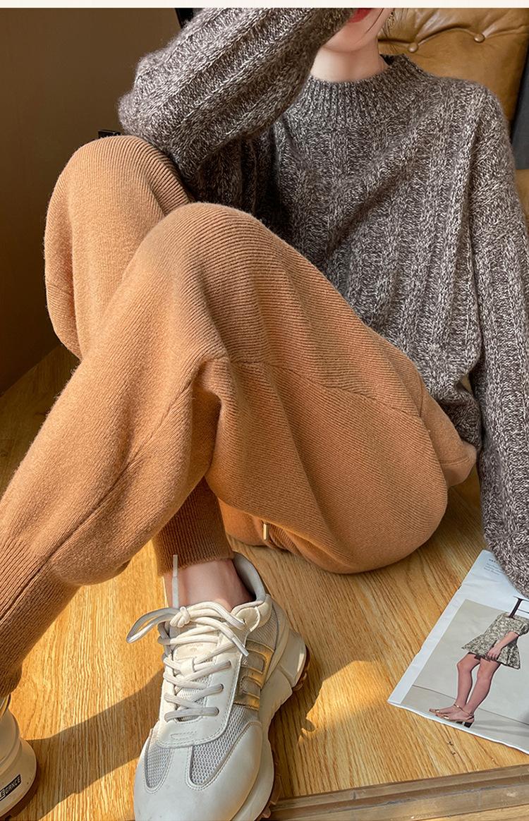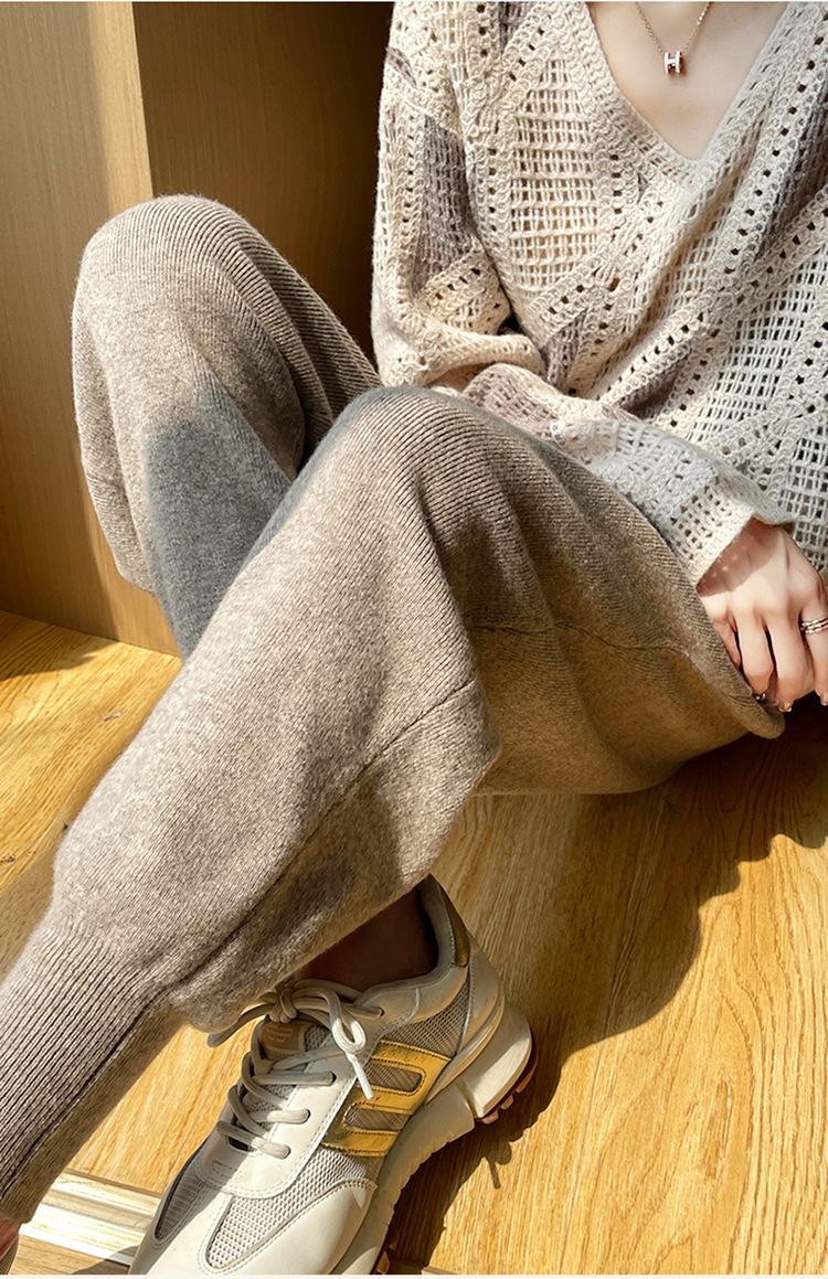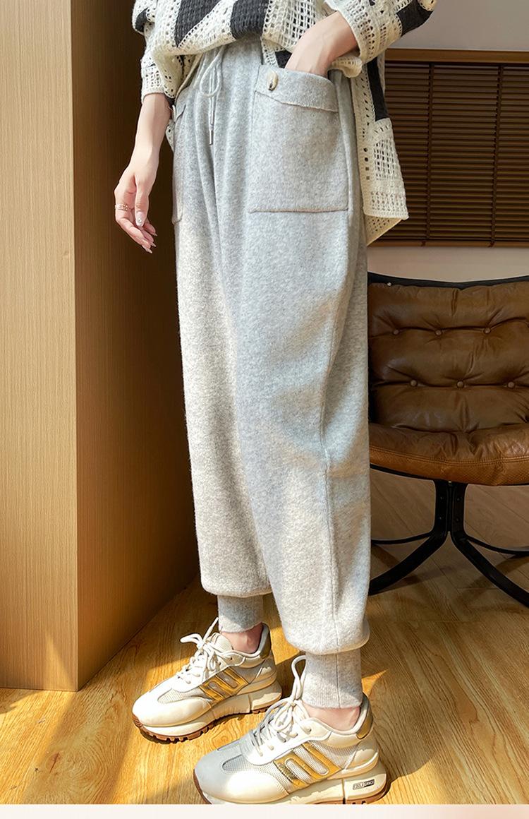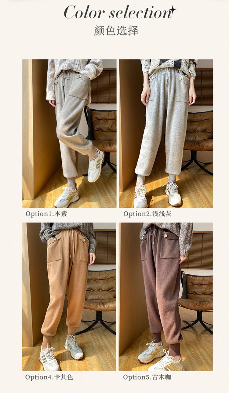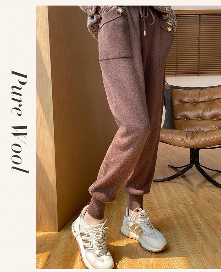 Pantalones Harlan de lana de color liso para otoño e invierno, pantalones casuales holgados de talla grande para mujer, pantalones de cintura alta de invierno 2024