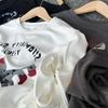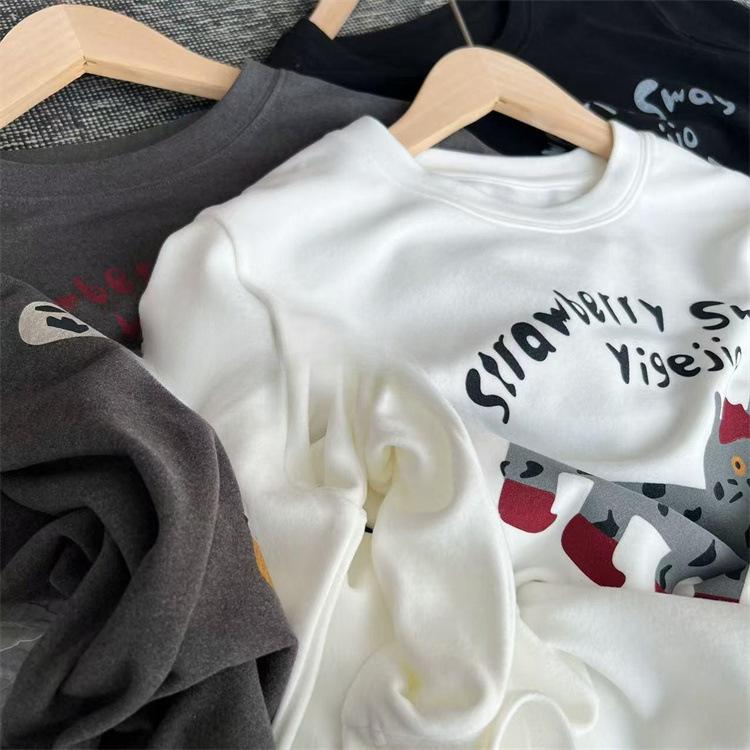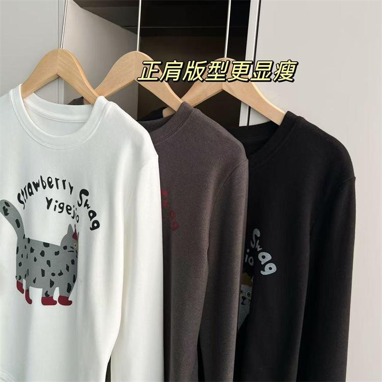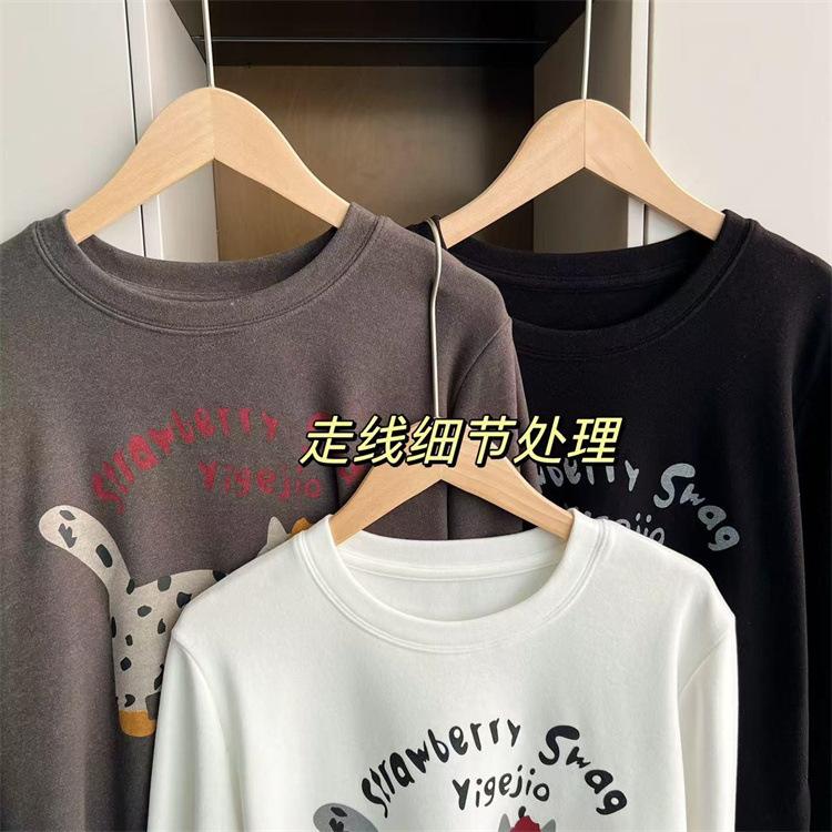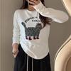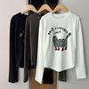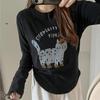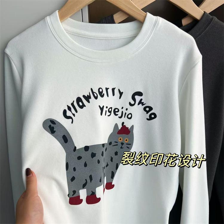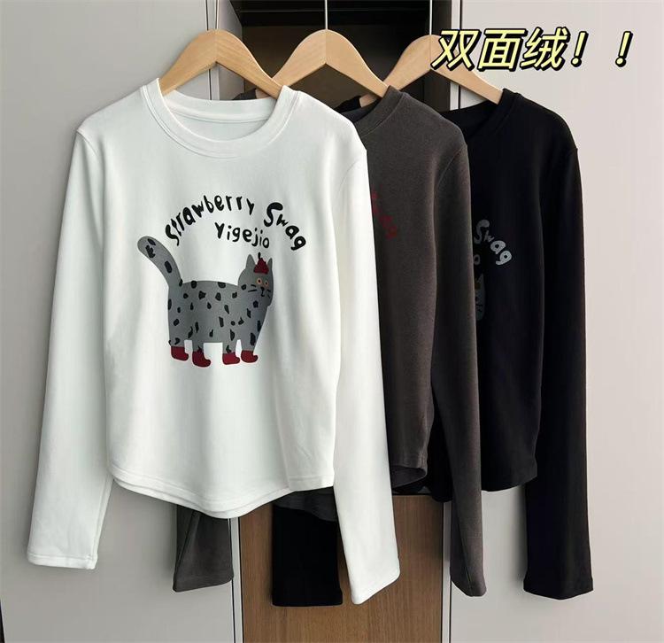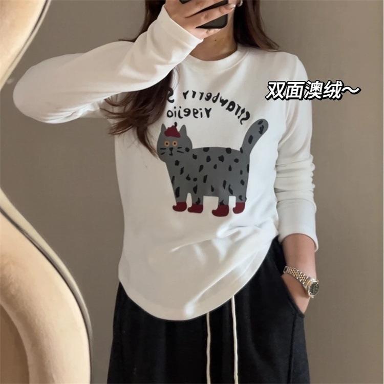 Camiseta de manga larga adelgazante de terciopelo Ole de doble cara con estampado de gato para otoño e invierno, camisa base, top de manga larga entallado con cubierta de carne