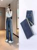 Jeans de Cintura Alta y Pierna Recta para Mujer 2024 Nuevo Verano Borde de Piel Adelgazantes Retro Sumergidos Pantalones de Pierna Ancha Estrecha