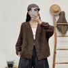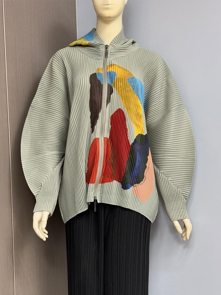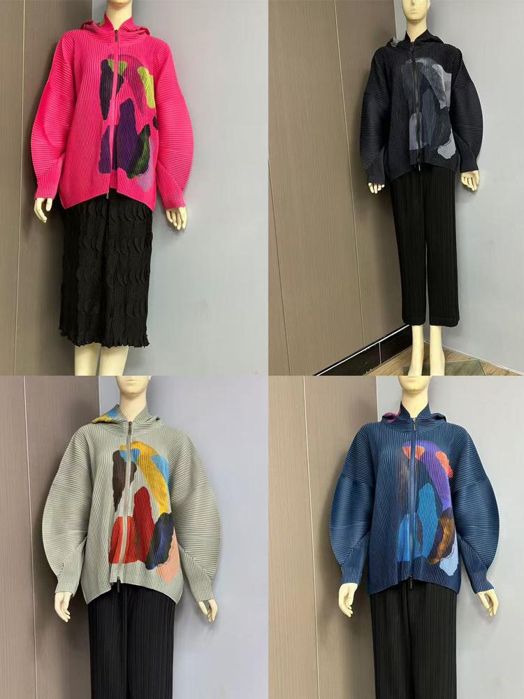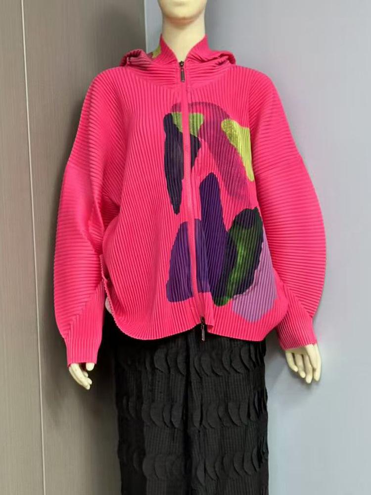 Suéter de abrigo plisado para mujer, otoño e invierno, nuevo, suelto, elegante, estampado, suelto, elegante, informal, cárdigan con capucha.