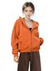 Suéter con capucha naranja americano para mujer, abrigo vintage de primavera y otoño, cárdigan corto con cremallera de gran tamaño, otoño e invierno.