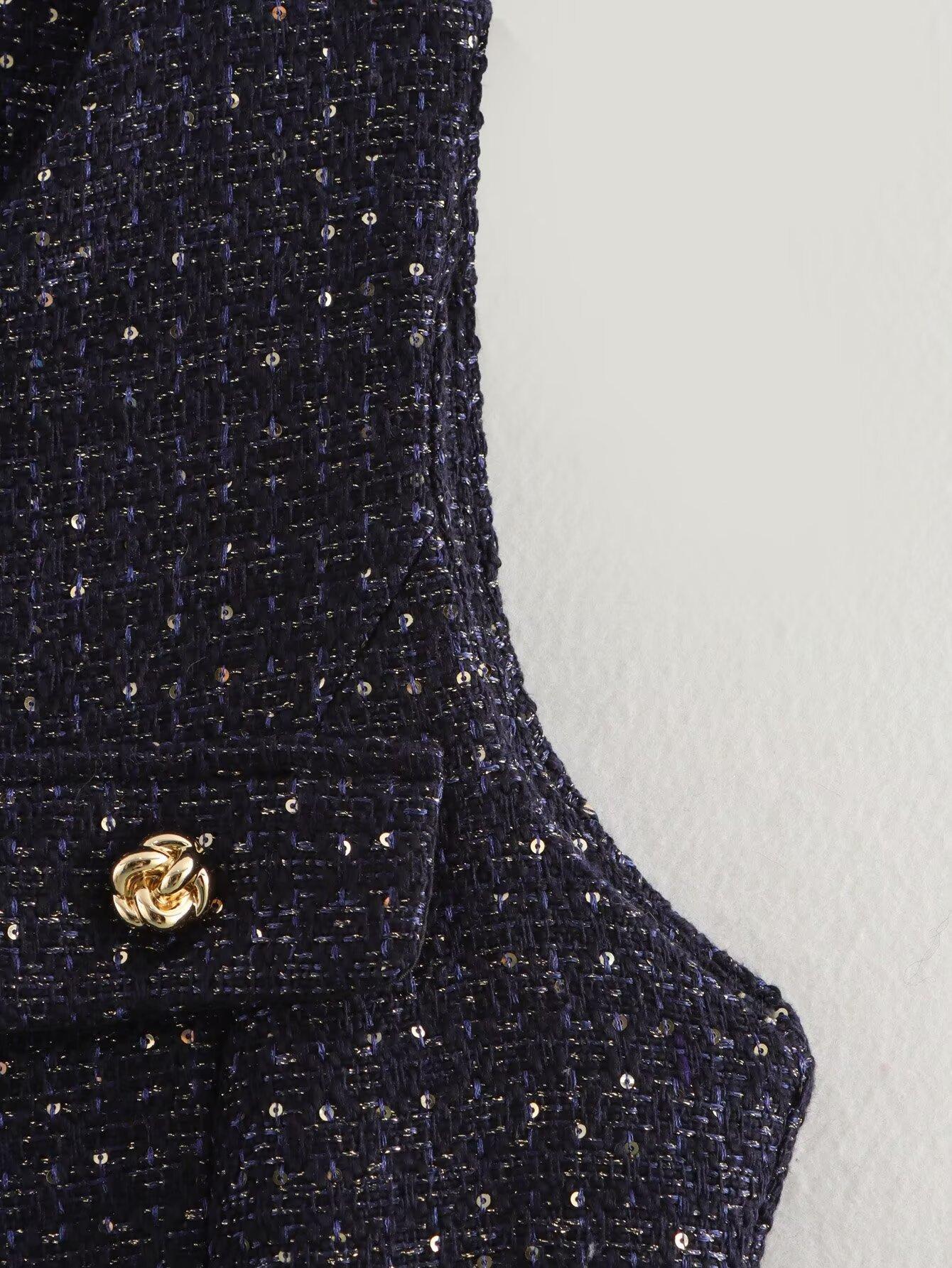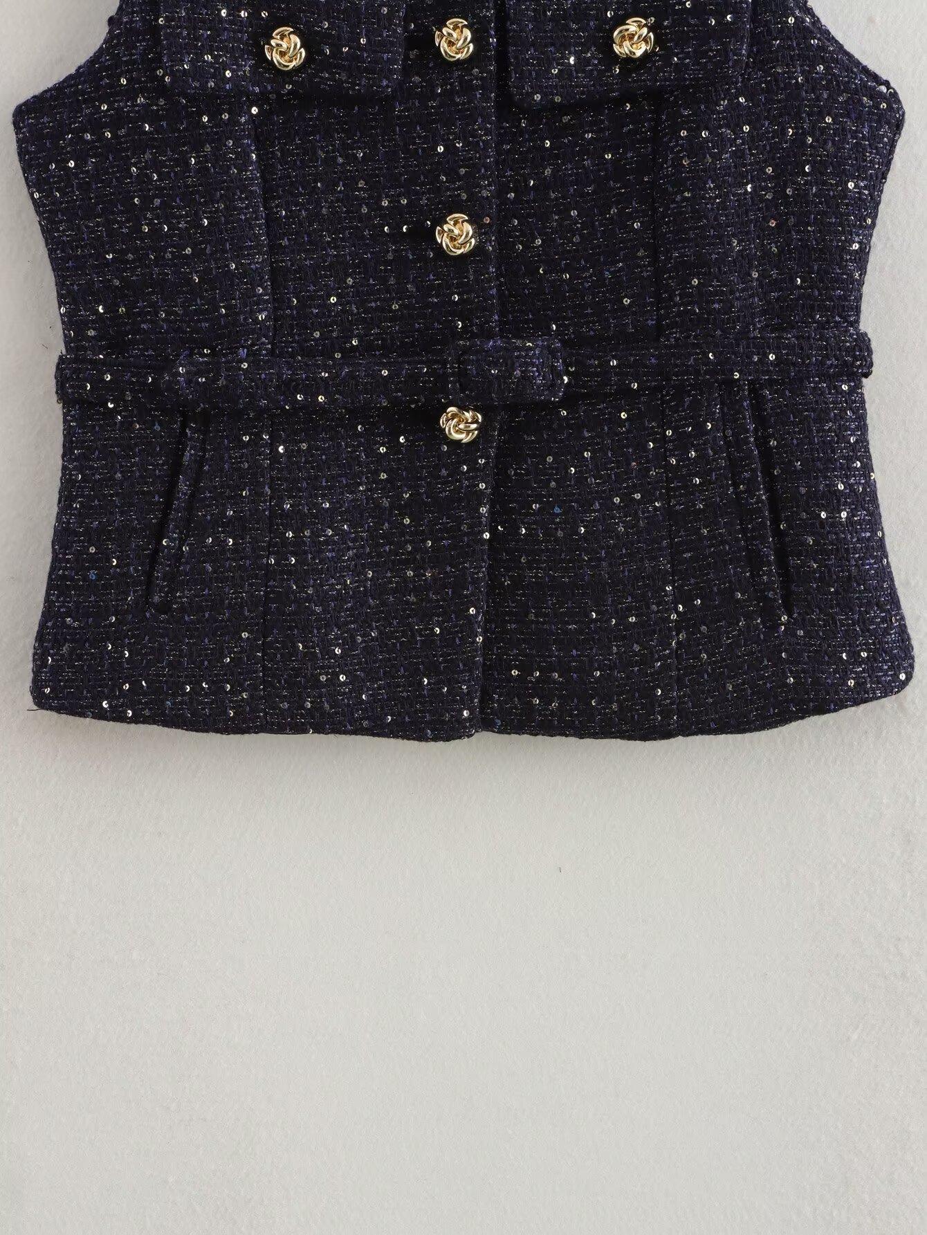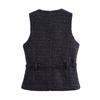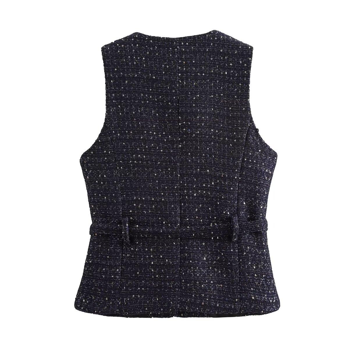 Moda Otoño 2024 con Chaleco Texturizado sin Mangas con Cuentas y Cinturón Transfronterizo Amazon para Mujer C45035