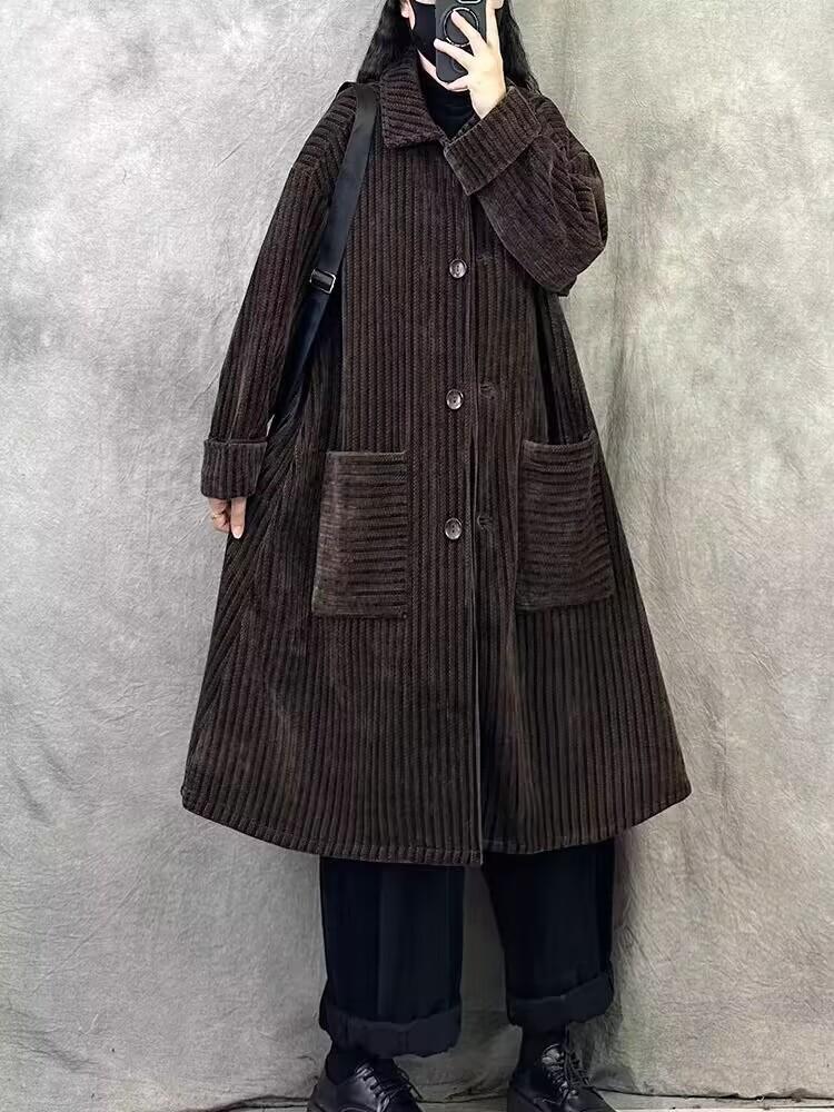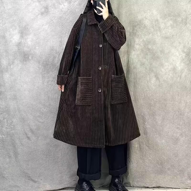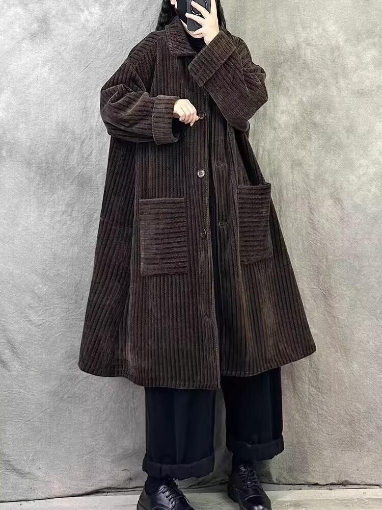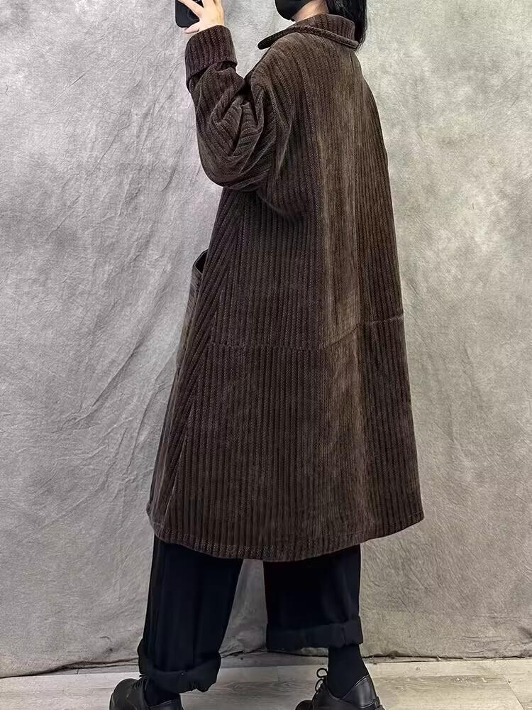 Abrigo estilo retro largo grueso y de terciopelo para mujer 2024 nuevo otoño e invierno suelto talla grande
