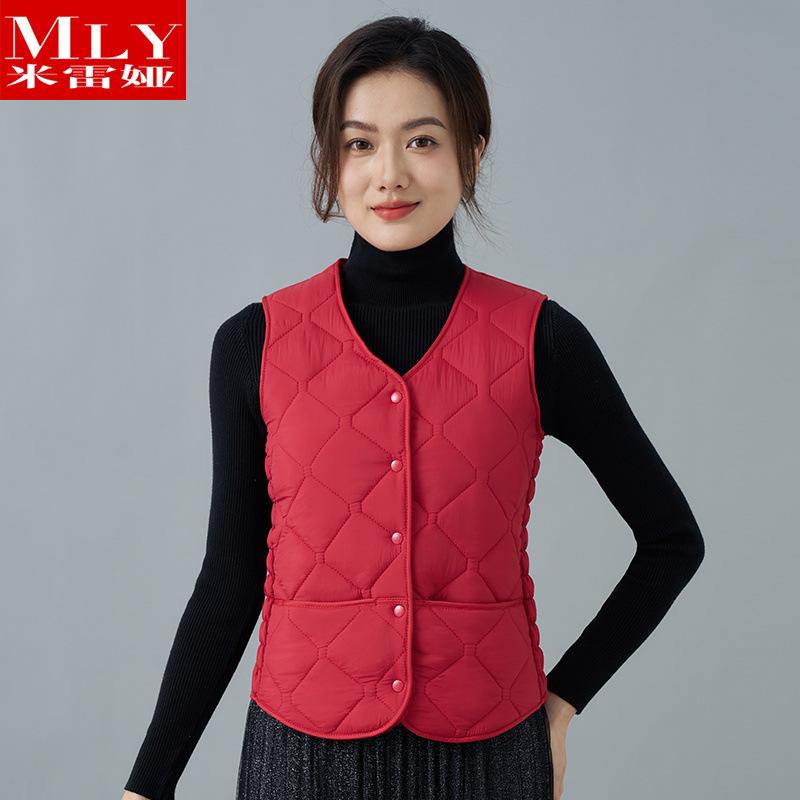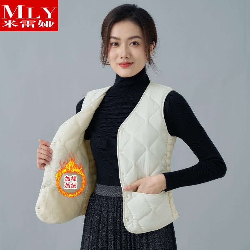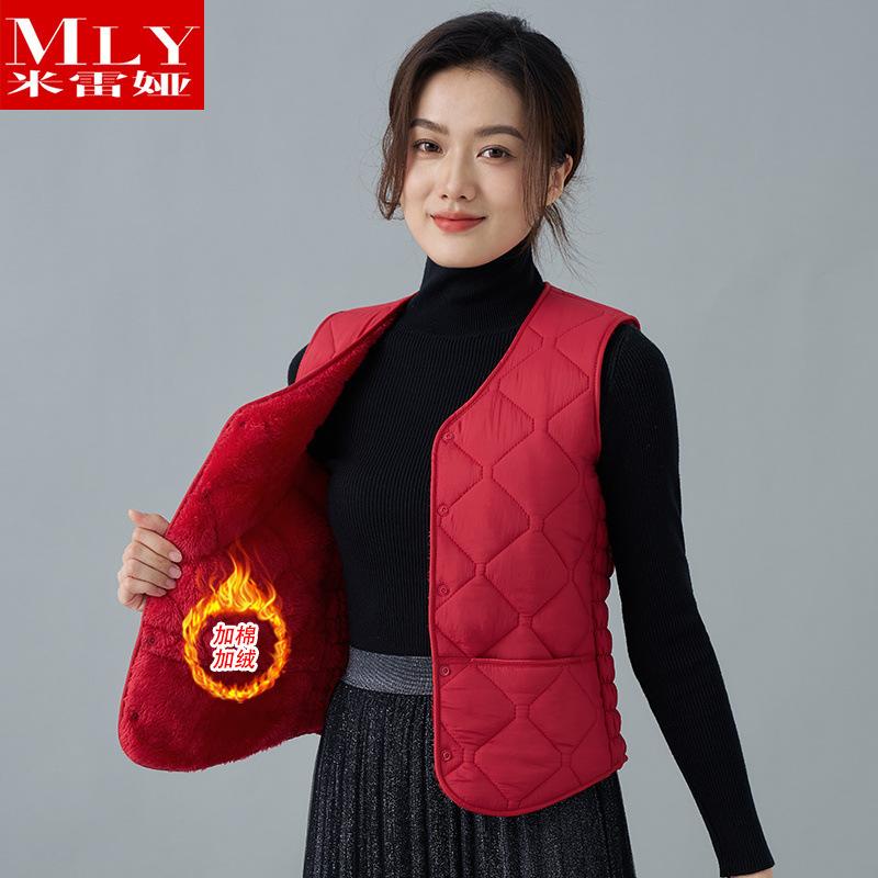 Chaleco de algodón de plumón de otoño e invierno para mujer 2024 nuevo chaleco grueso con forro polar chaleco cálido corto ajustado para mediana edad