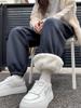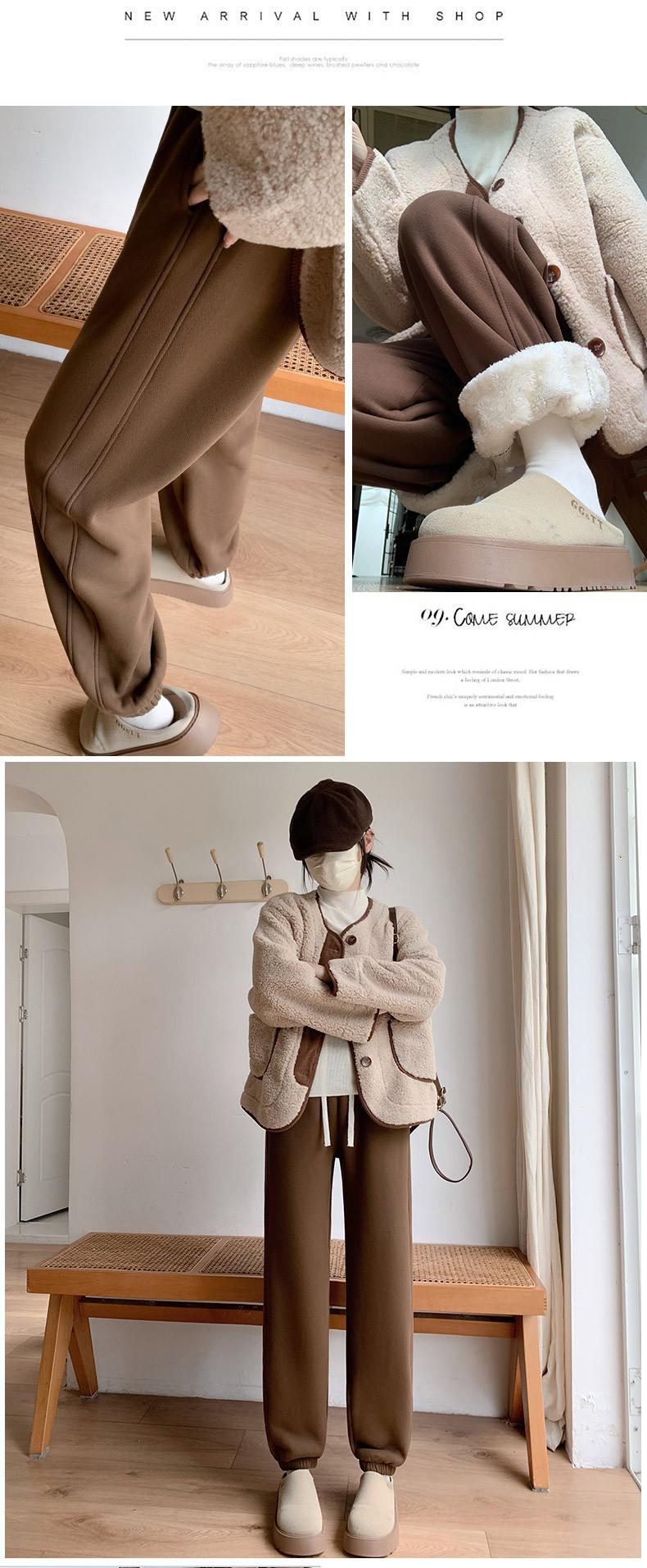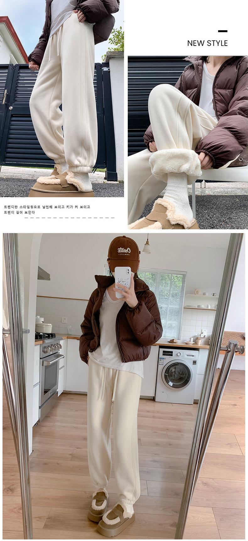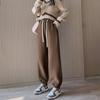 Pantalón de Chándal Marrón para Mujer 2025 Otoño e Invierno Holgado Grueso Lana de Cordero Cálido Casual Pantalón de Chándal Forrado de Felpa Pantalón Cortavientos