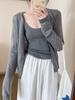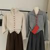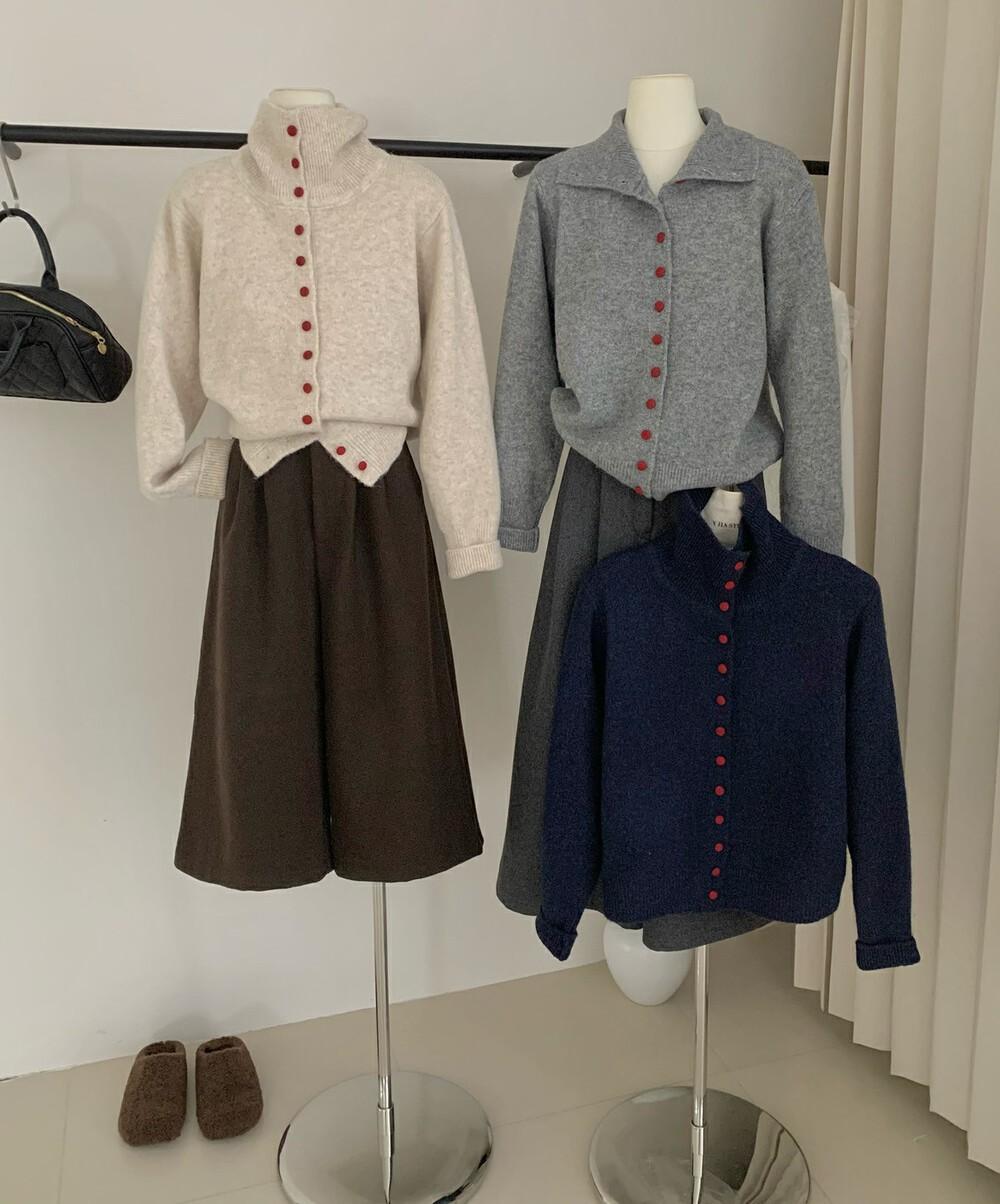 Cárdigan de punto suave y encerado con botones en contraste y cuello alto informal elegante de estilo coreano para mujer, top informal cómodo y combinable para otoño e invierno.