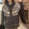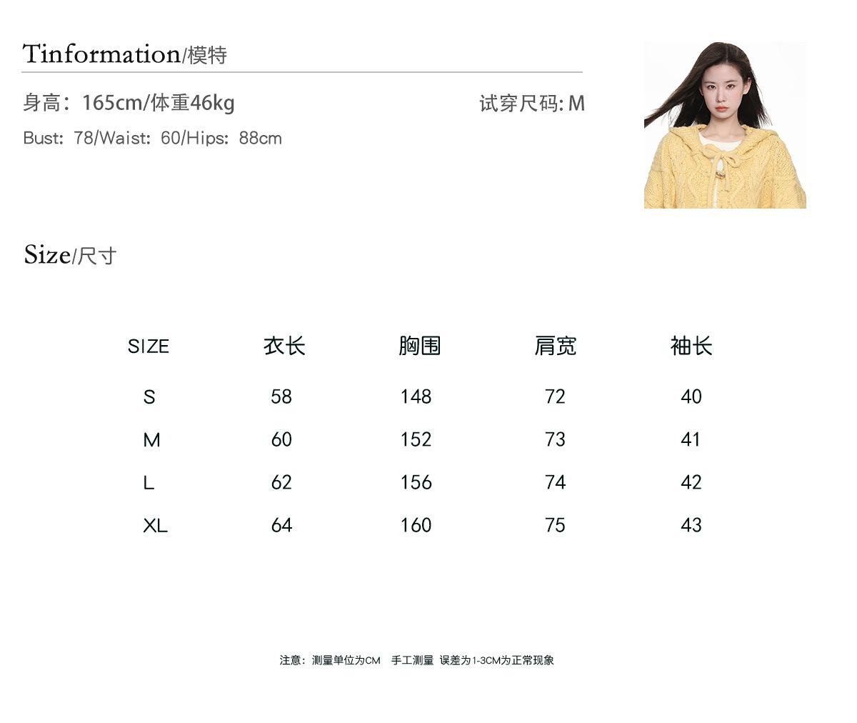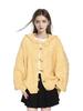 Suéter con Capucha y Hebilla de Esquina Torcida Amarilla para Mujer Otoño e Invierno Estilo Holgado Perezoso Cárdigan de Punto Grueso Top
