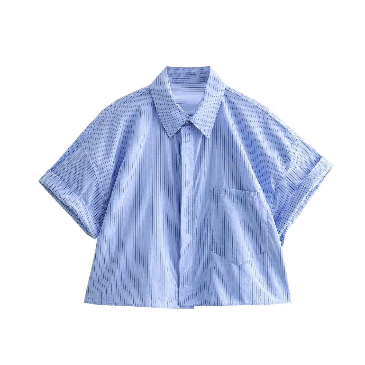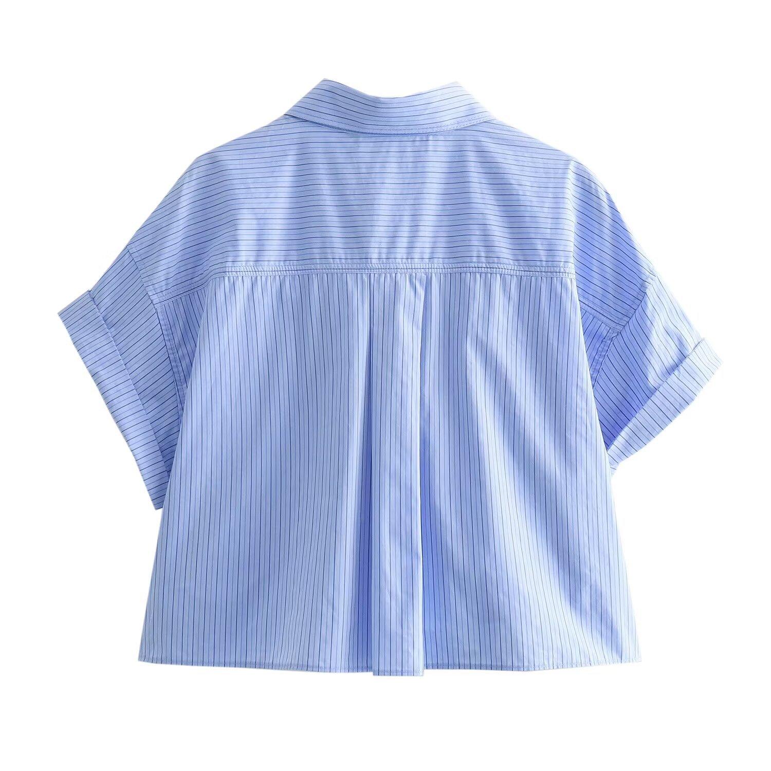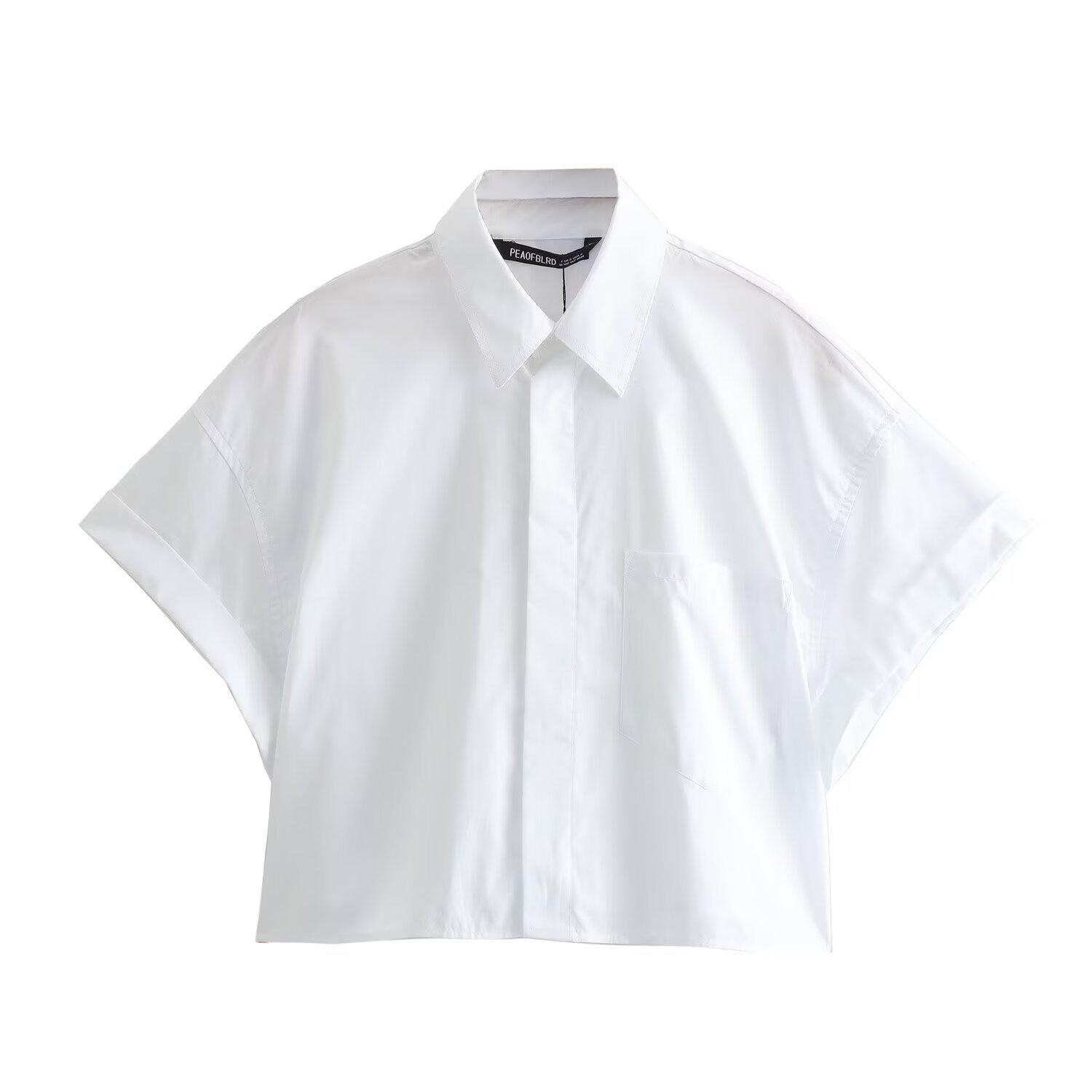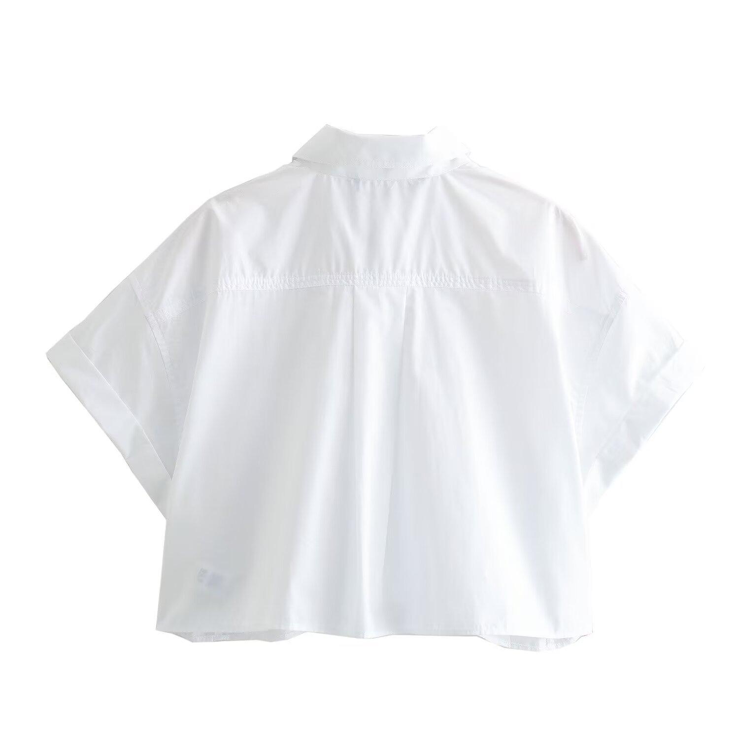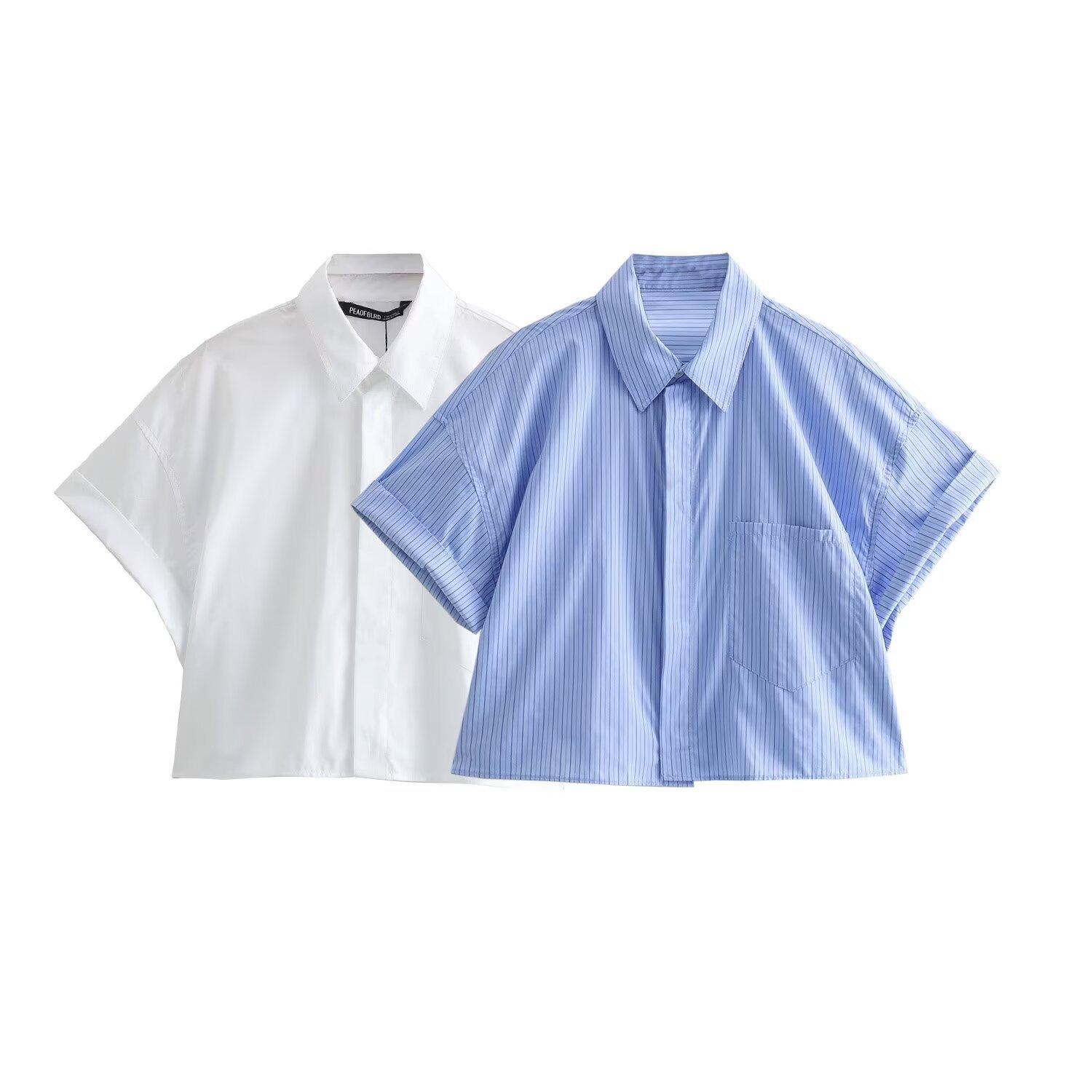 Camisa de manga corta de popelina informal de moda de cuello polo de calle para mujer, estilo europeo y americano, primavera y verano de 2024