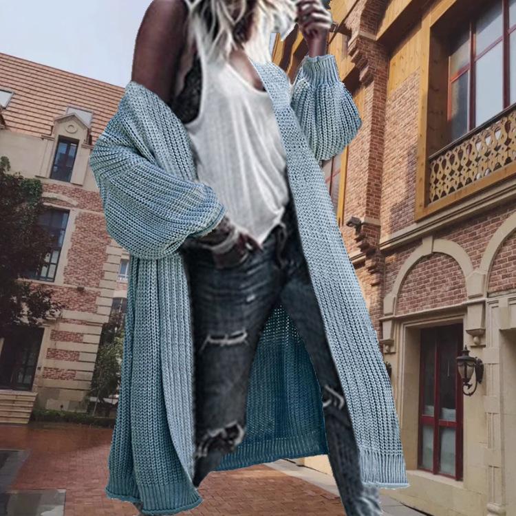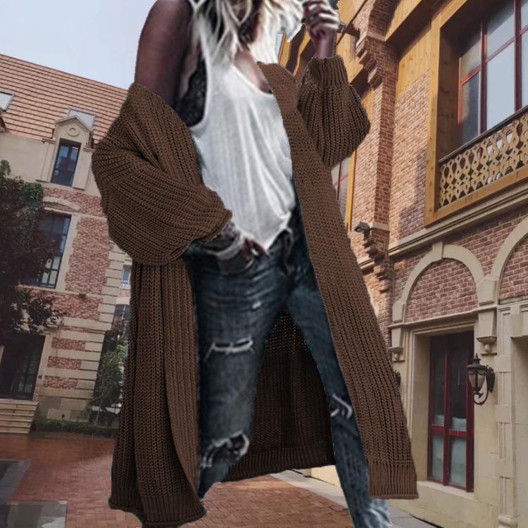 Suéter cárdigan informal holgado de otoño para mujer, abrigo largo y rizado de color liso, de AliExpress.