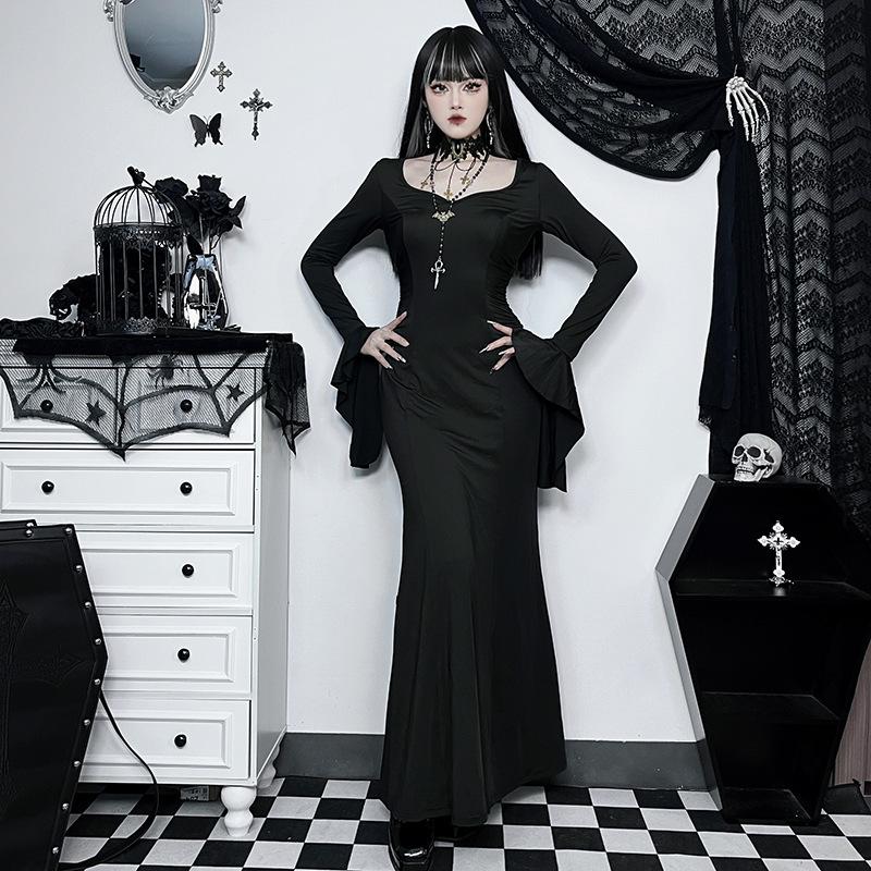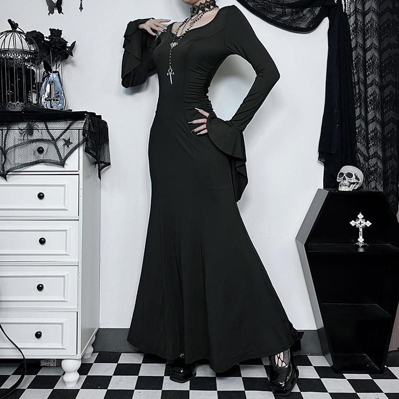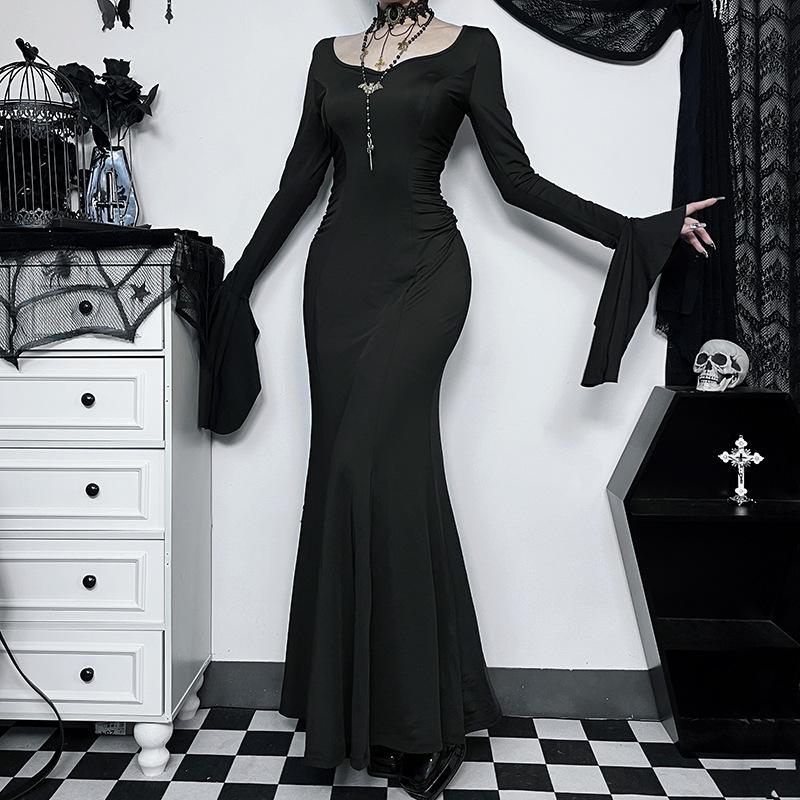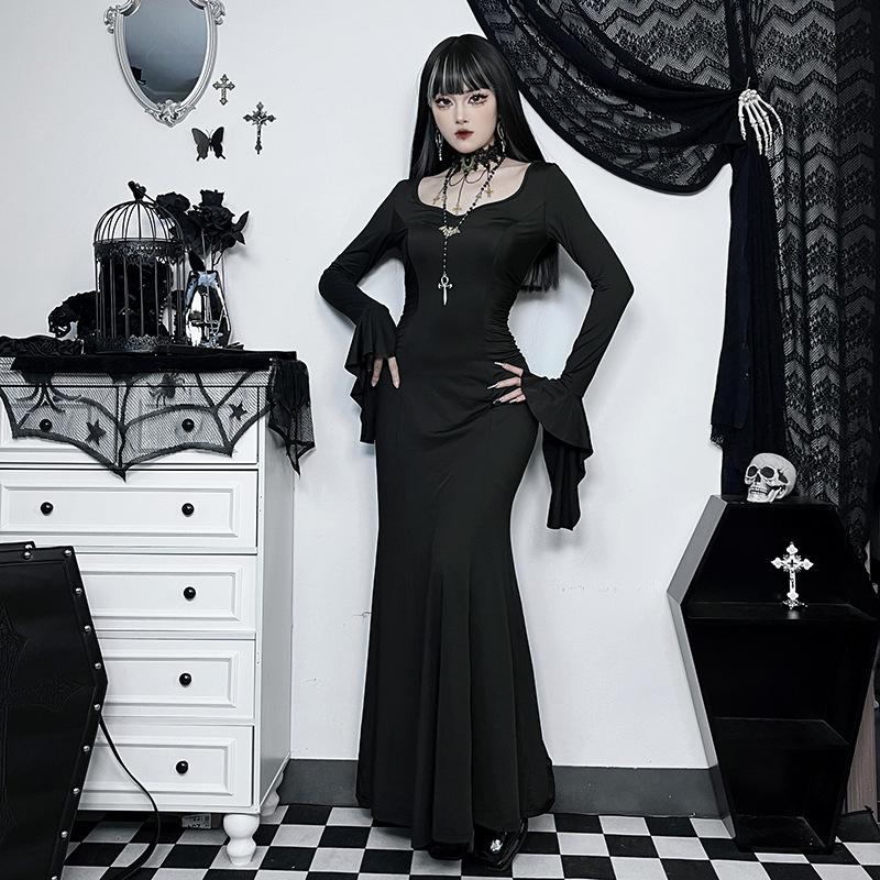Yf23415 Verano Nuevo Estilo Elegante Slim Falda Larga Heroína Familia Addams Falda Cola de Pescado Tiss Ropa de Mujer