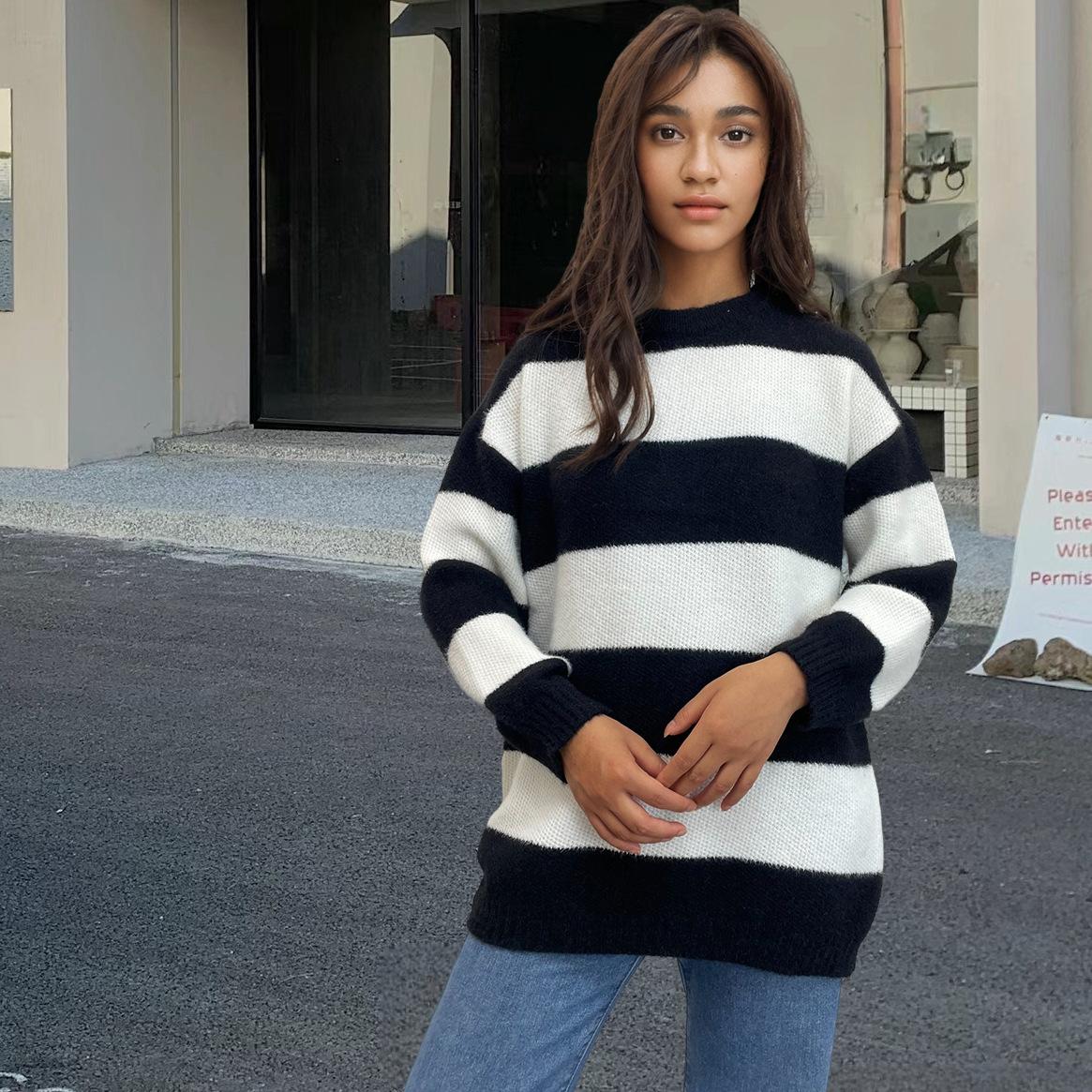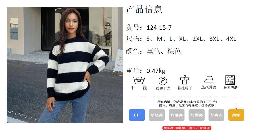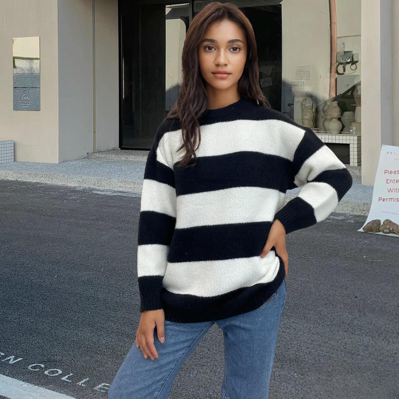 Tejidos de punto para mujer transfronterizos para mujer 2025 Otoño e Invierno Ropa europea y americana Nuevo tops holgados con combinación de colores de exportación para mujer