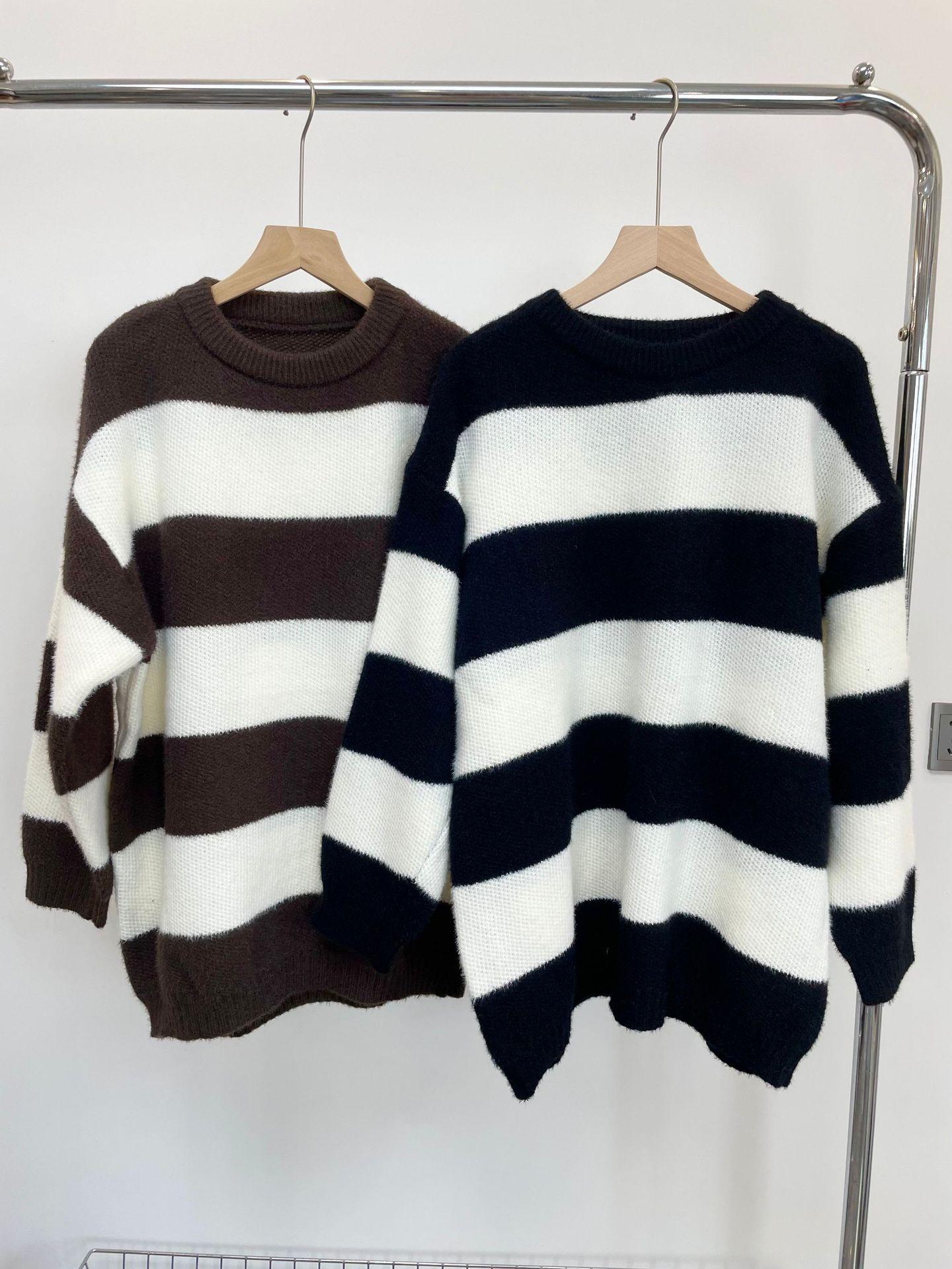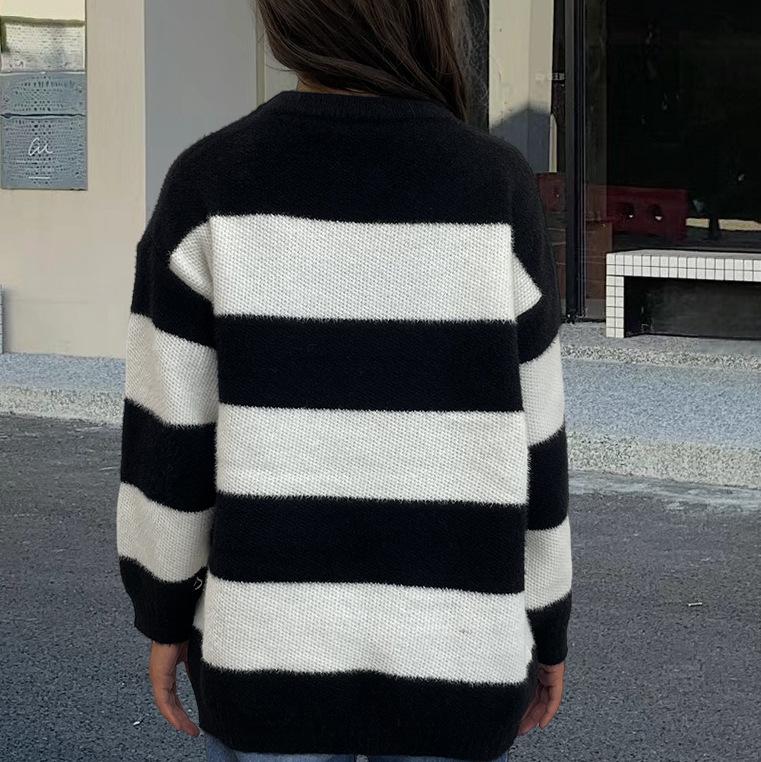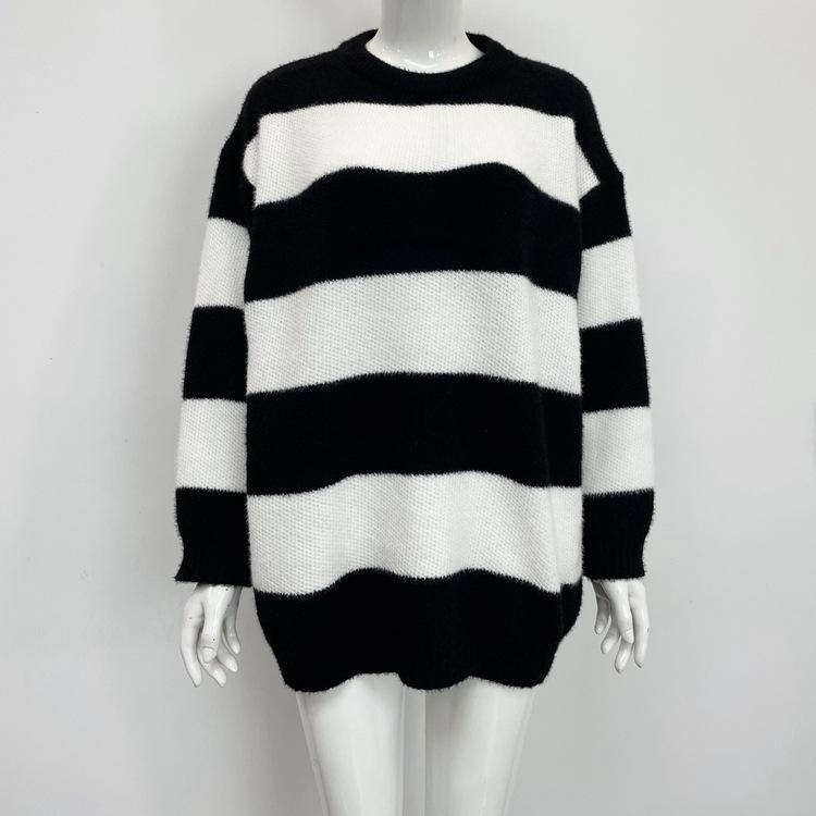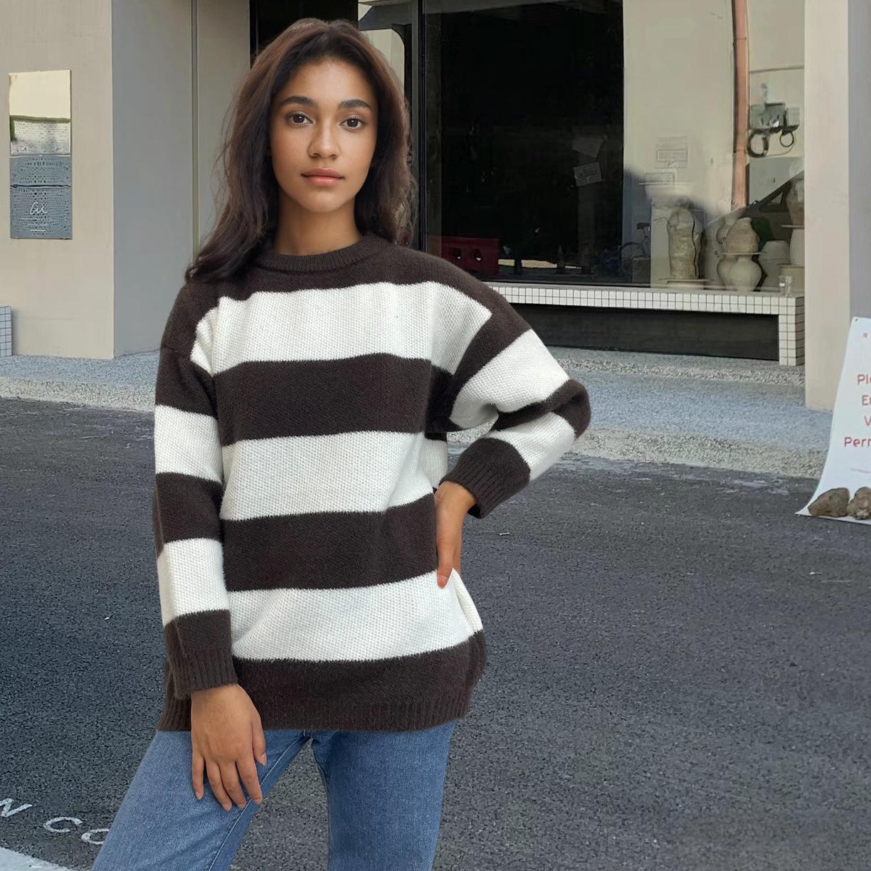 Tejidos de punto para mujer transfronterizos para mujer 2025 Otoño e Invierno Ropa europea y americana Nuevo tops holgados con combinación de colores de exportación para mujer