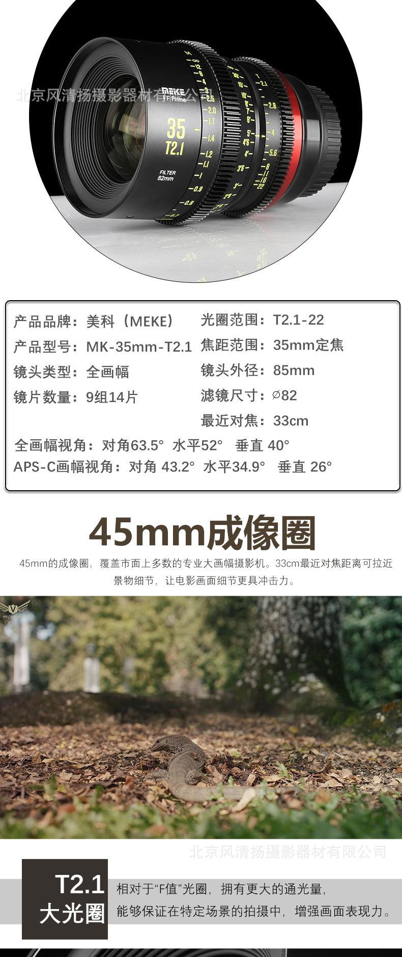 MEKE Meike 35 mmT2.1 Lente de película de fotograma completo FF-Prime Cinema Lens