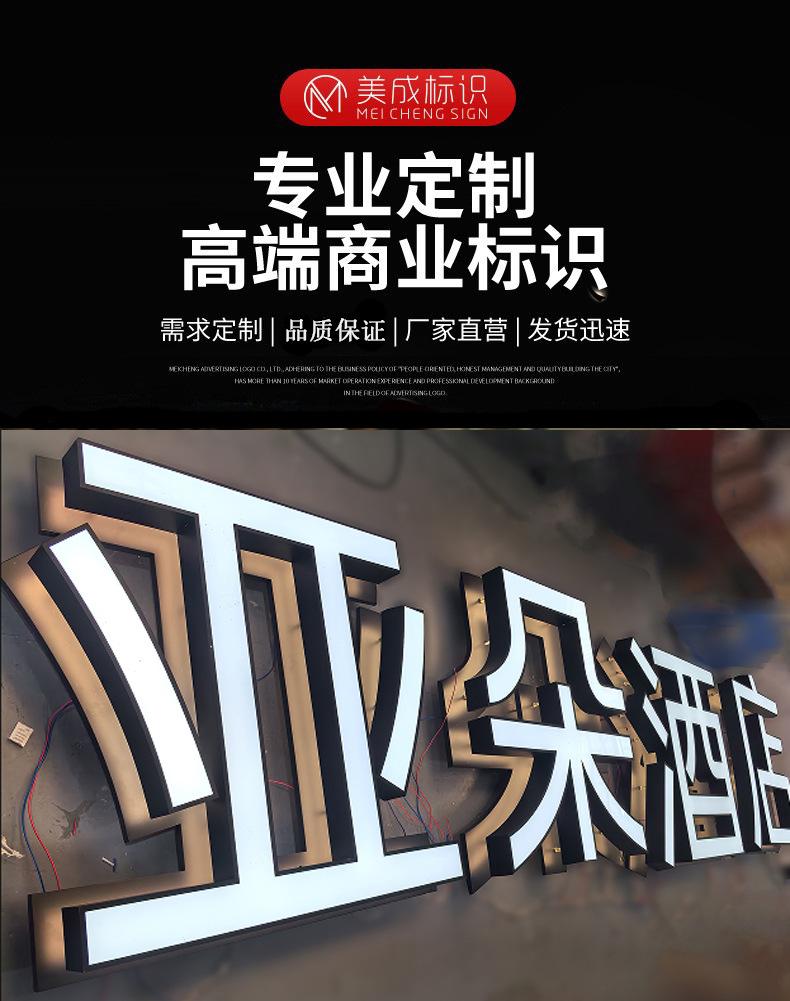 Cartel publicitario luminoso de acero inoxidable acrílico para exteriores, cadena de vallas publicitarias, letrero para puerta de hotel, producción de palabras luminosas