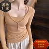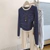 Suéter de camisa a rayas con costura de dos piezas falsas para mujer, primavera 2023, nuevo diseño holgado, top de punto informal