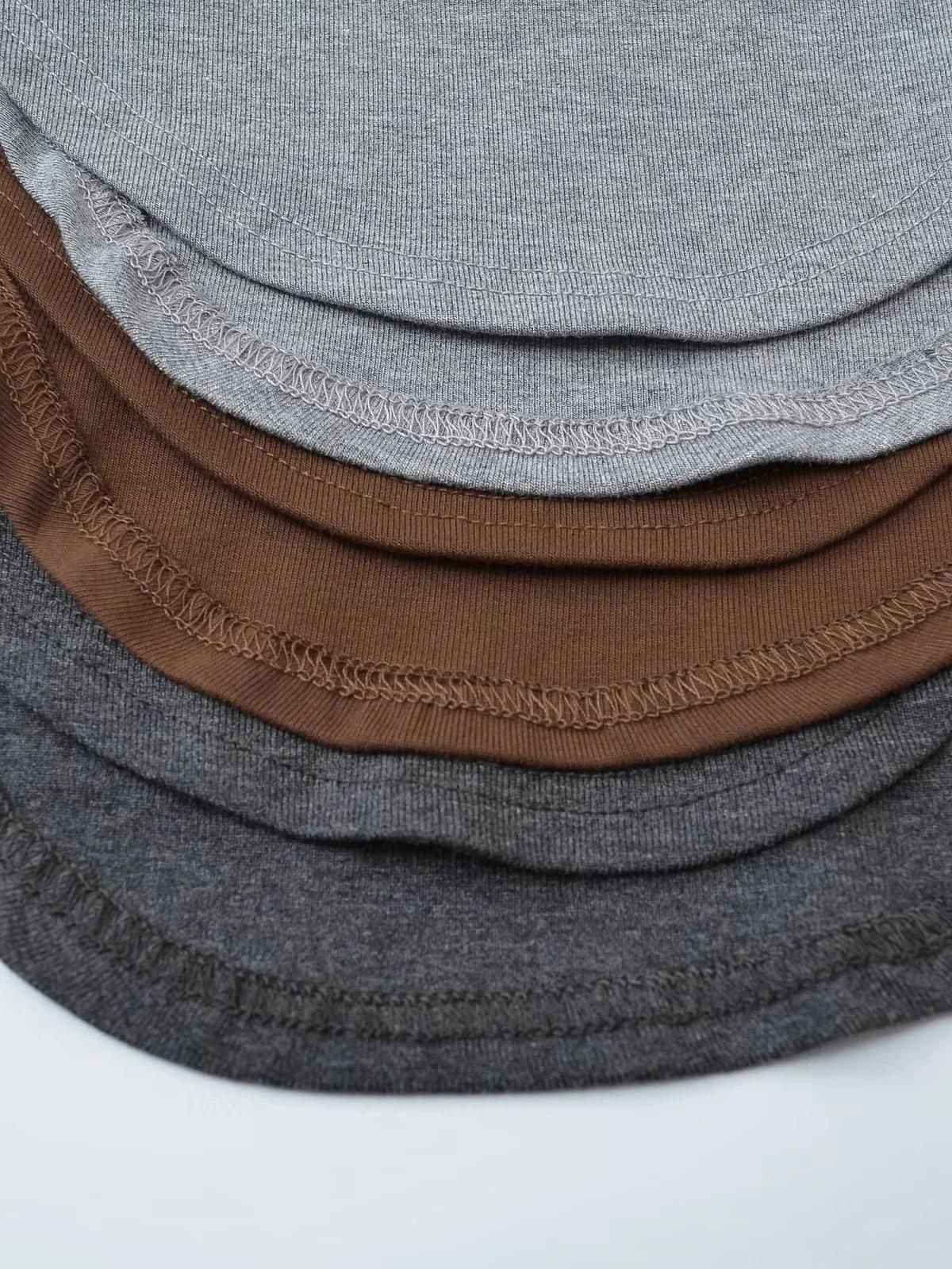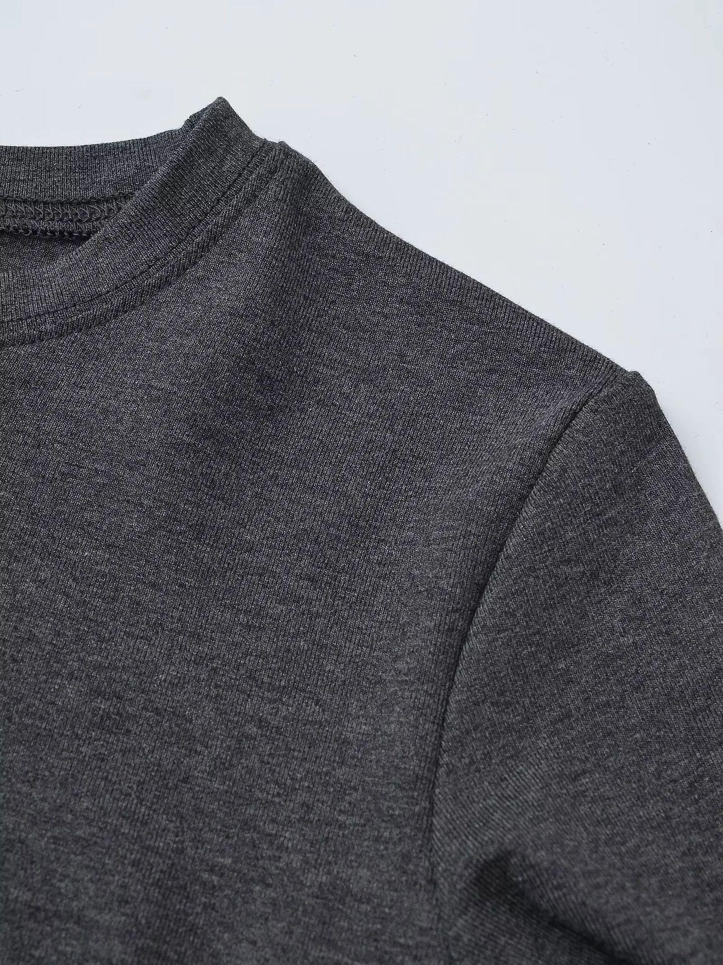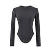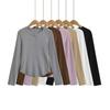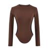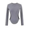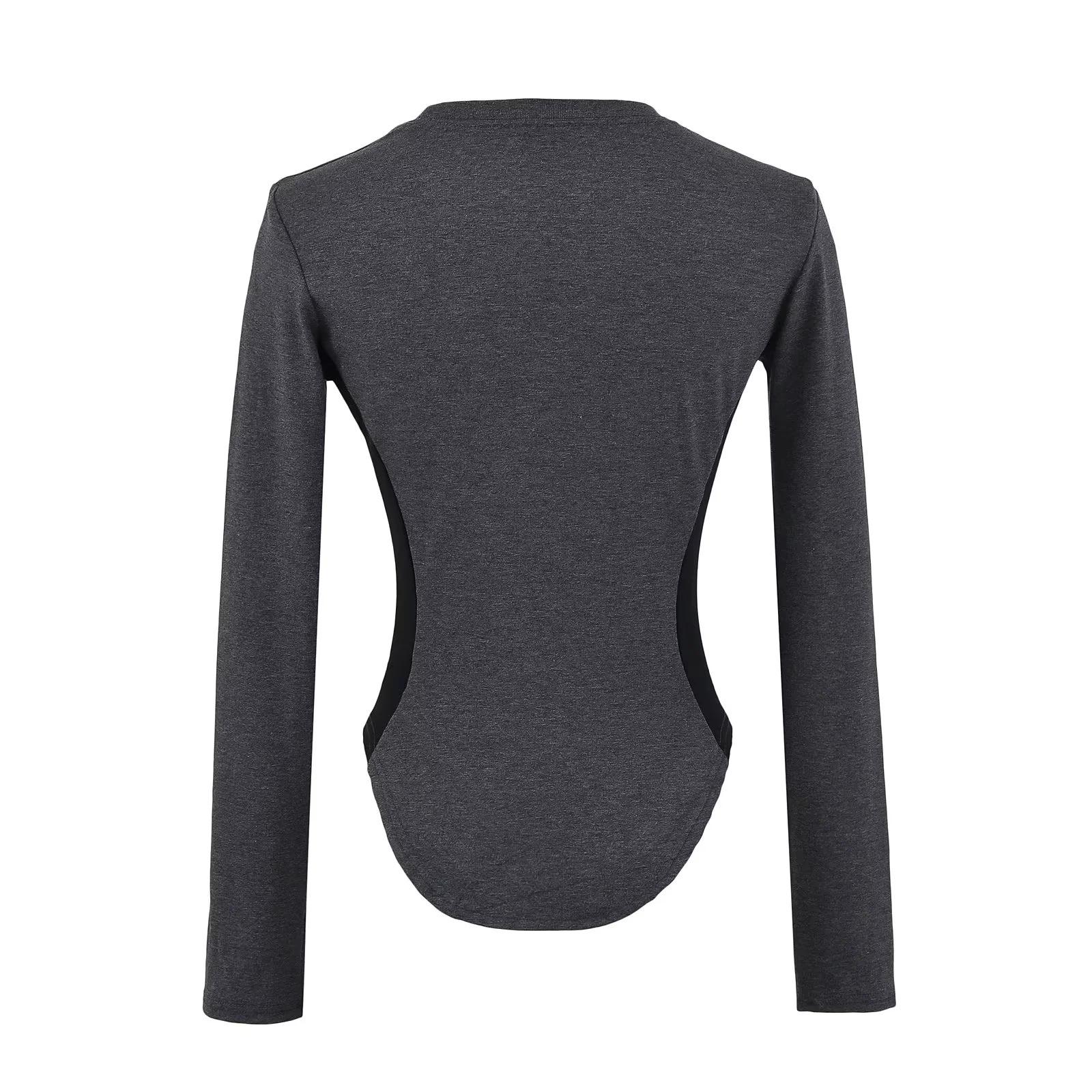 Camiseta Base de Manga Larga con Cuello Redondo Pequeño de Color Contrastante para Chica Hot Diseño de Primavera y Otoño Cintura de Reloj de Arena Sexy Ajustada Top