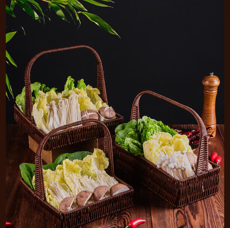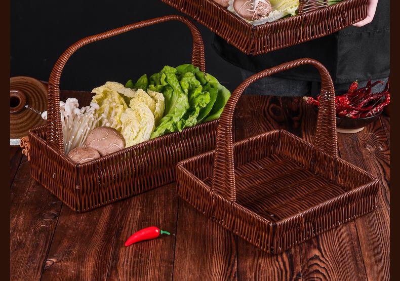 Cesta Creativa Tejida de Ratán de Imitación Plato para Verduras para Hot Pot Cesta para Frutas y Snacks Cesta para Almacenar Dulces