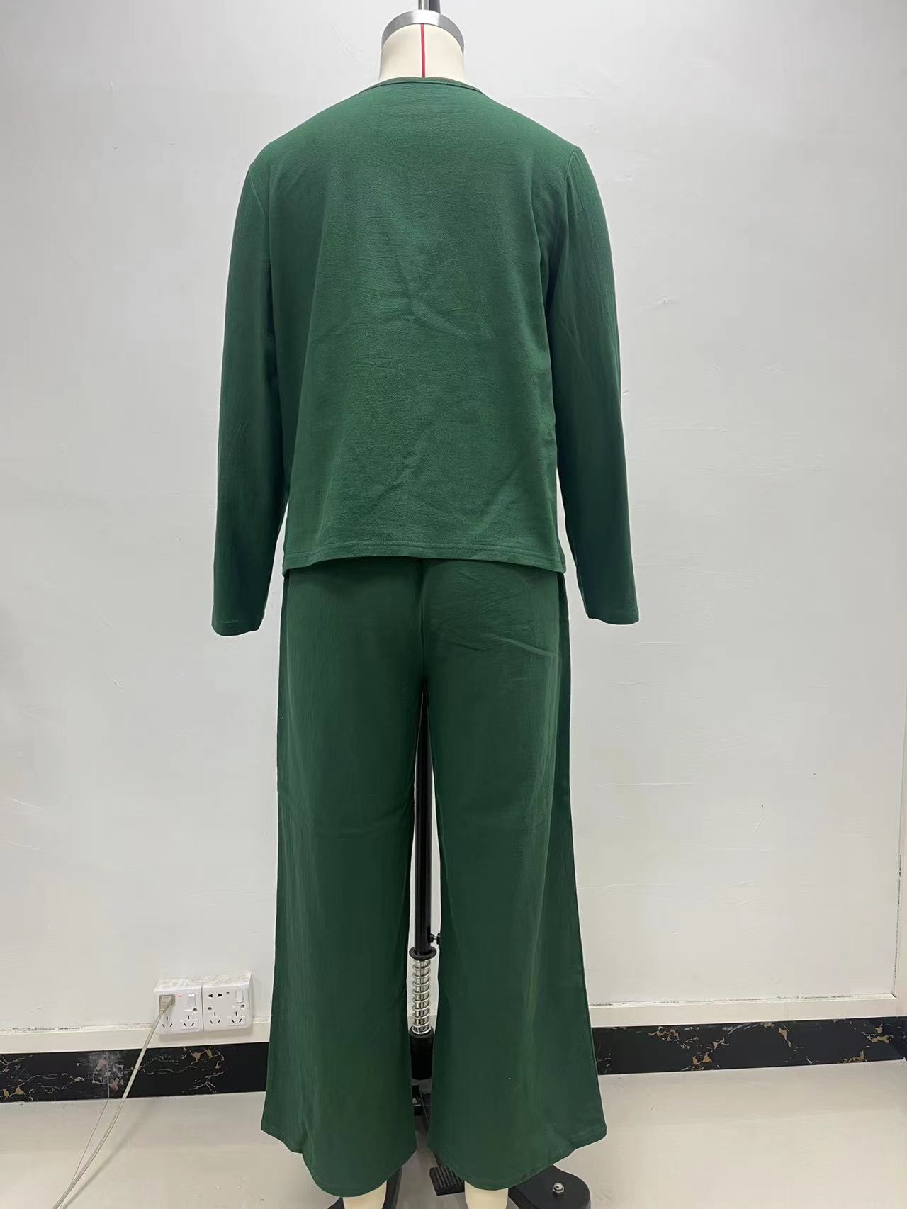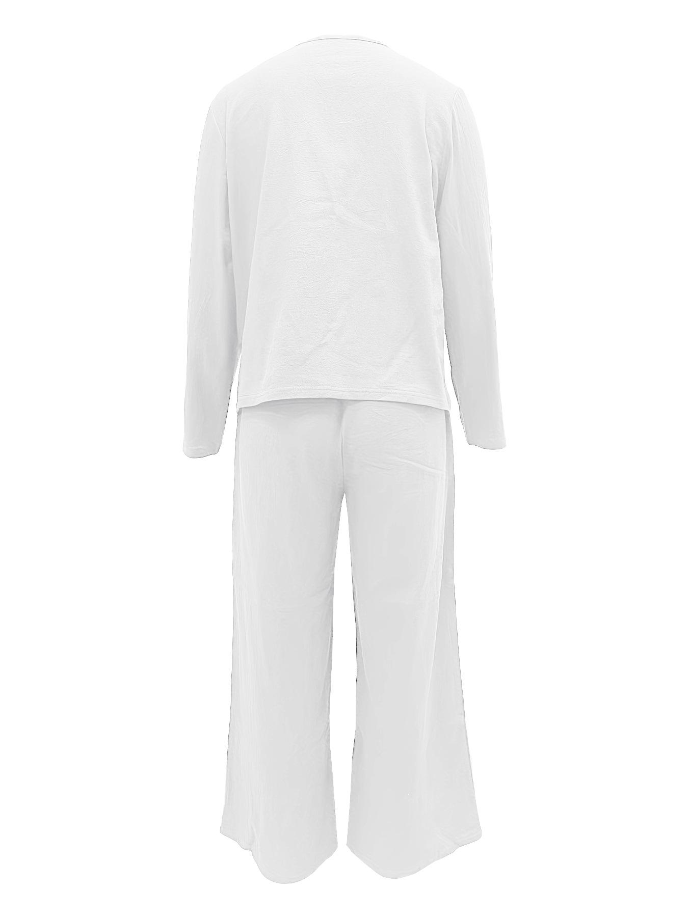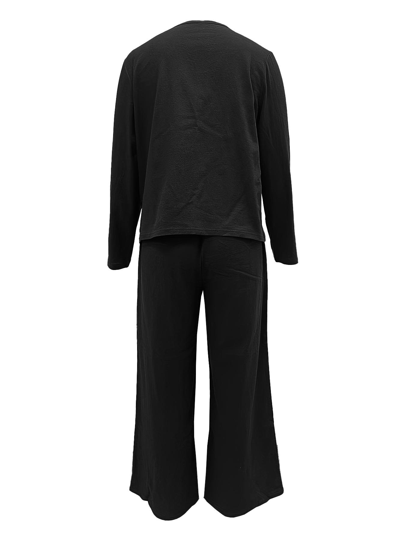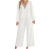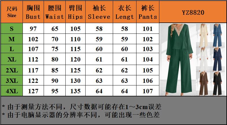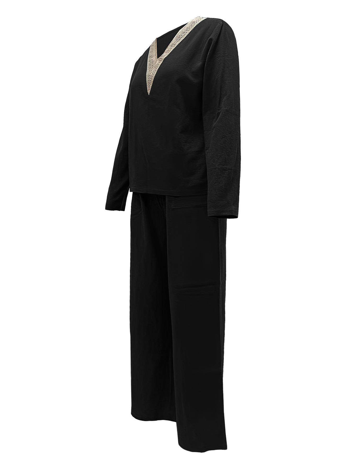 Conjunto de pantalones de manga larga para mujer, estilo informal, de lino y algodón con cuello en V, estilo europeo y americano, 2023