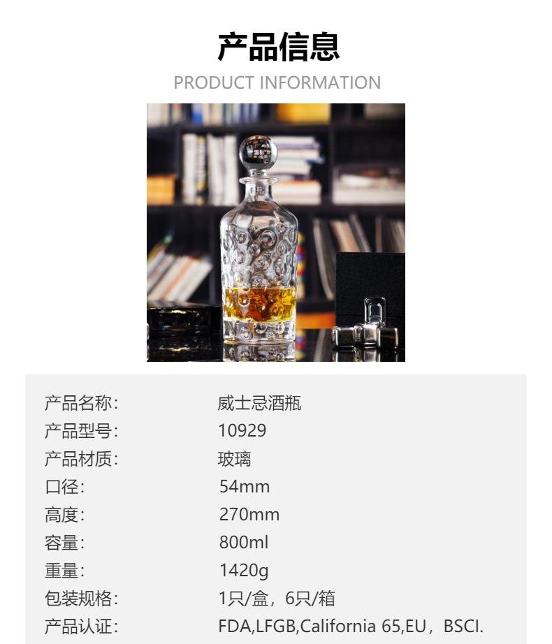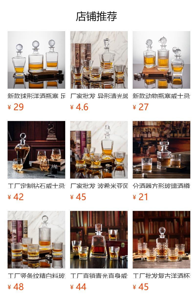 Nuevo en stock Amazon Transfronterizo Venta Caliente Botella de Vidrio para Whisky Vino Botella de Vino Jarra de Vino Decantador de Vino de Vidrio
