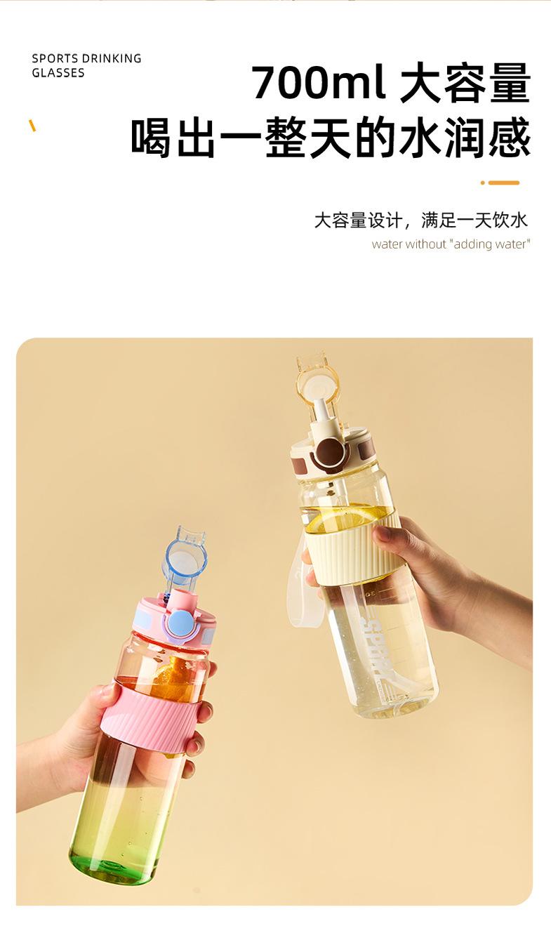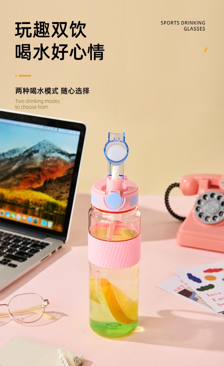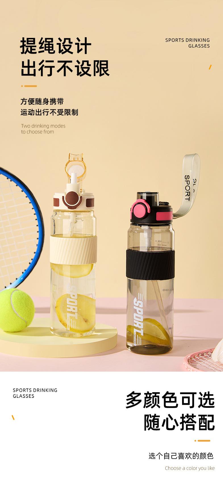 Nuevo vaso deportivo de plástico de alto valor para exteriores para hombres y mujeres con tapa abatible, cuerda para levantar y popote