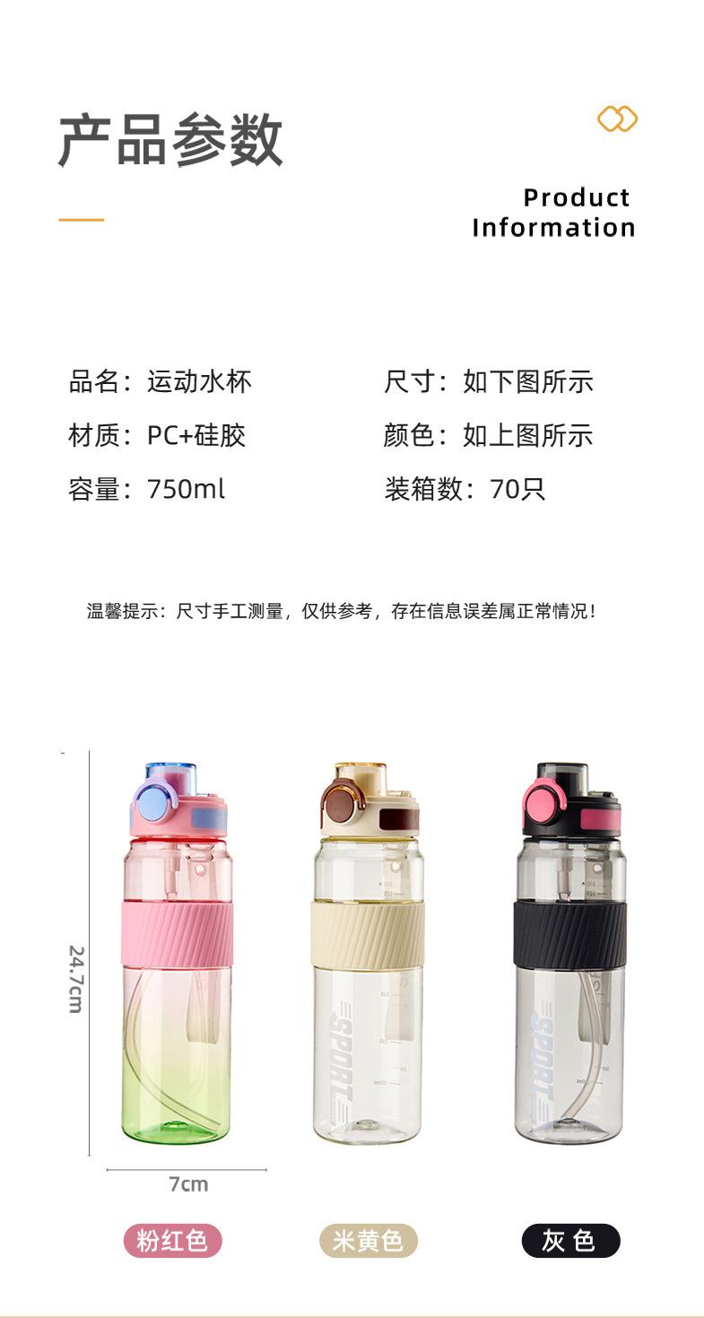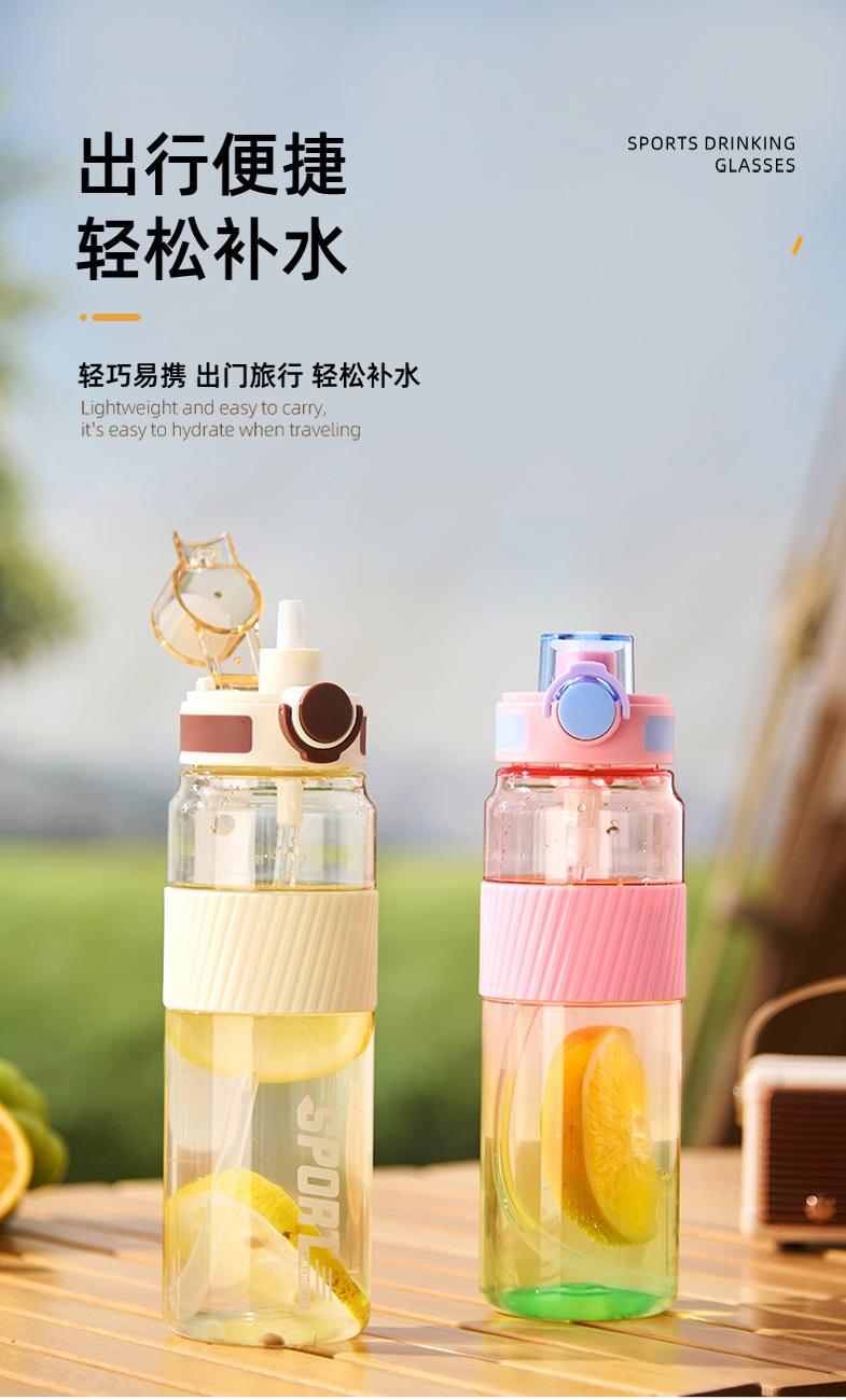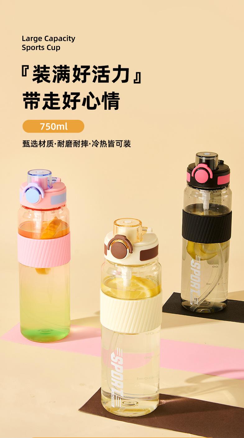 Nuevo vaso deportivo de plástico de alto valor para exteriores para hombres y mujeres con tapa abatible, cuerda para levantar y popote