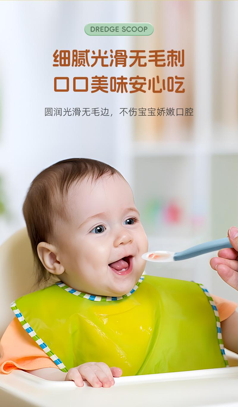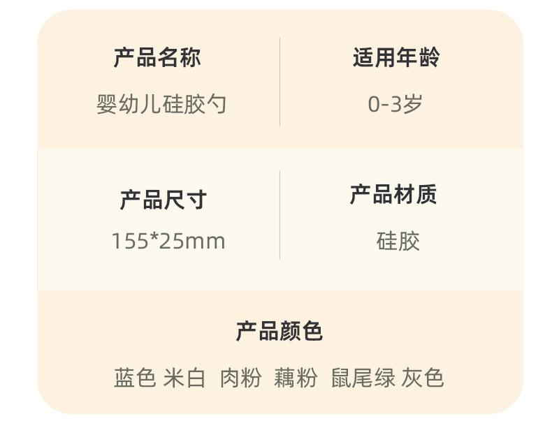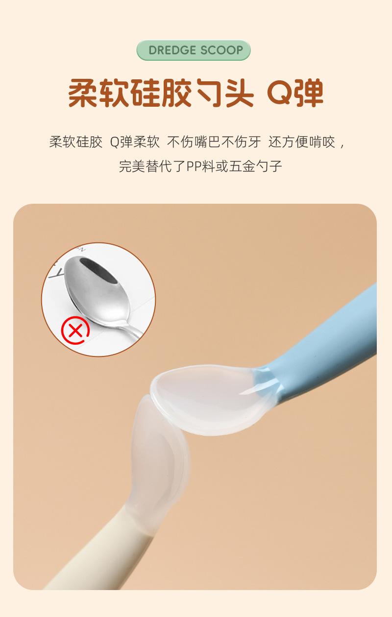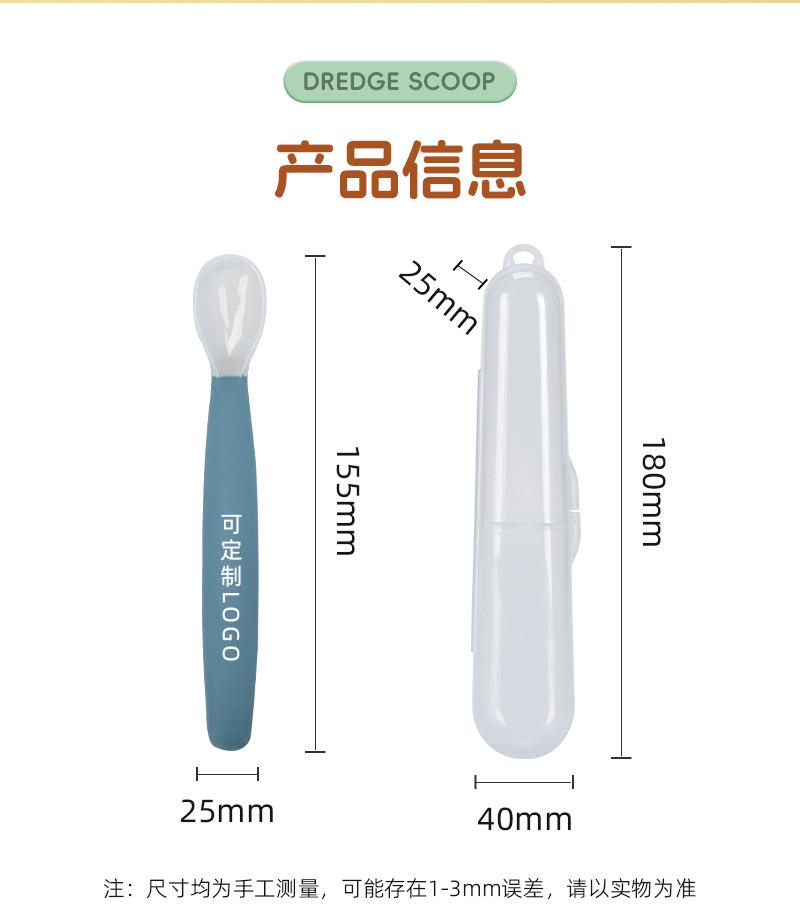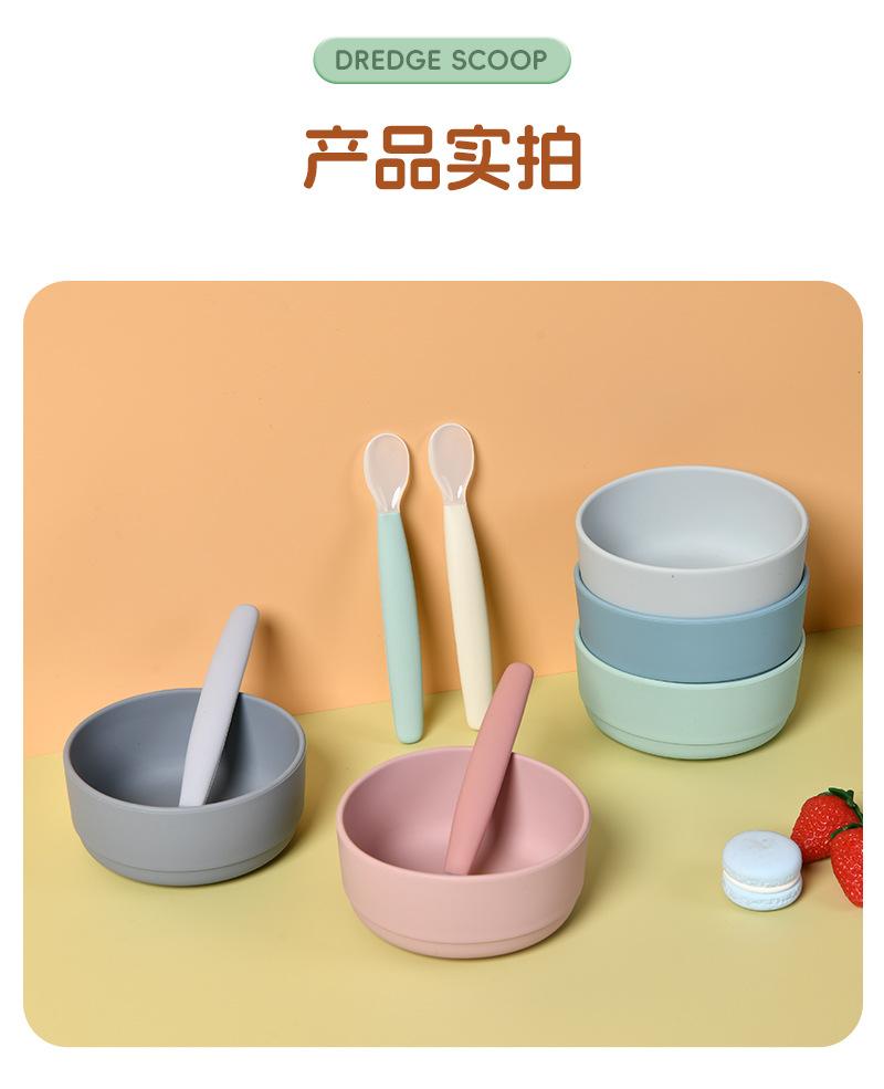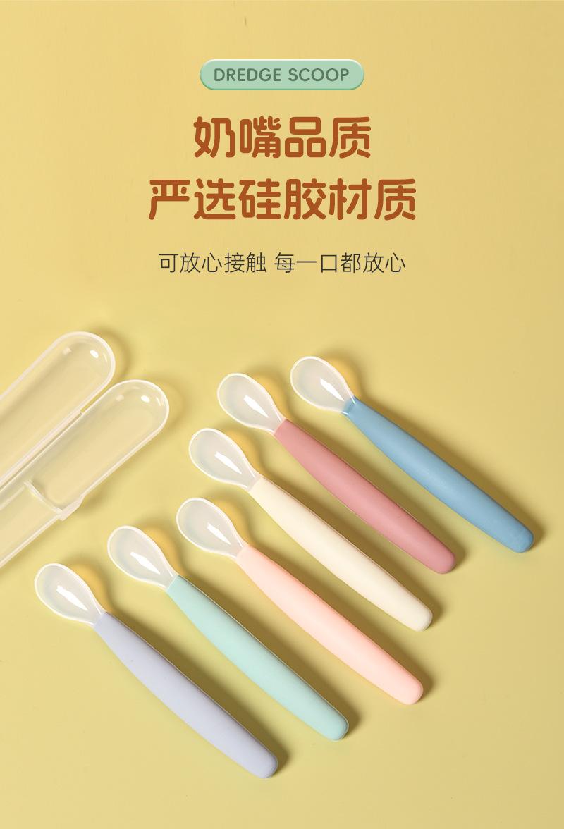 2. La cuchara está libre de BPA y PP, lo que garantiza su dureza. La silicona pura es ideal para bebés y niños pequeños, y su exportación es más sencilla. El cuerpo de la cuchara utiliza un material específico con una dureza superior a 80 grados.