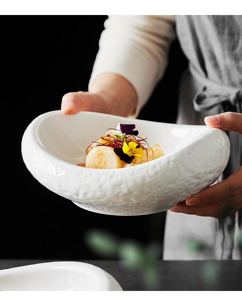 Plato de cerámica con forma de patrón de piedra, bonito y práctico para el hogar, platos fríos, plato hondo, vajilla para restaurante y hotel.