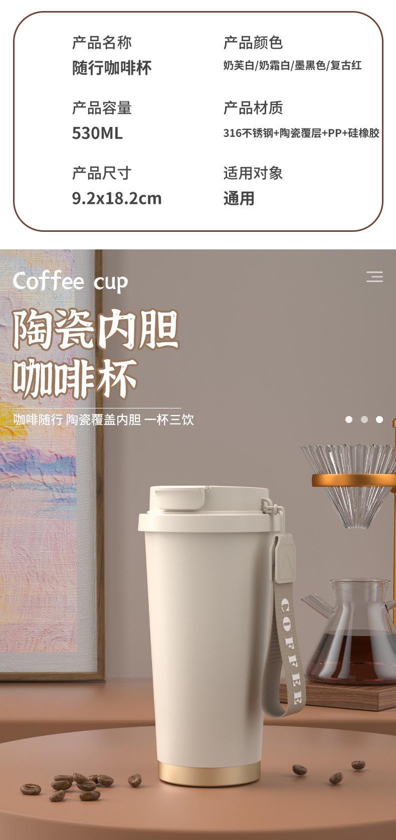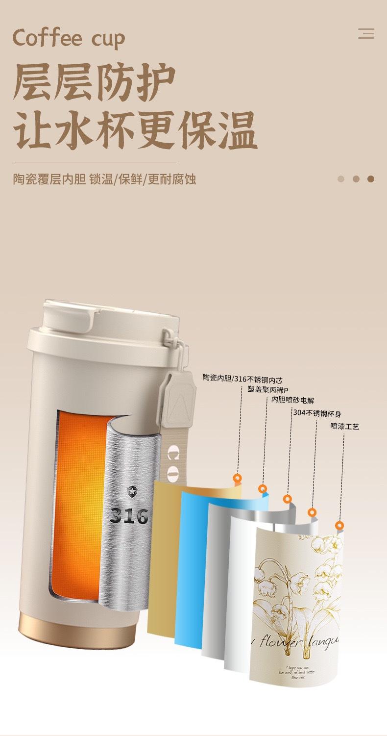 Vaso Termo Portátil de Larga Duración con Laca al Vacío Doble para Bebidas Acompañable Ventosa Alto Valor de Color Taza de Café con Revestimiento Cerámico