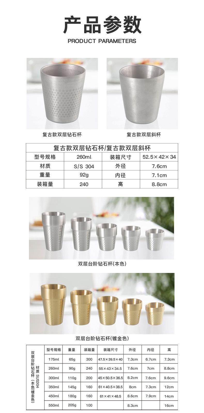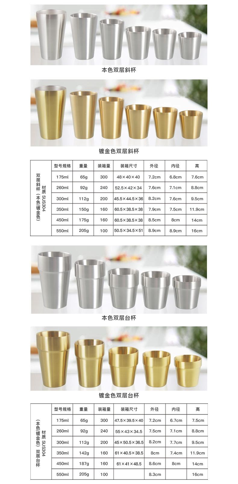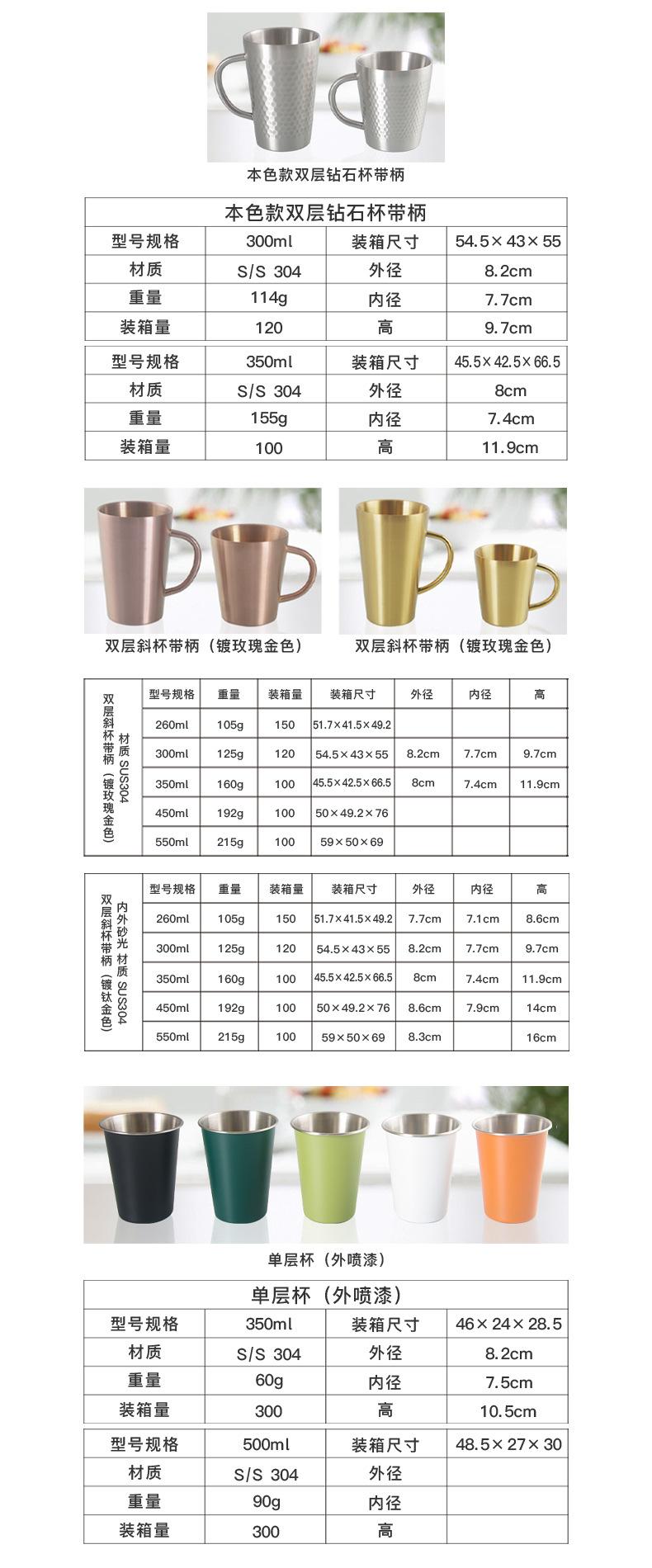 304 double-layer oblique cup with handle (titanium-plated gold) - sanded inside and outside