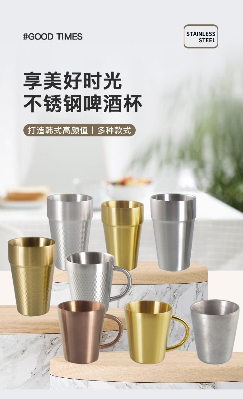 Tarro de Cerveza Acero Inoxidable 304 Vaso de Doble Capa Aislado Taza de Café para el Hogar Taza para Restaurante Vaso Portátil Multiestilo