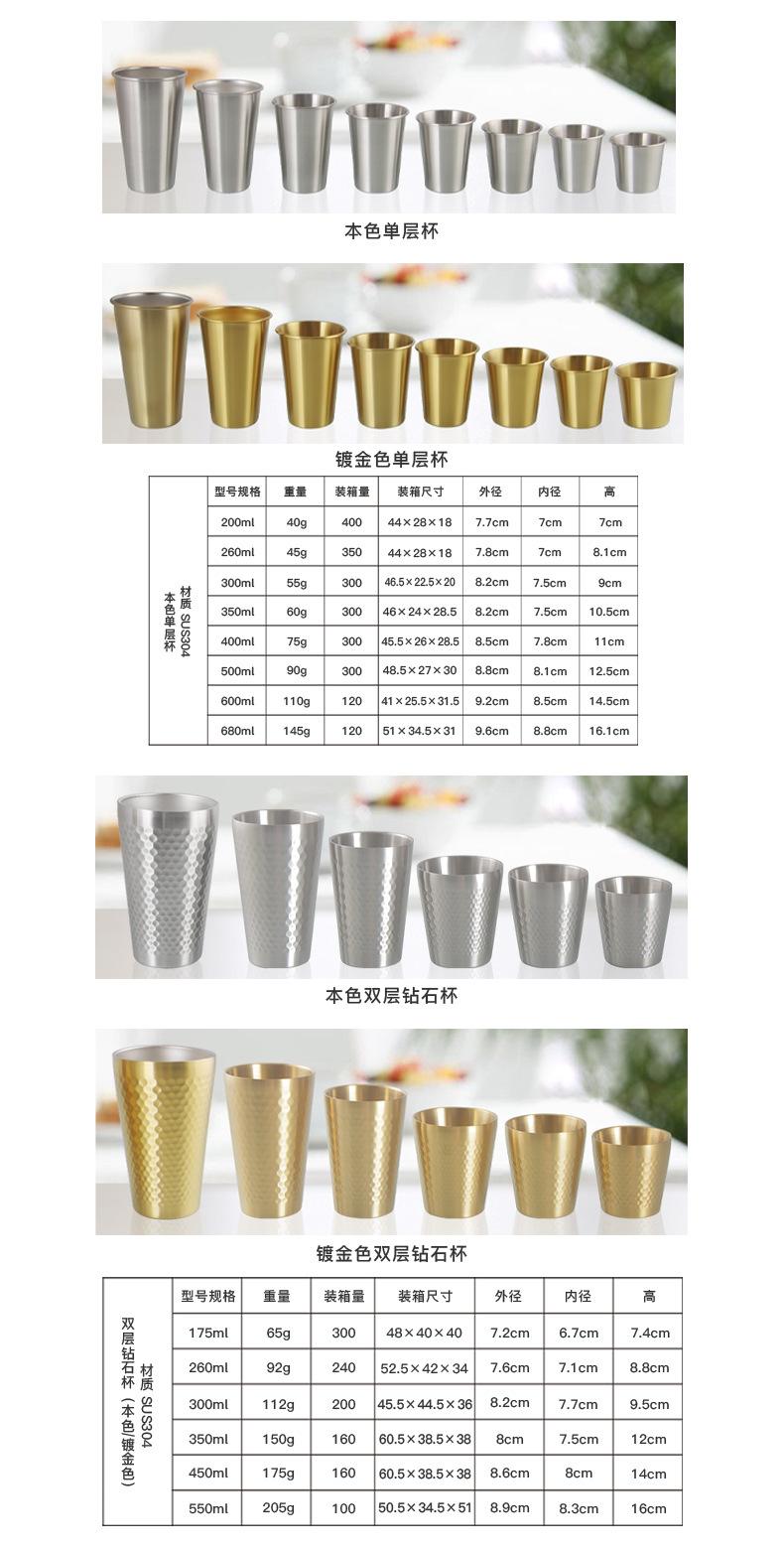 304 natural color single layer cup, 304 gold plated single layer cup, 304 spray painted single layer cup (rand...