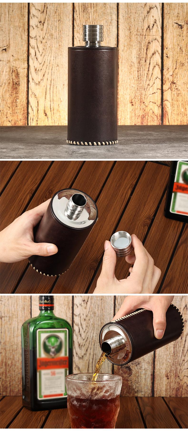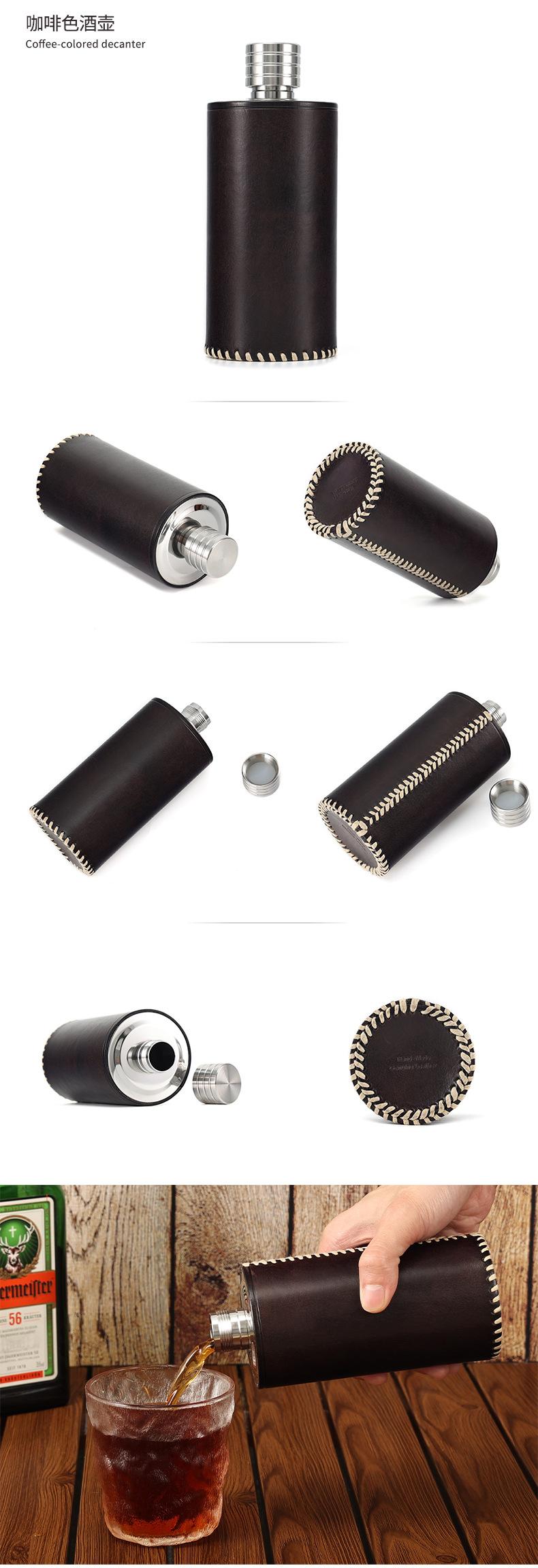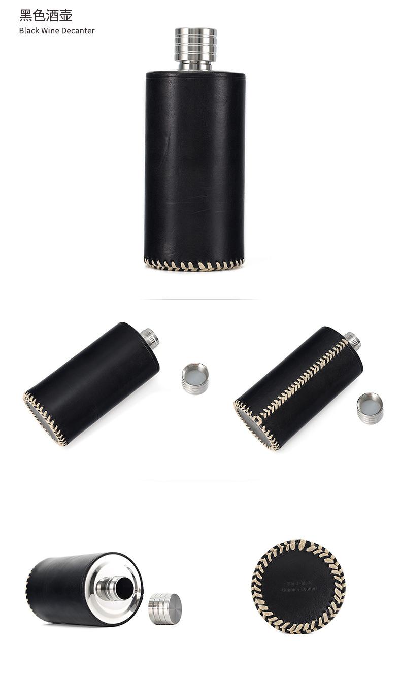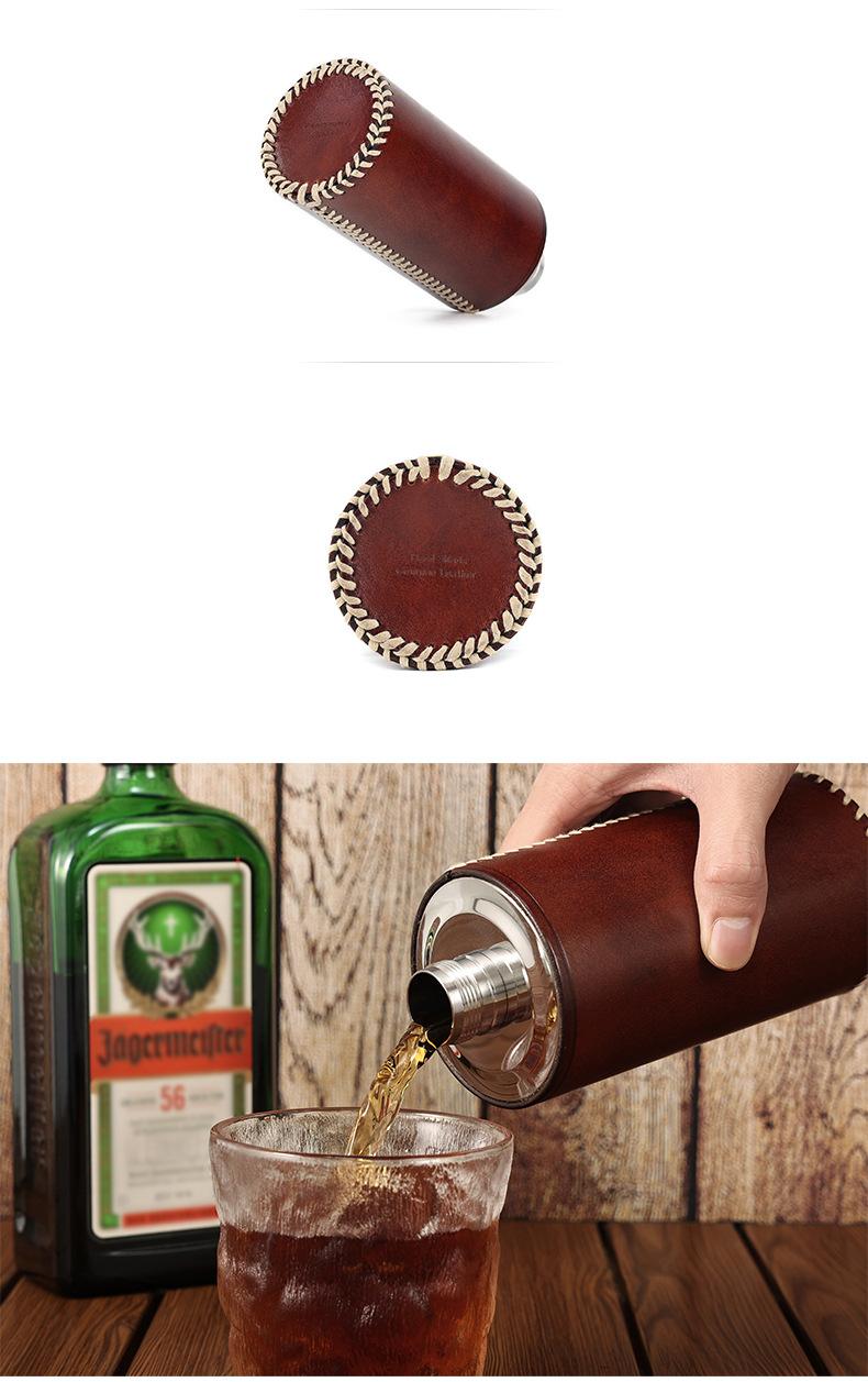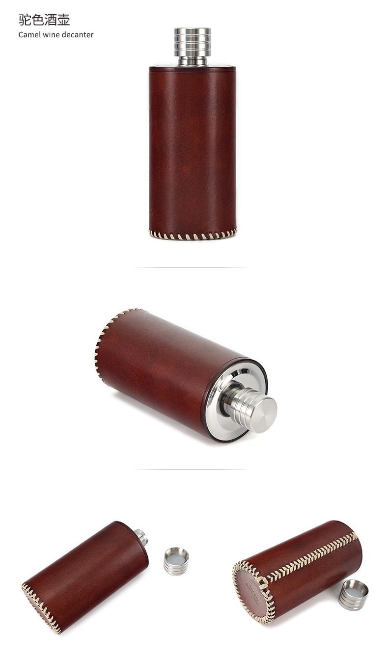 Jarra de vino vintage de cuero curtido vegetal de 500 ml, jarra de almacenamiento de vino de cuero curtido vegetal cosida a mano de acero inoxidable 304, botella de vino