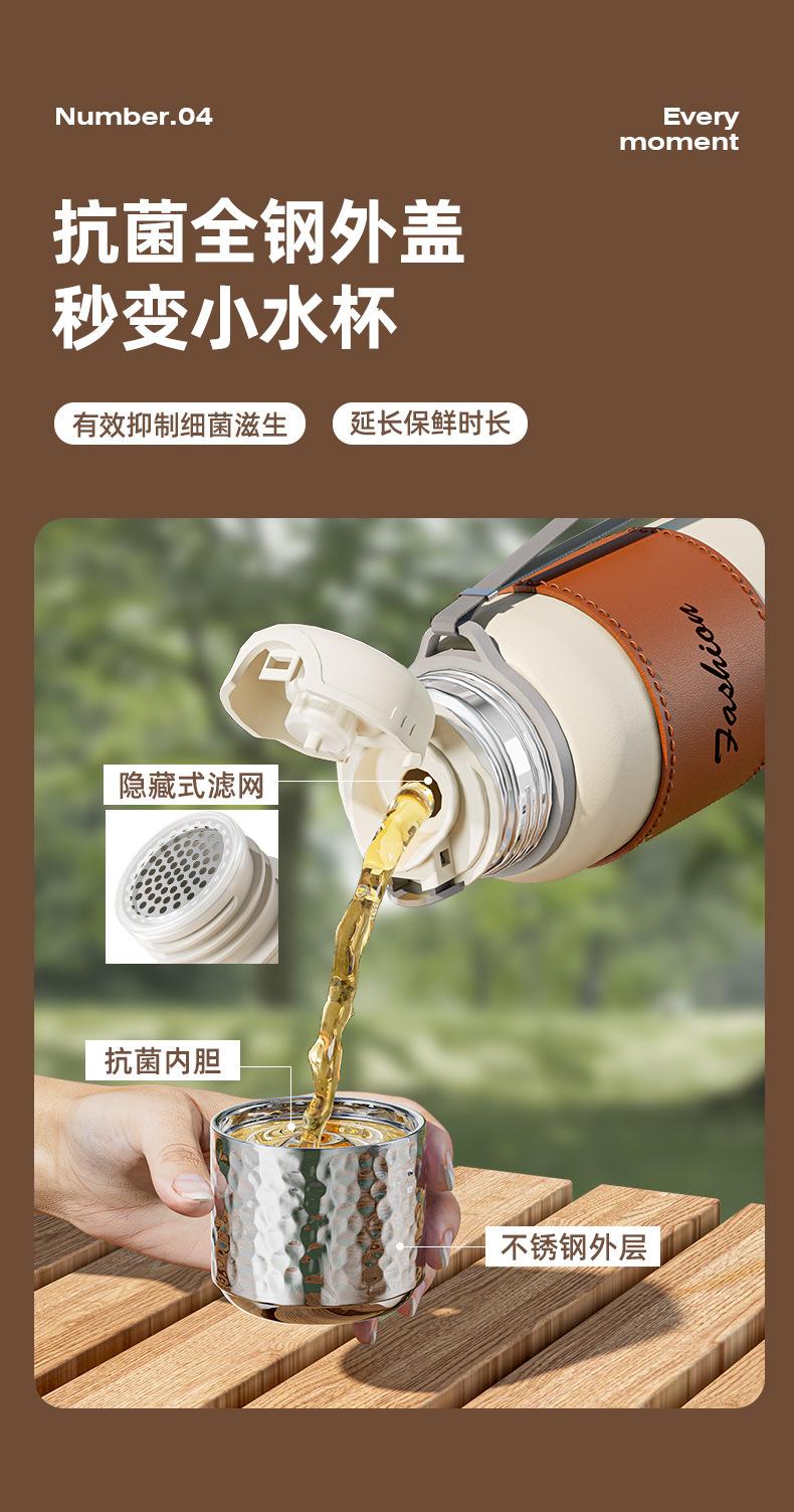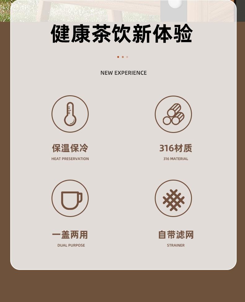 Regular, Home use, Portable, Vacuum, Insulation, Bounce, Customizable, Temperature measurement, Tea and water separation