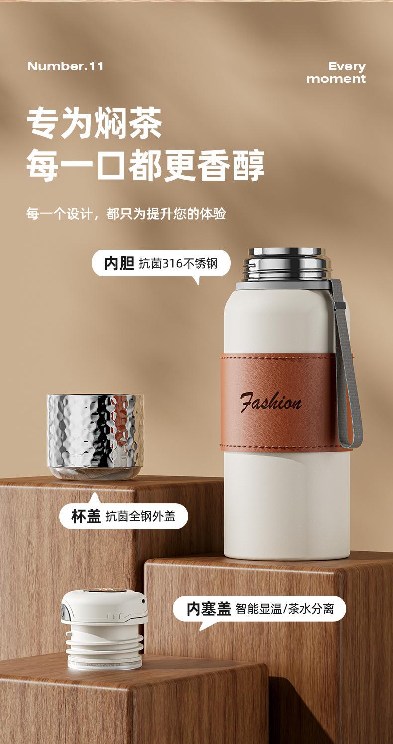 Termo inteligente de acero inoxidable 316 de gran capacidad, portátil, con tapa de martillo, separación de té, logotipo de taza de alto valor de color