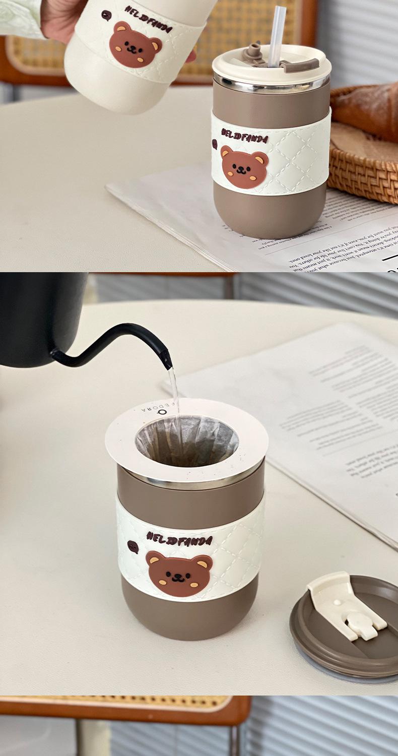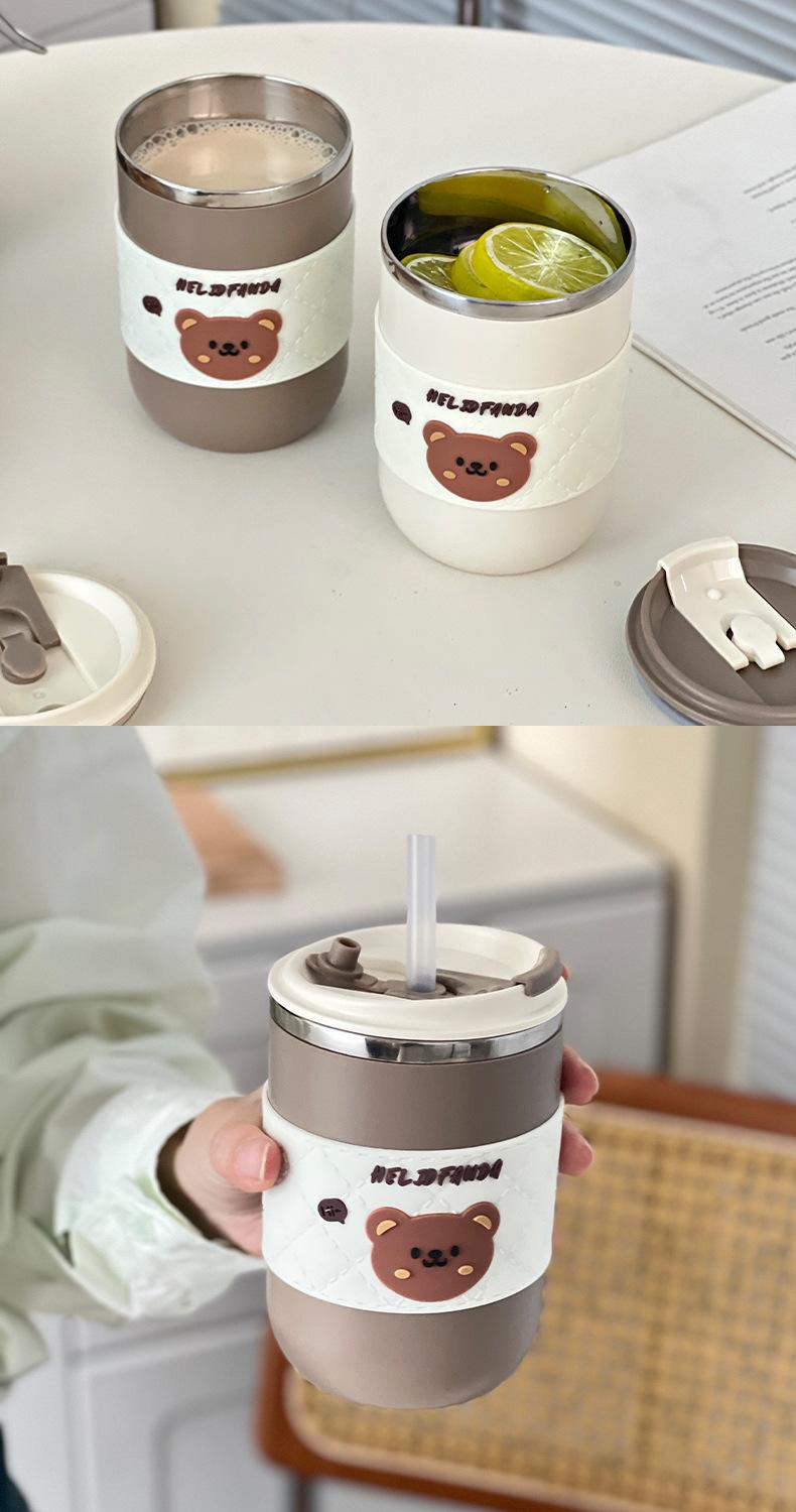 Off-white [comes with silicone straw] + cup cover, Brown [comes with silicone straw] + cup cover