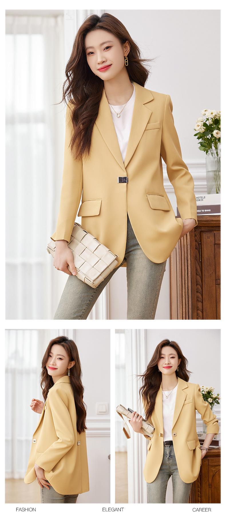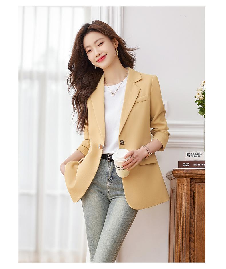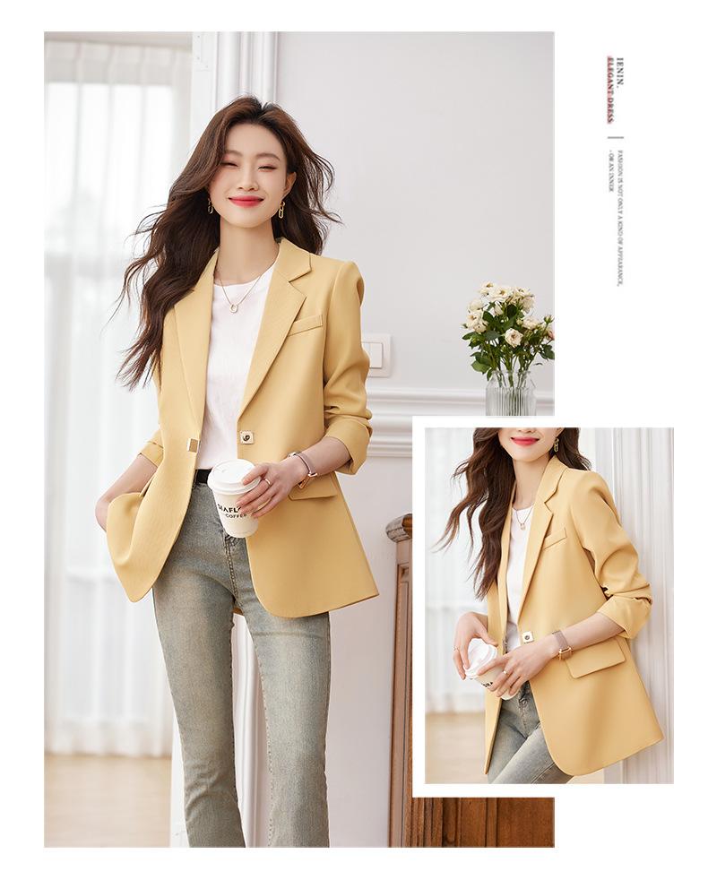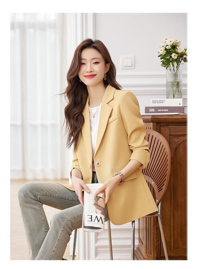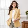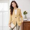Chaqueta de traje pequeña de manga larga amarilla para mujer, otoño e invierno, diseño elegante, combinable con todo, para uso diario.