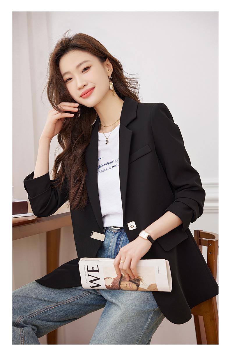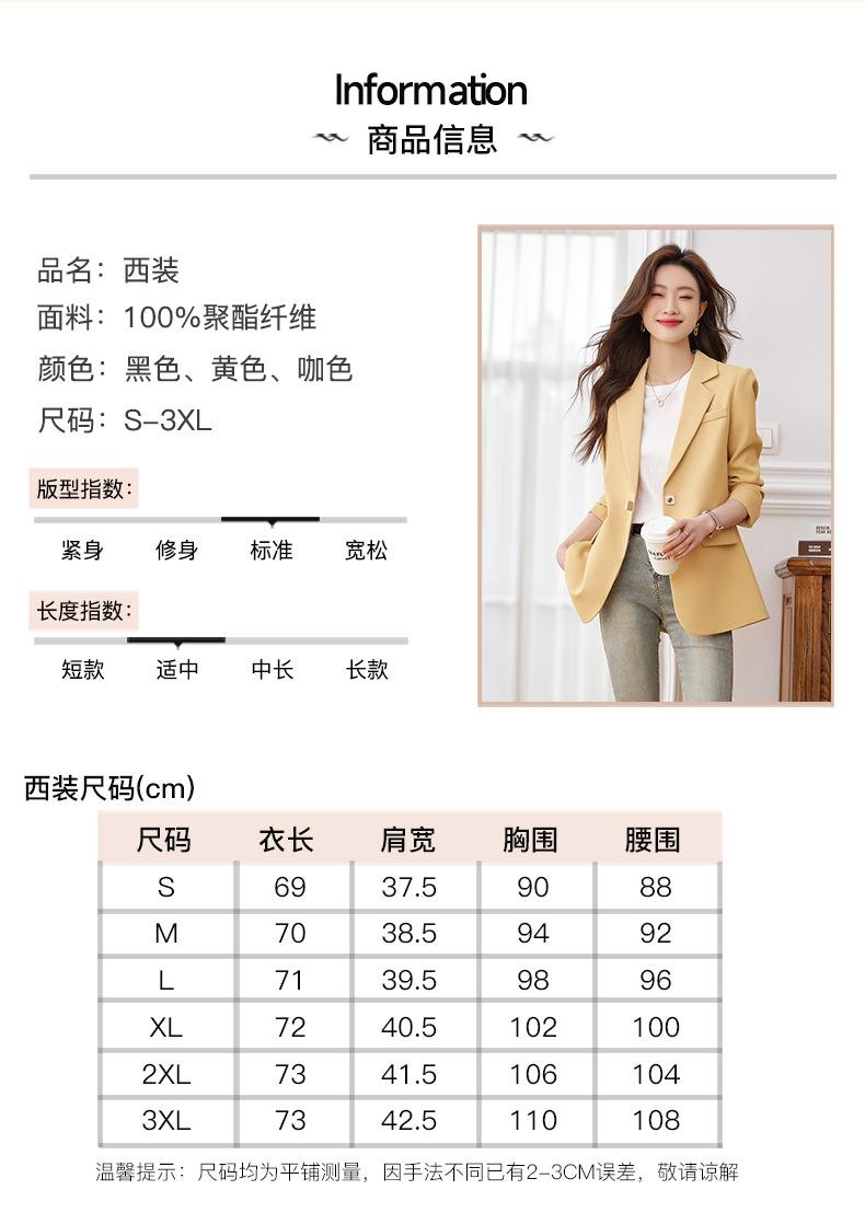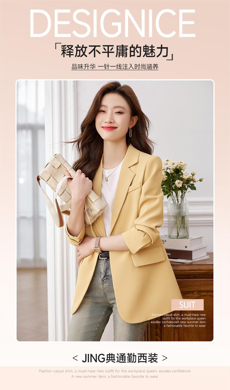Chaqueta de traje pequeña de manga larga amarilla para mujer, otoño e invierno, diseño elegante, combinable con todo, para uso diario.