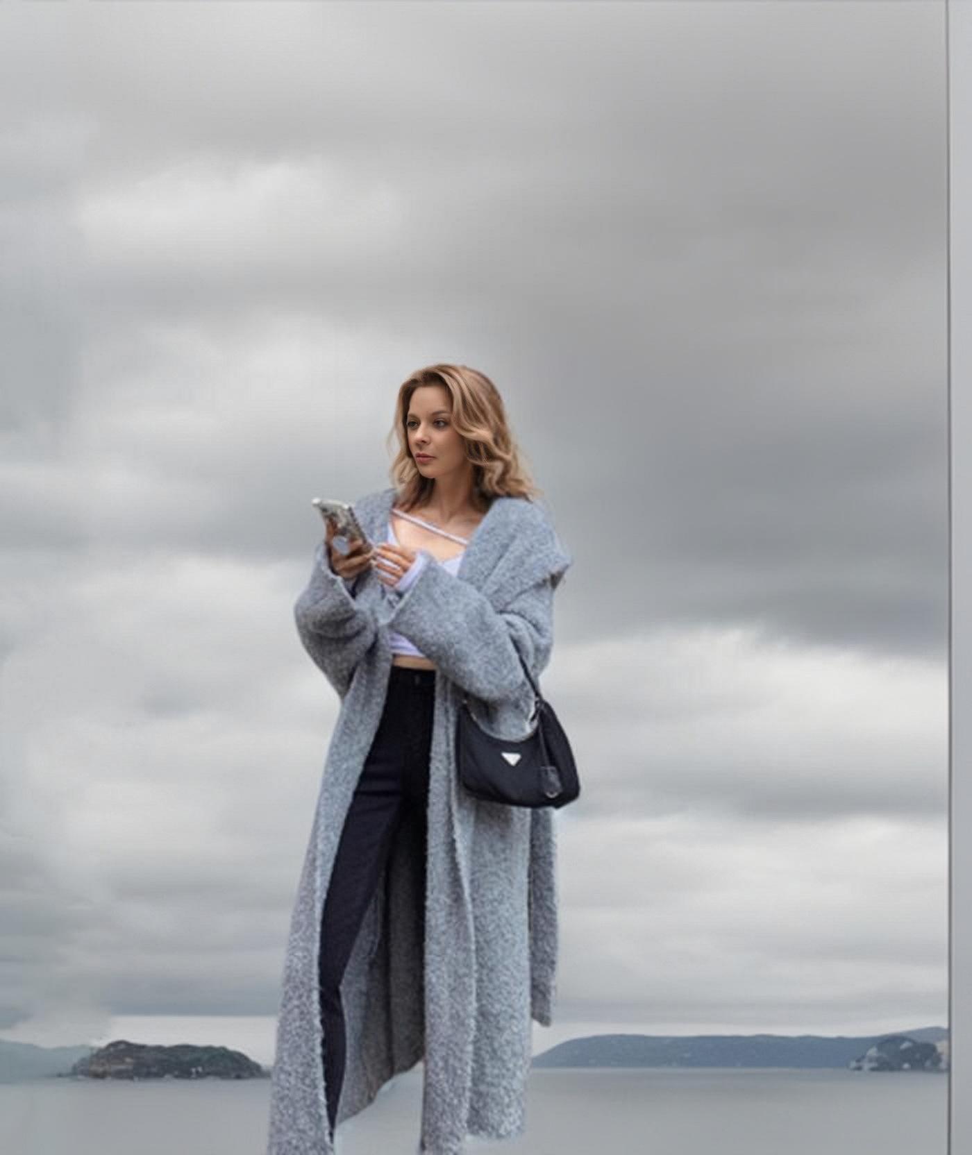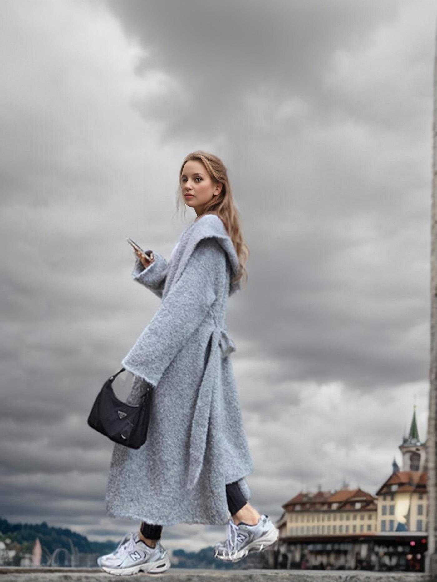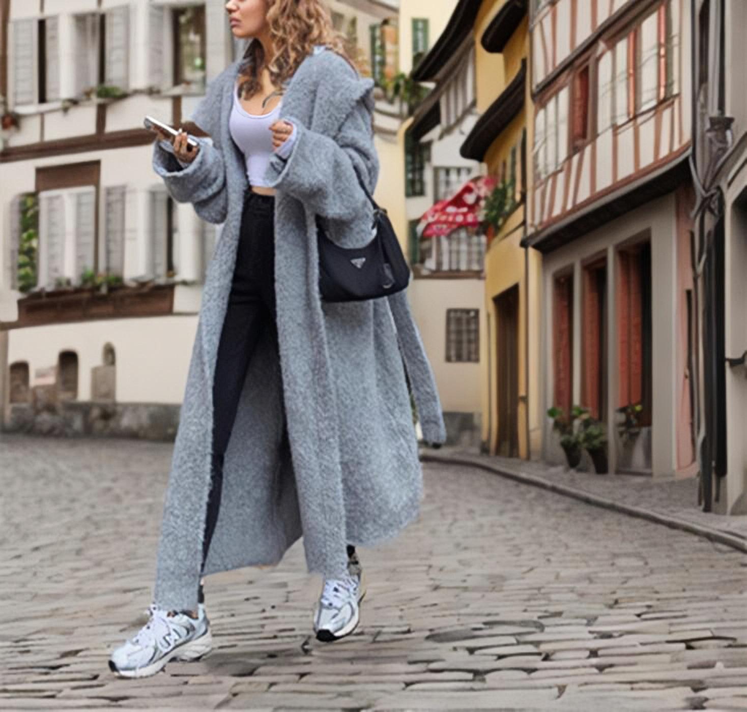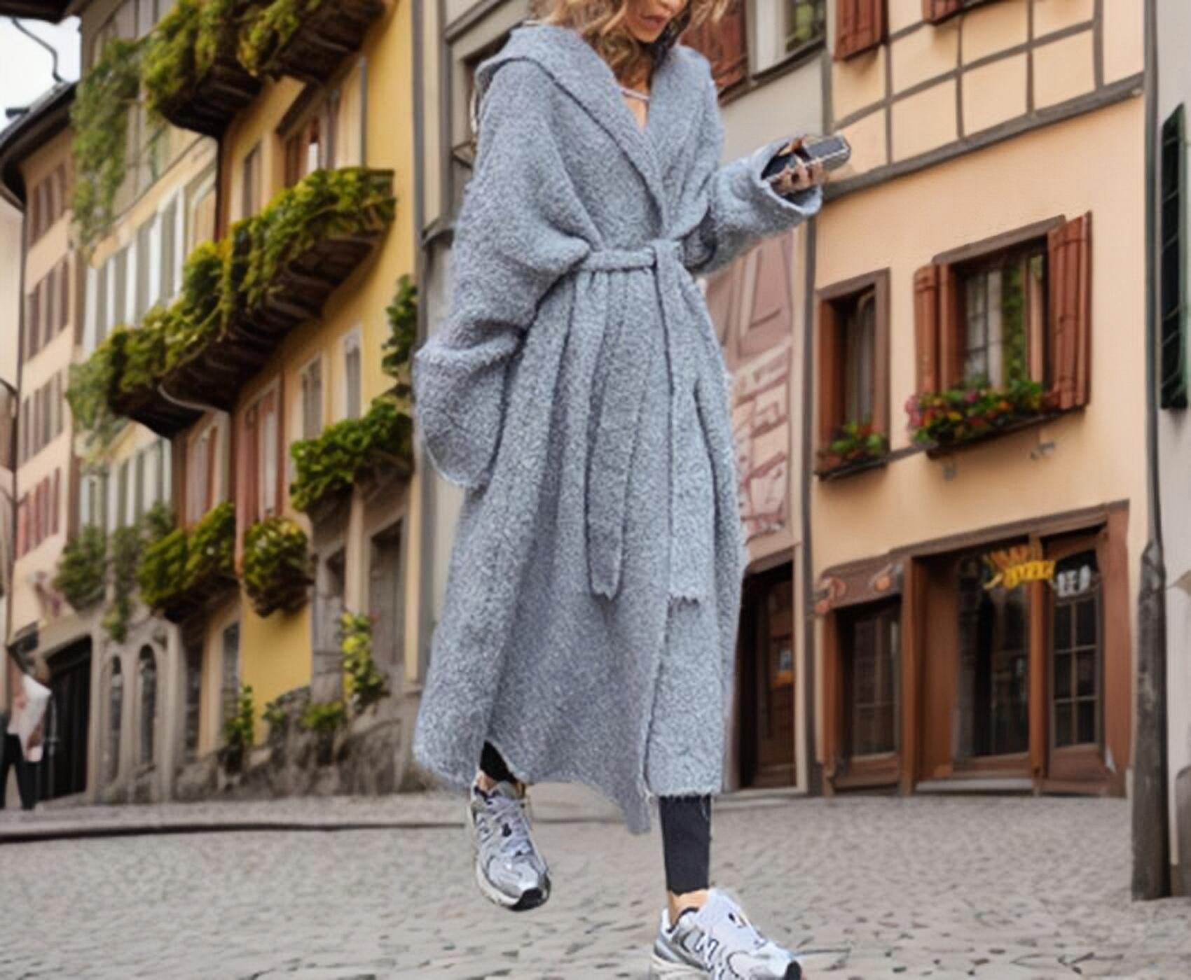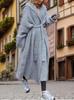 Cárdigan de punto con capucha y cinturón europeo y americano de otoño e invierno, ropa exterior engrosada, nuevo 2025, suéter de exportación de Amazon