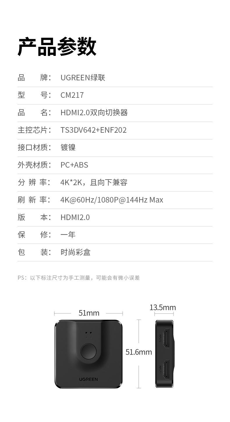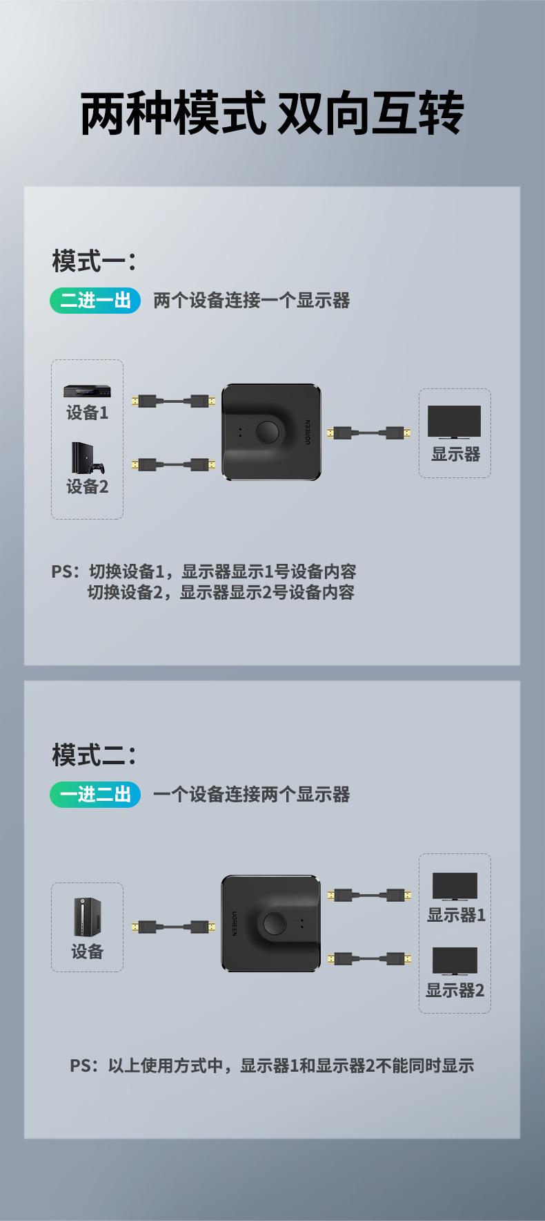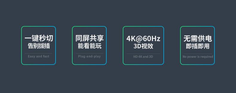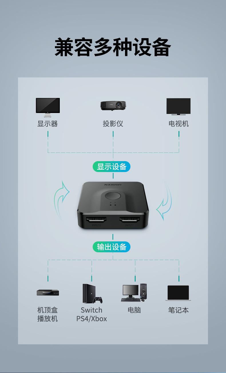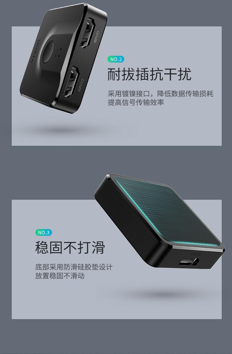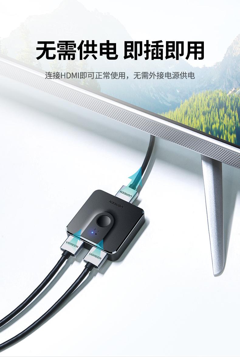Conmutador HDMI Uno a Dos Dos Dos Entradas Una Salida Video Pantalla de Computadora Divisor de Alta Definición Dp4K TV