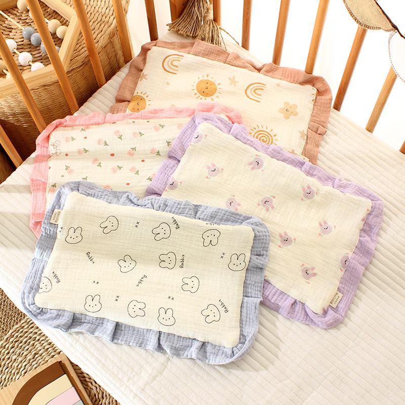 Toalla de Gasa para Bebé Almohada Plana para Bebé Transpirable Absorbente de Sudor Almohada Plana Almohada para Recién Nacido con Superficie Rizada Almohada para Niños