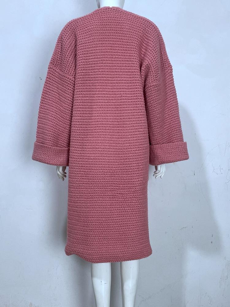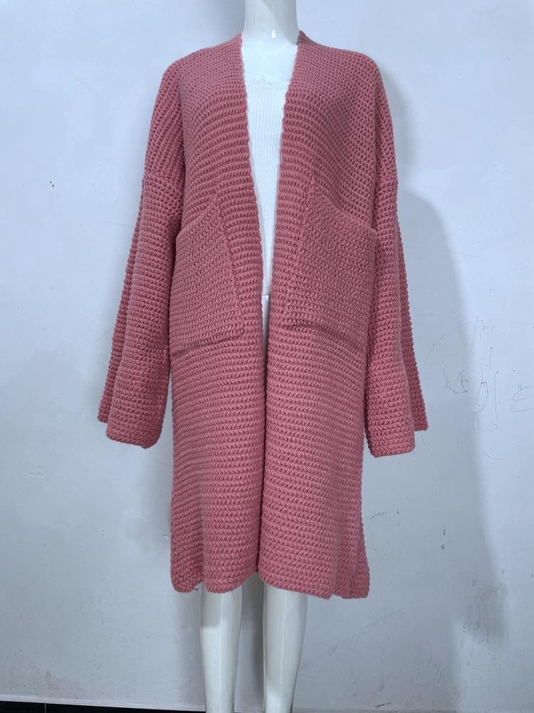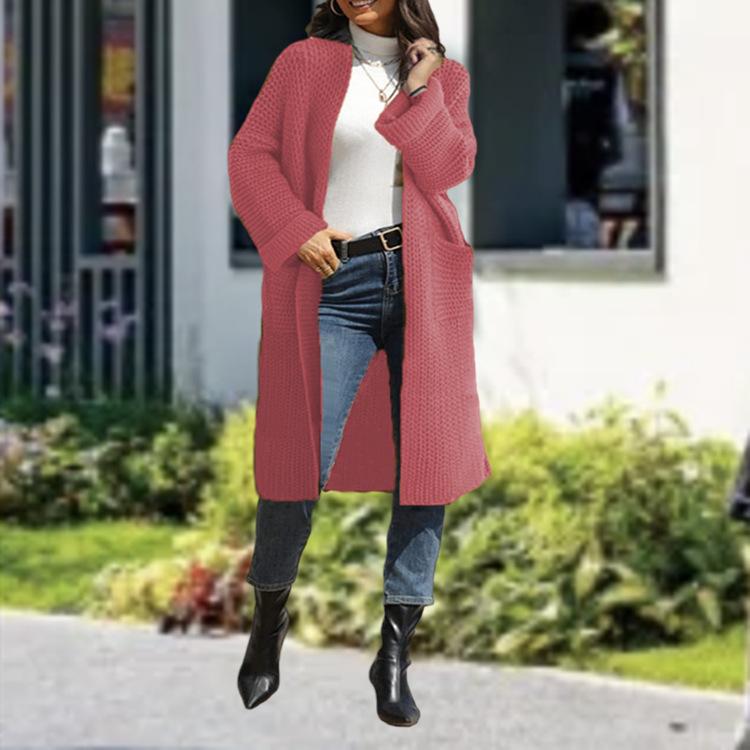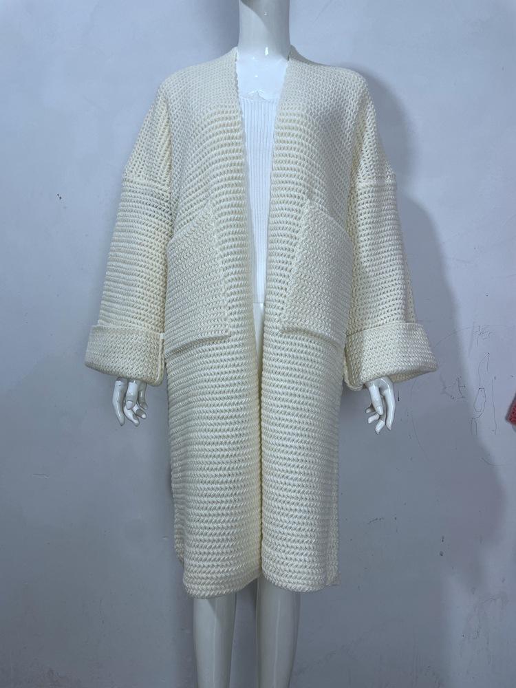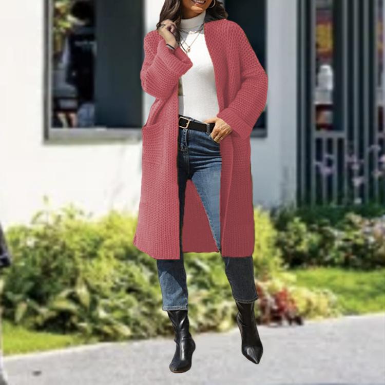 Otoño e Invierno Amazon Transfronterizo Nuevo Cárdigan de Punto para Mujer con Puños Acampanados Ondulados y Bolsillos, Abrigo de Longitud Media, Suéter para Mujer