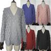 Invierno europeo y americano Nuevo suéter tejido de plumas hueco cuello en V manga larga suéter para mujer ventas directas de fábrica