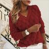 Suéter de invierno europeo y americano nuevo, tejido con plumas, cuello en V hueco, manga larga, para mujer, venta directa de fábrica