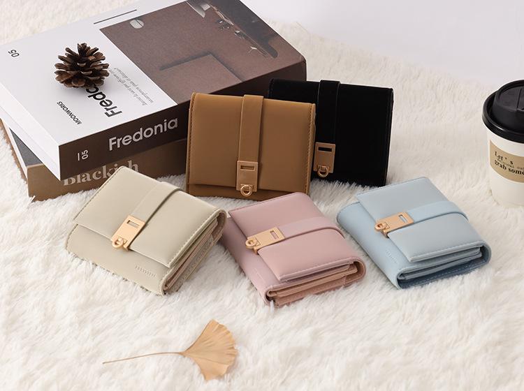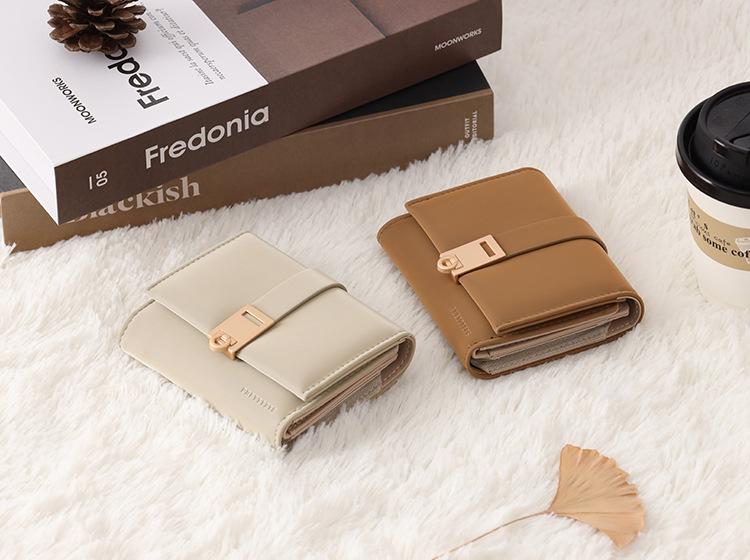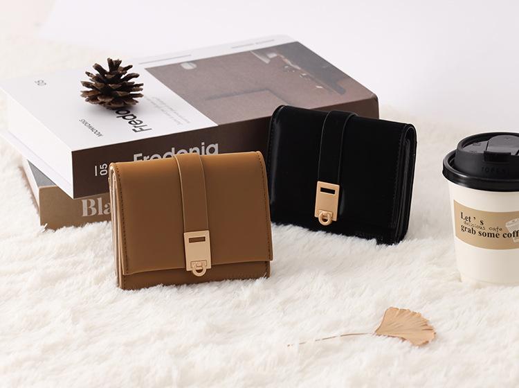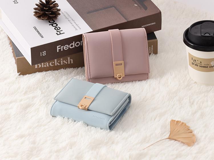 Cartera de mujer 2022, corta, para estudiante, de color sólido, estilo coreano, pequeña, fresca, con tres pliegues, multifunción, monedero |