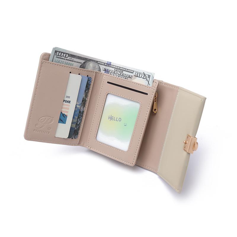 Cartera esmerilada Yiren Beibei para mujer, estilo nicho corto, estilo europeo y americano, estilo retro, linda, con tres pliegues y múltiples tarjetas para mujer |
