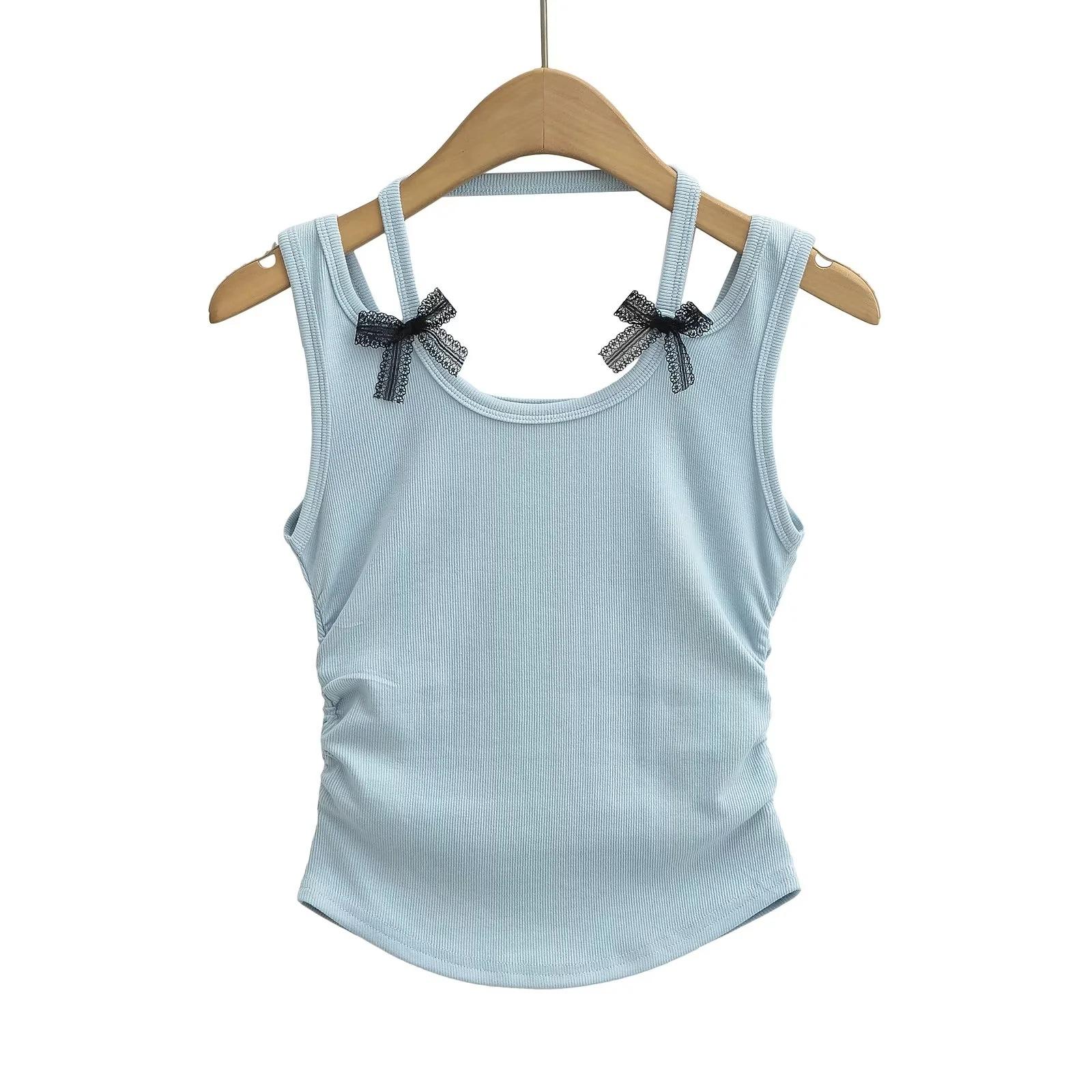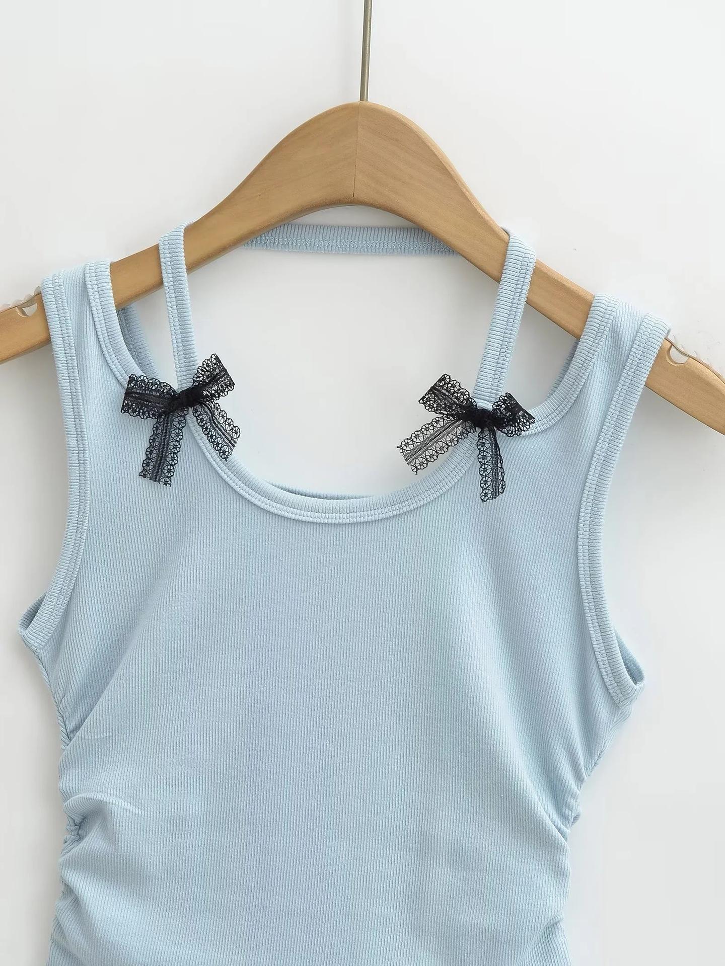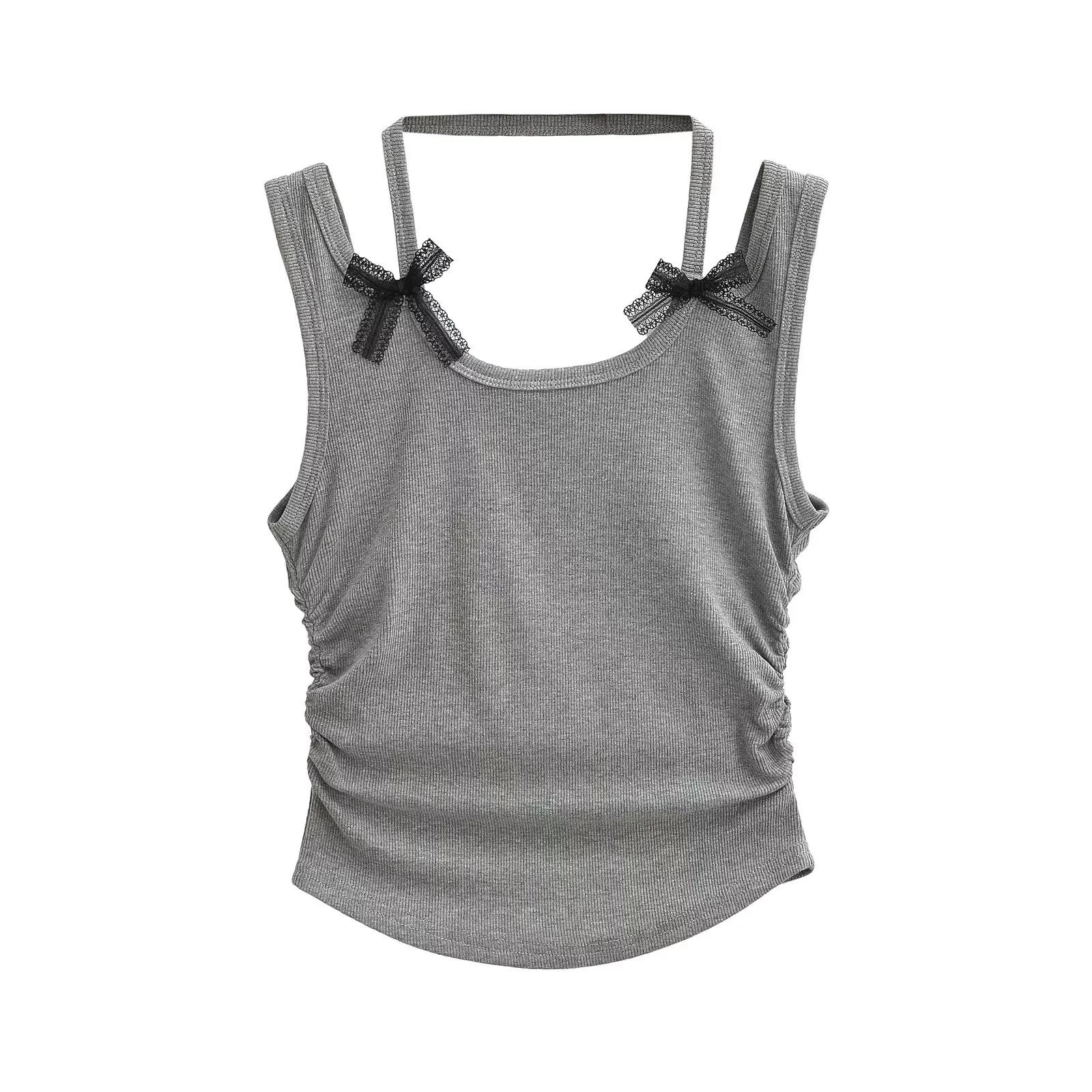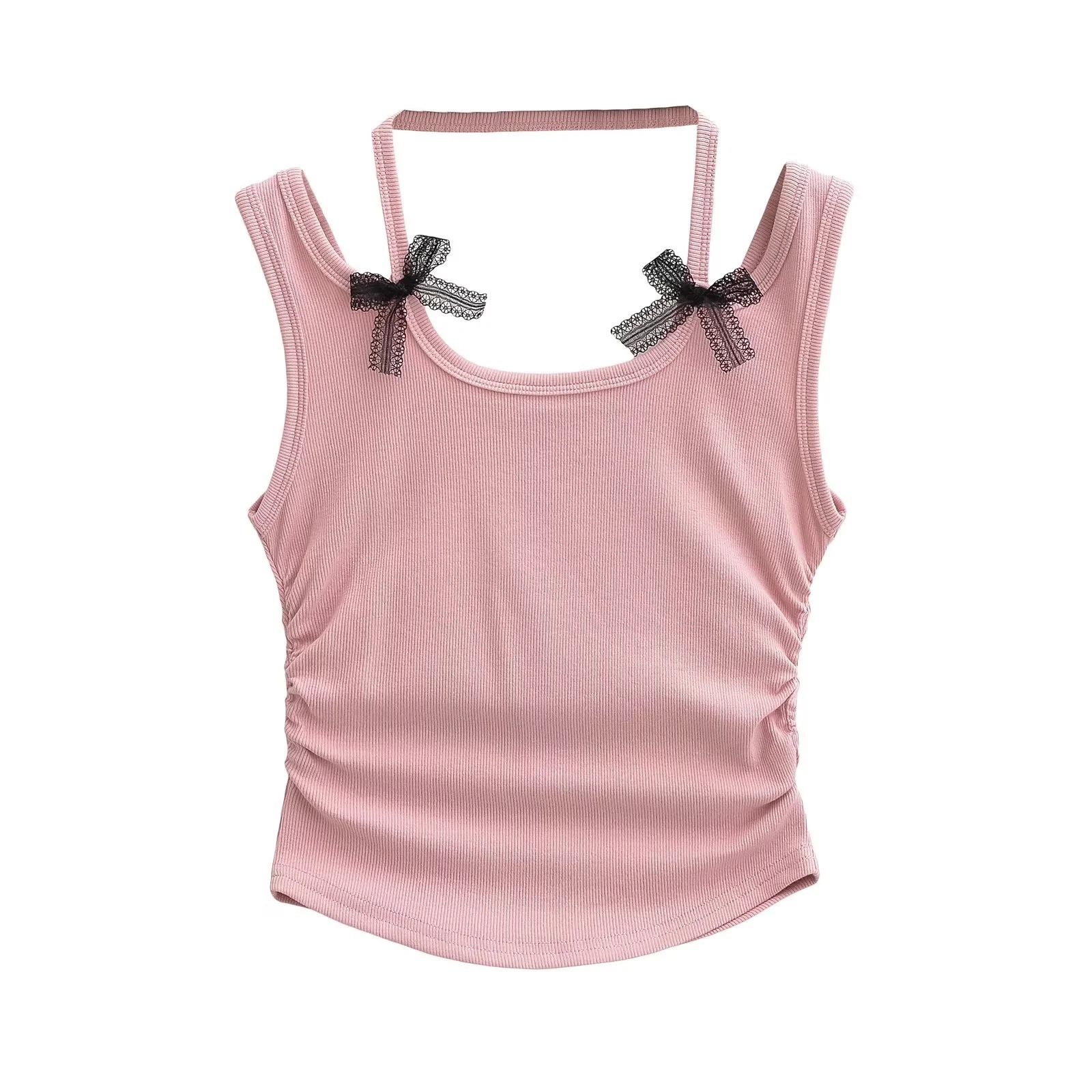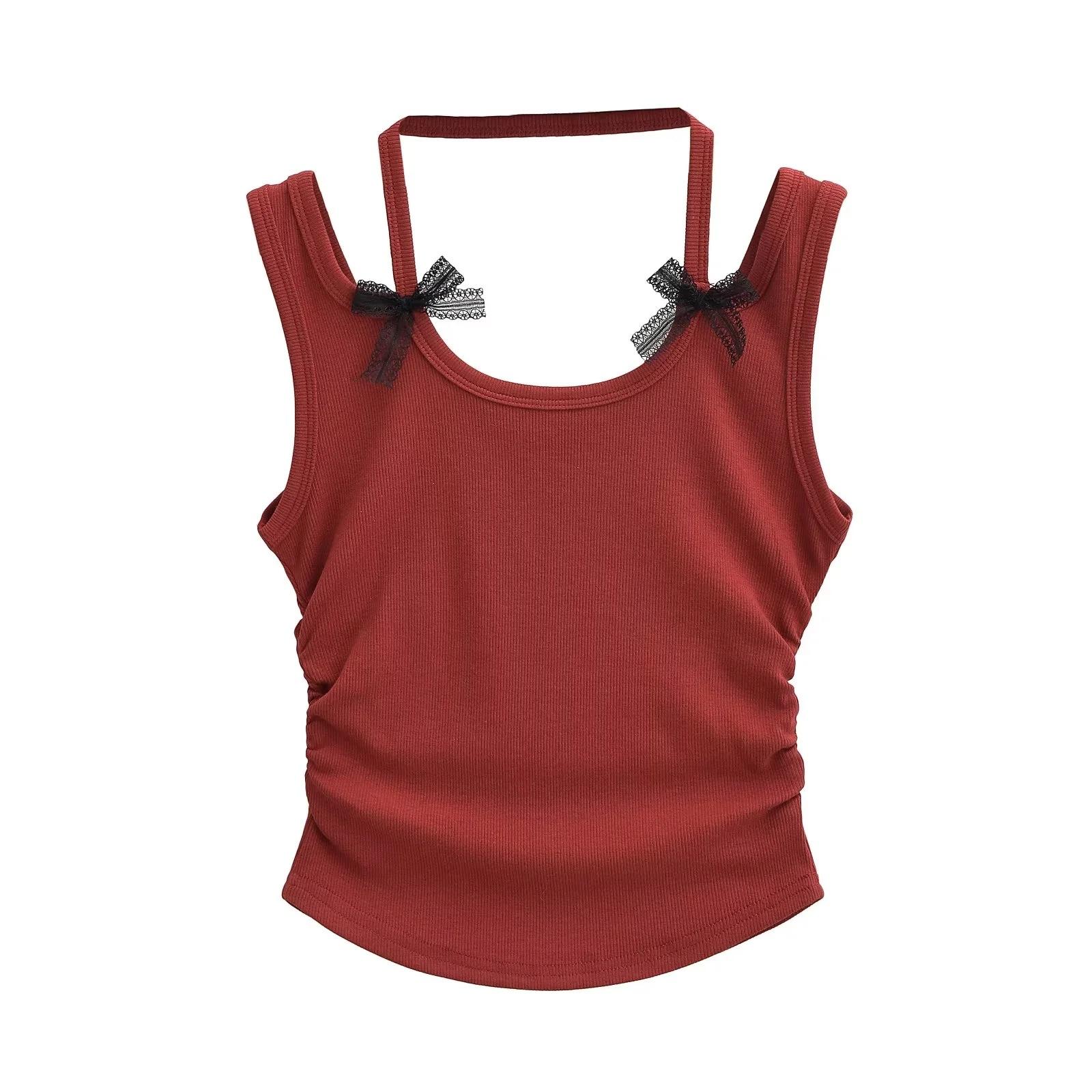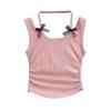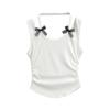 Chaleco sin mangas con cuello de lazo para mujer, prenda exterior de verano, diseño de estilo Pure Desire, top plisado, sexy y ajustado.